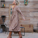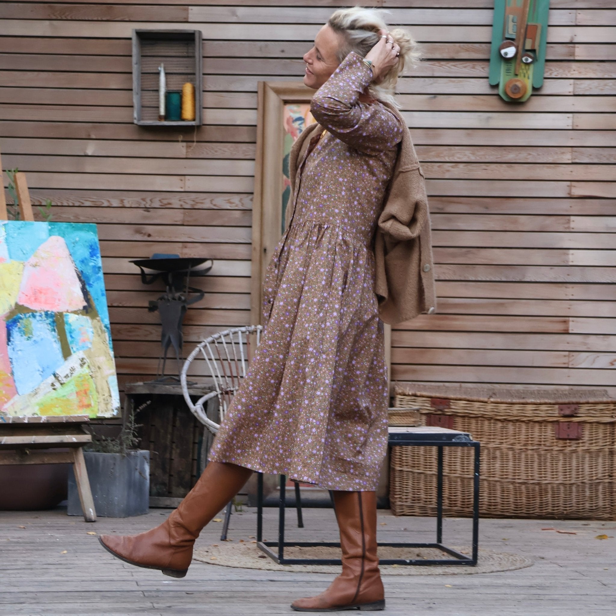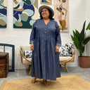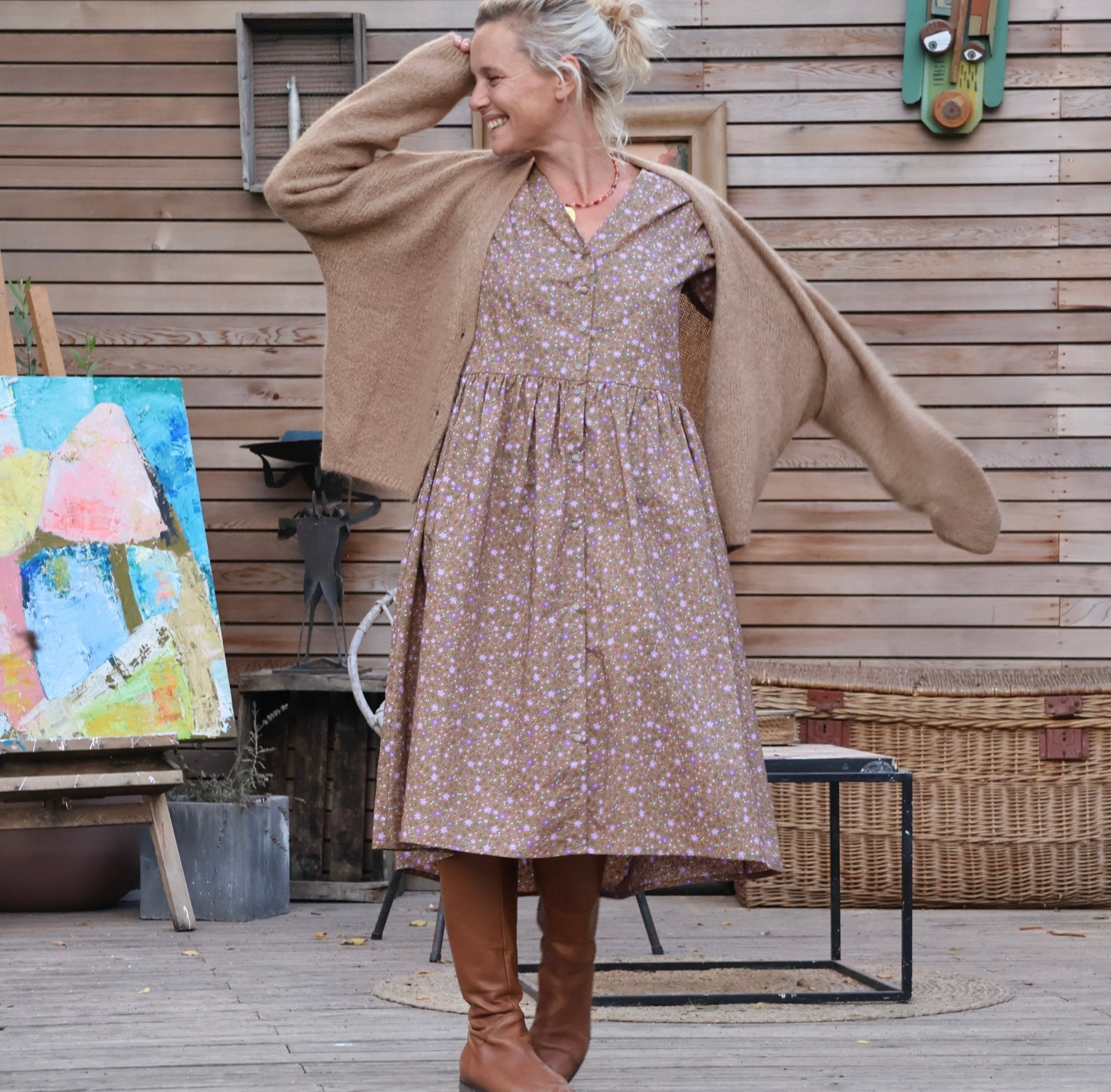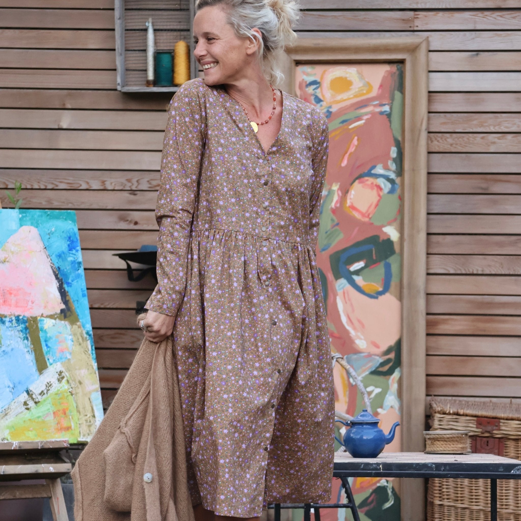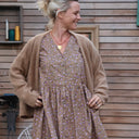 La robe Sia se distingue par son élégante coupe, mettant en valeur un décolleté en V flatteur, une ample jupe fluide, des boutons du haut jusqu'en bas offrant la possibilité d'ajuster l'ouverture selon vos préférences, ainsi que deux poches pratiques discrètement placées sur les côtés