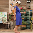 Découvrez Tia, une robe rétro charmante qui allie un décolleté rond flatteur, des plis élégants au niveau des emmanchures et des fentes délicates à l'avant et à l'arrière. Dotée de deux poches discrètes sur les côtés, Tia présente une coupe droite légèrement évasée, offrant une ampleur confortable.