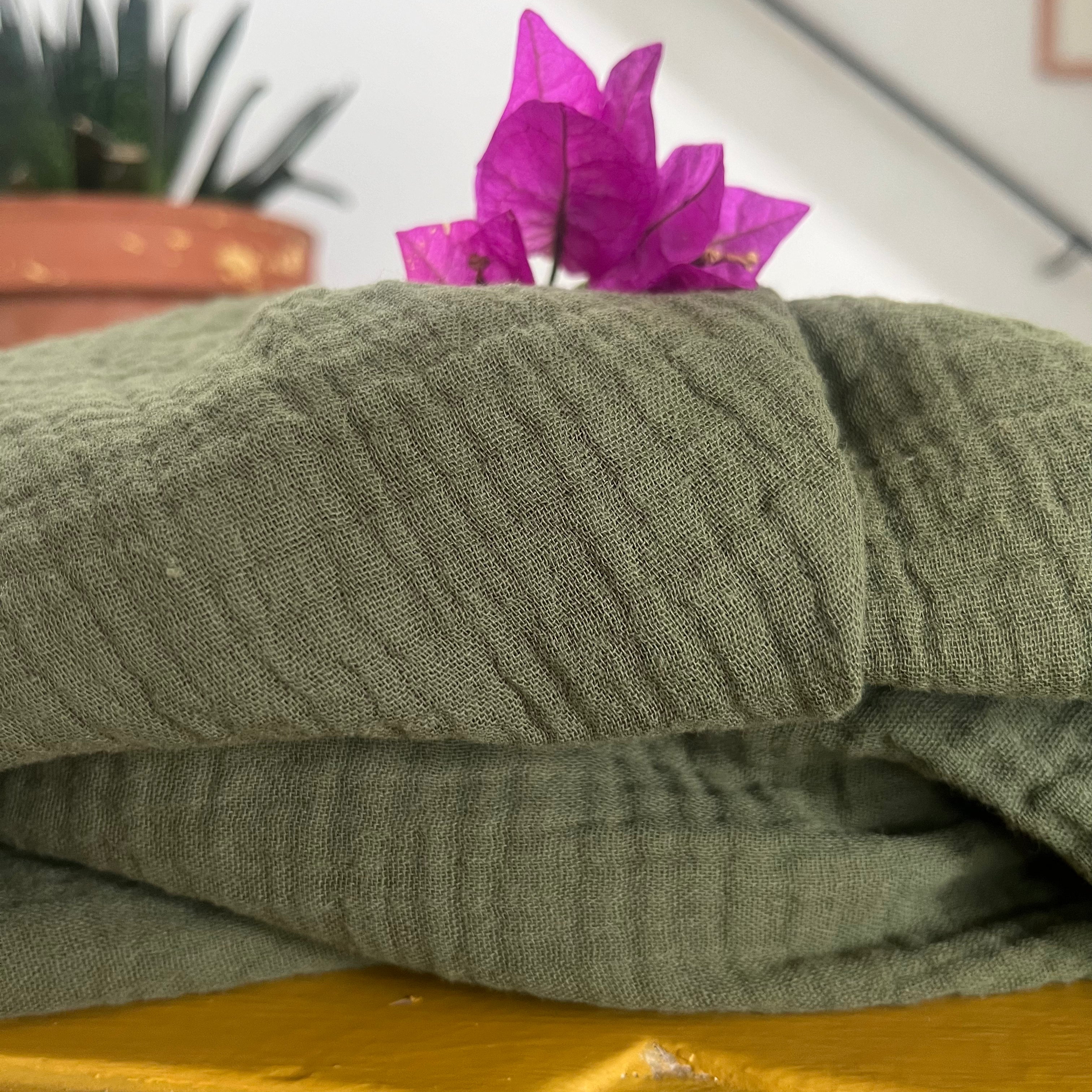 La gaze de coton : lavage à basse température (30°) et un séchage à l’air libre. Elle ne nécessite pas de repassage.