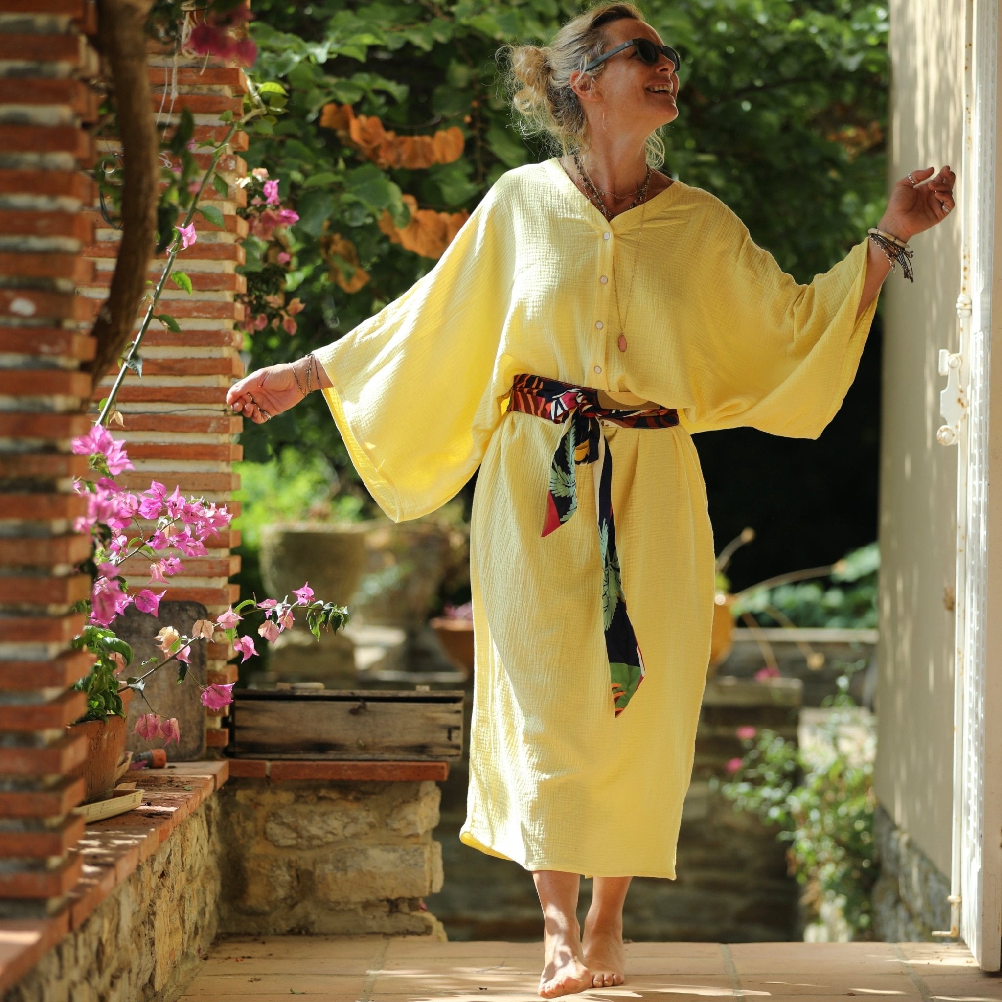Robe Xiou double gaze de coton jaune vif