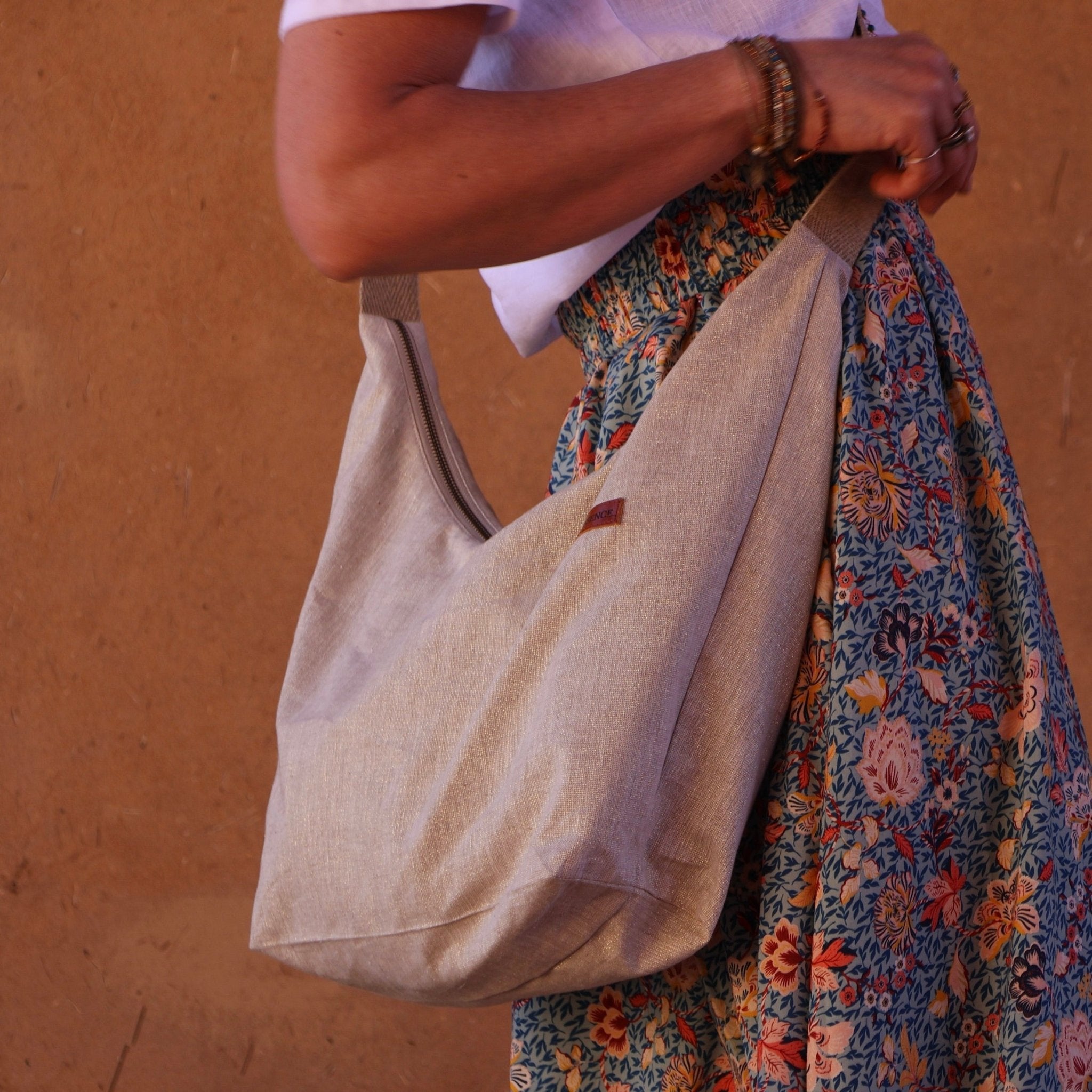 Sac Maud lin naturel/argent - Quintessence