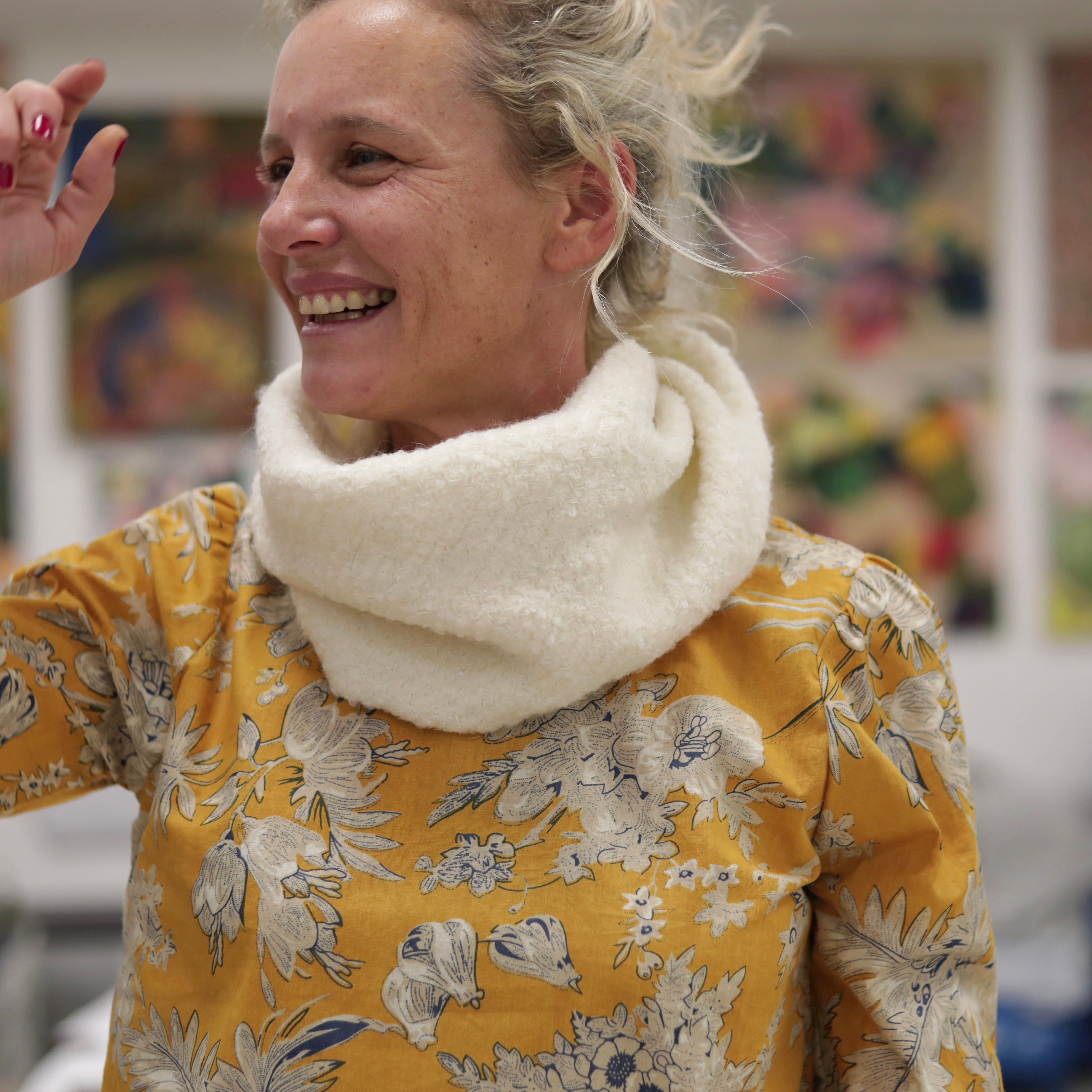 Cette pièce se distingue par son tweed bouclette blanc cassé, au rendu texturé et raffiné. Ses finitions précises témoignent du soin apporté à chaque création Quintessence. Ce snood est confectionné à partir des chutes du Poncho Douillet Pétronille, dans une démarche responsable et engagée.