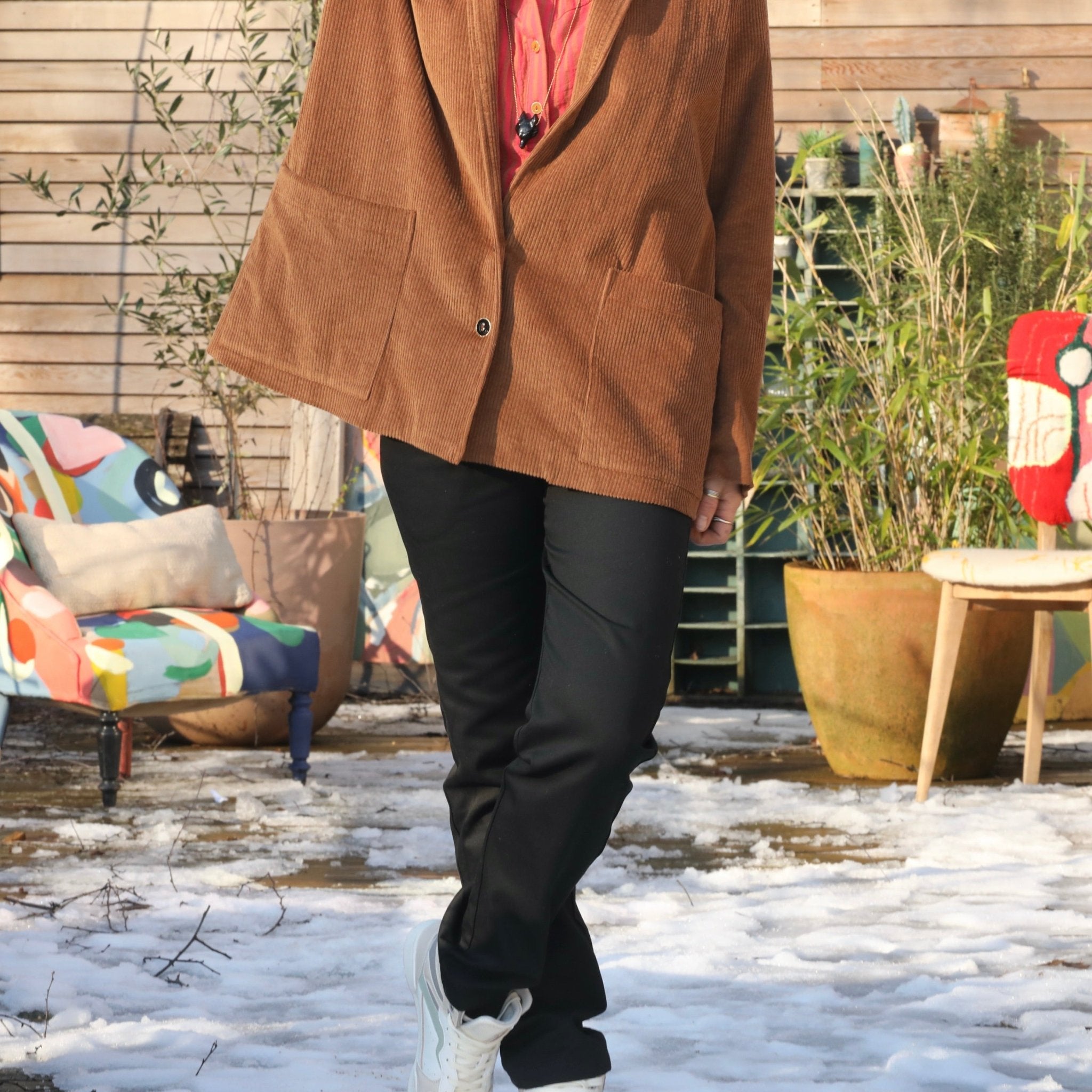 Faustine est une veste à l’allure à la fois casual et chic, avec une coupe droite et un col châle discret.