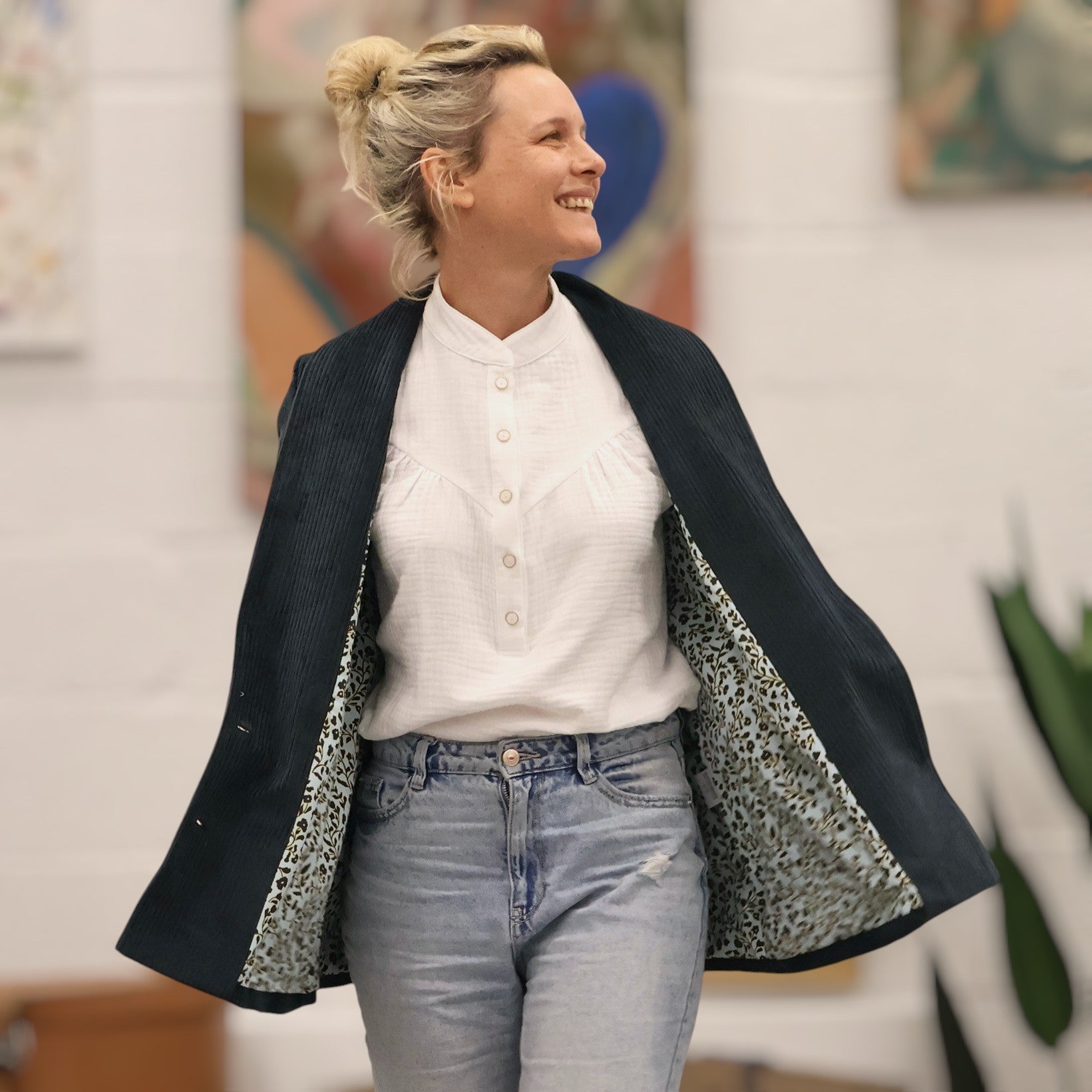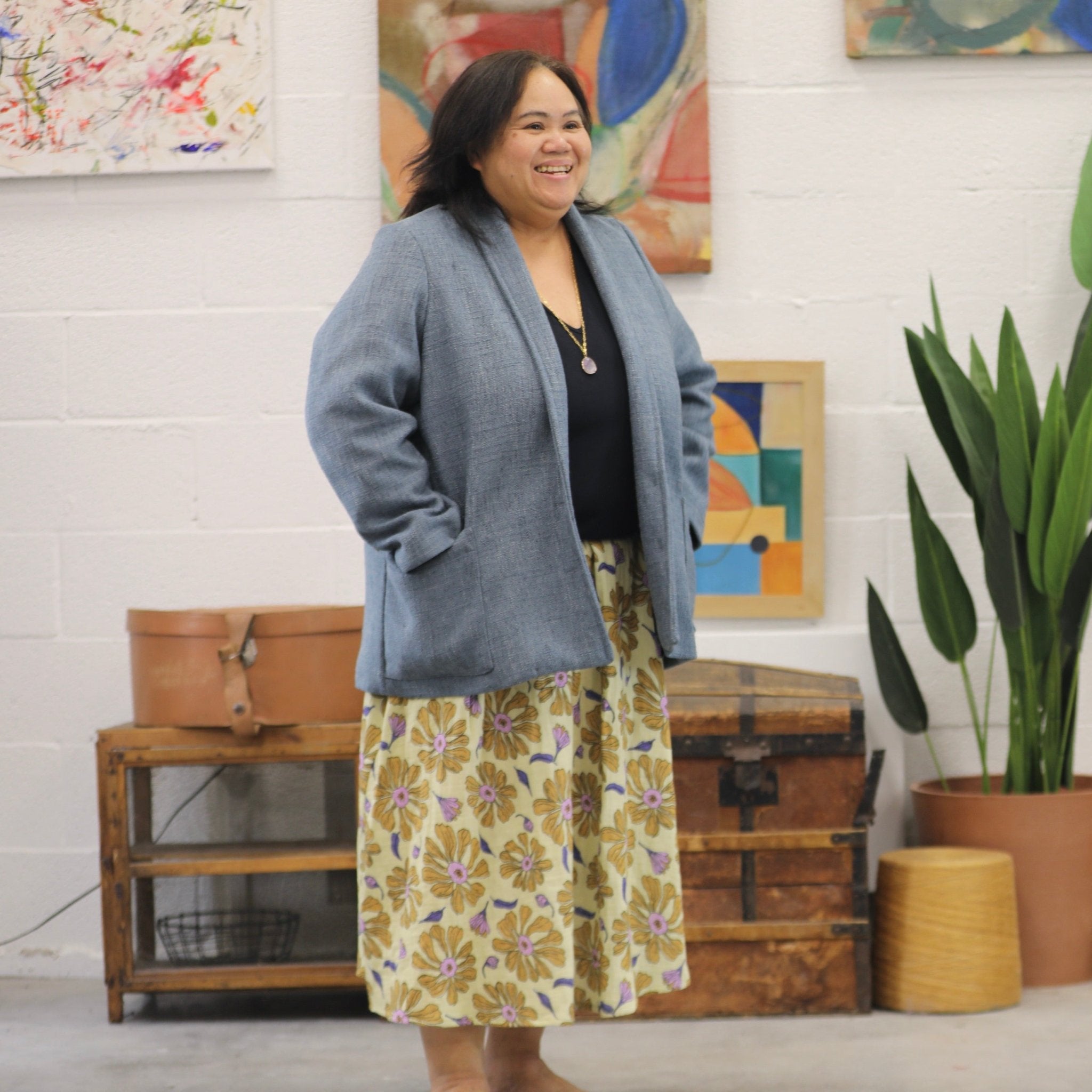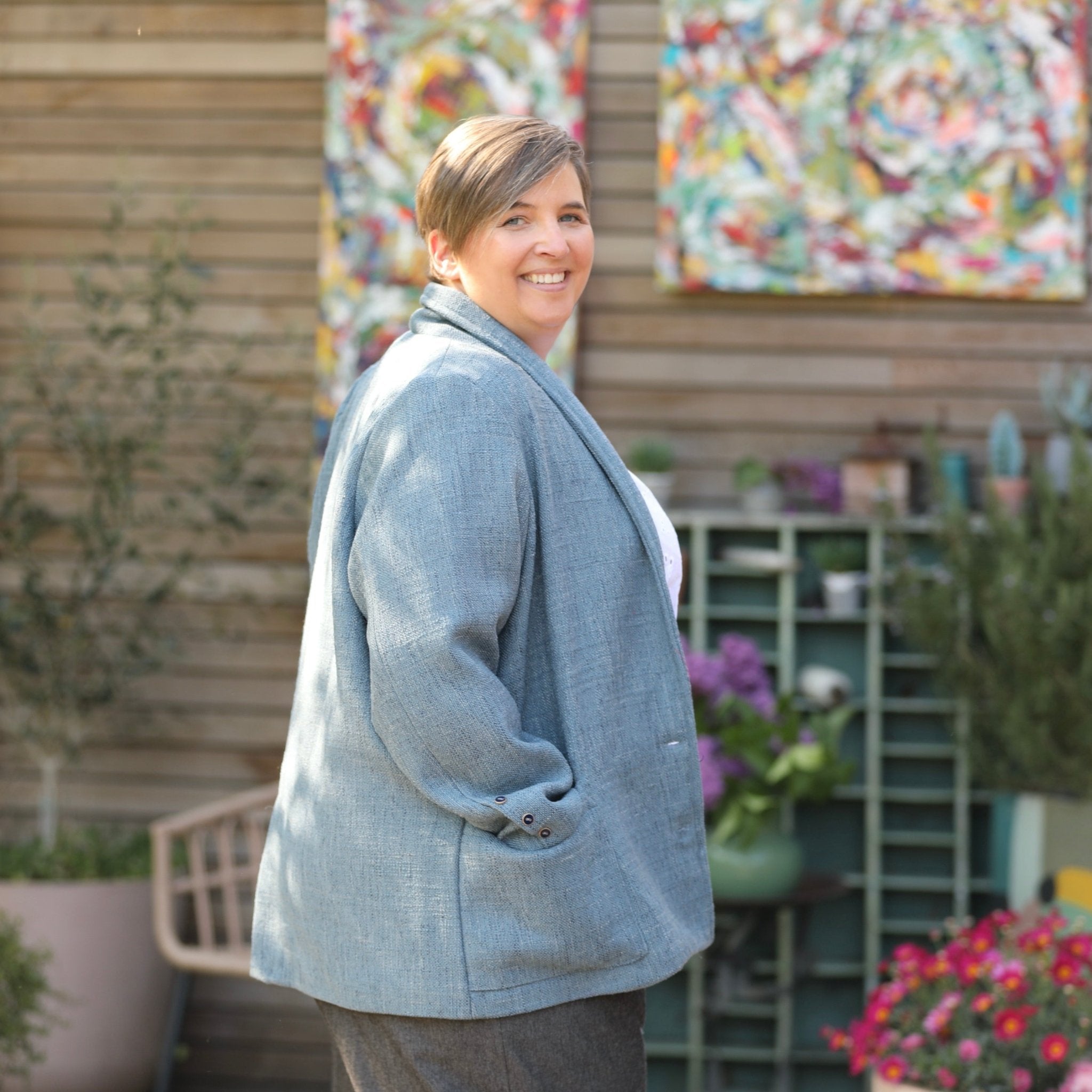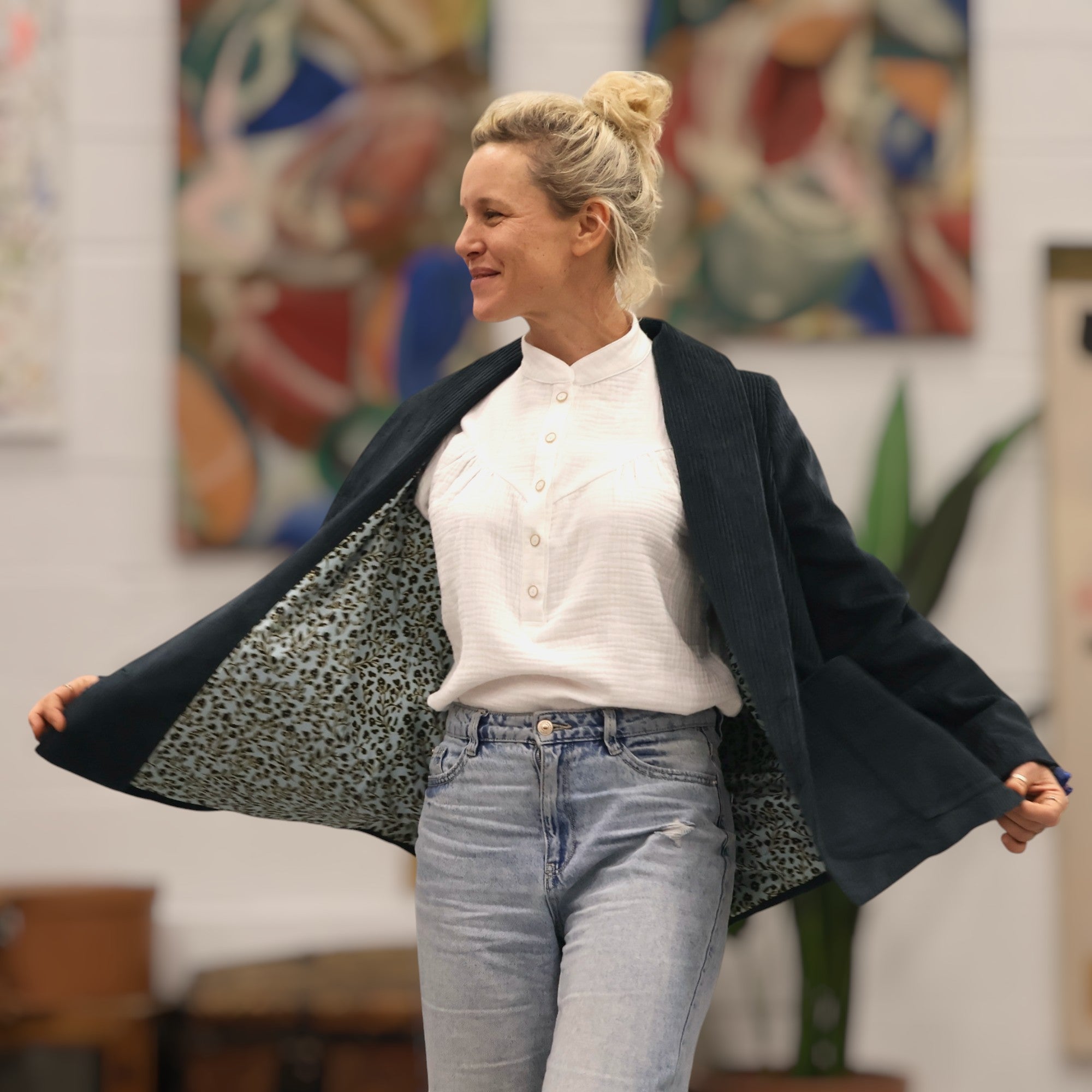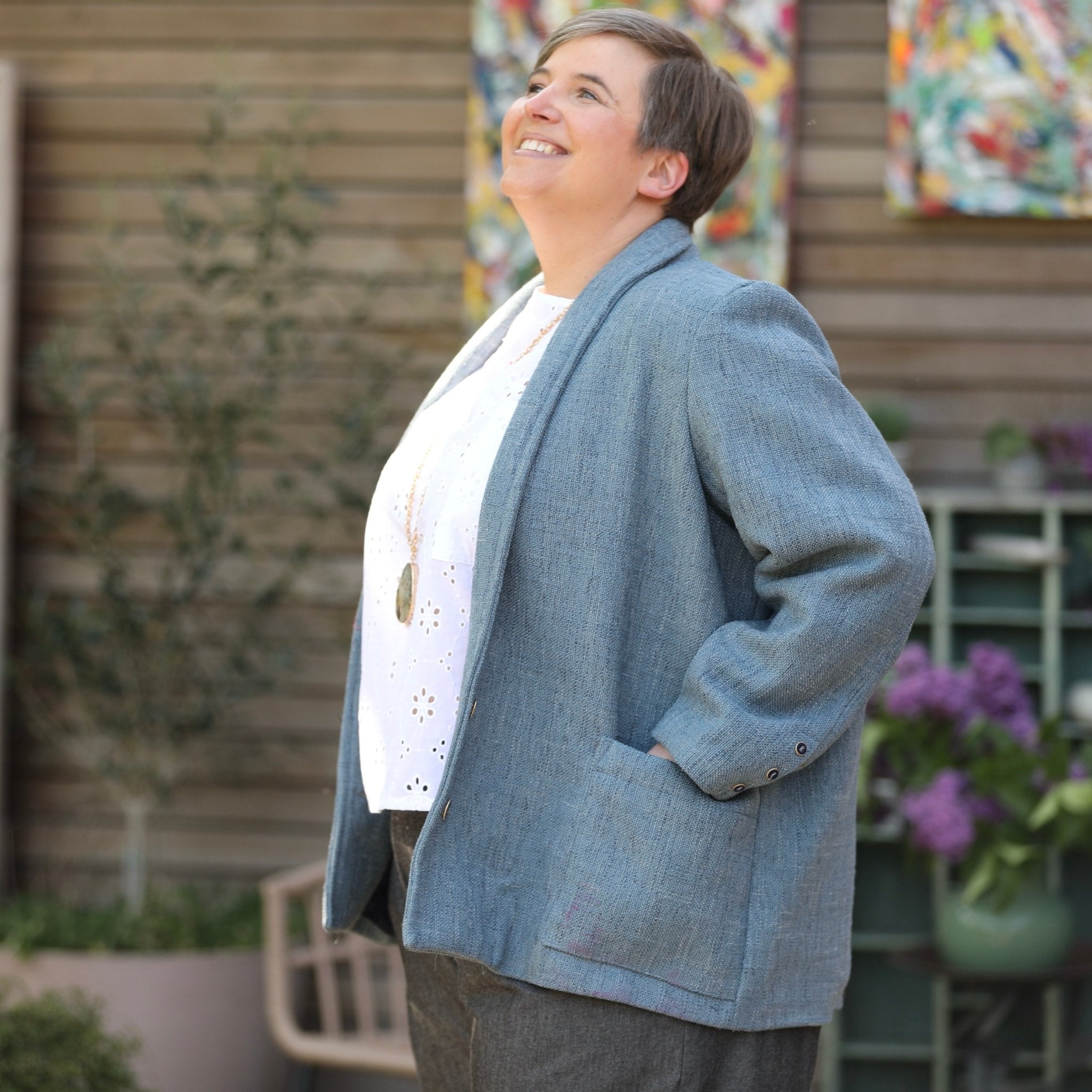 Faustine est une veste à l’allure à la fois casual et chic, avec une coupe droite et un col châle discret.