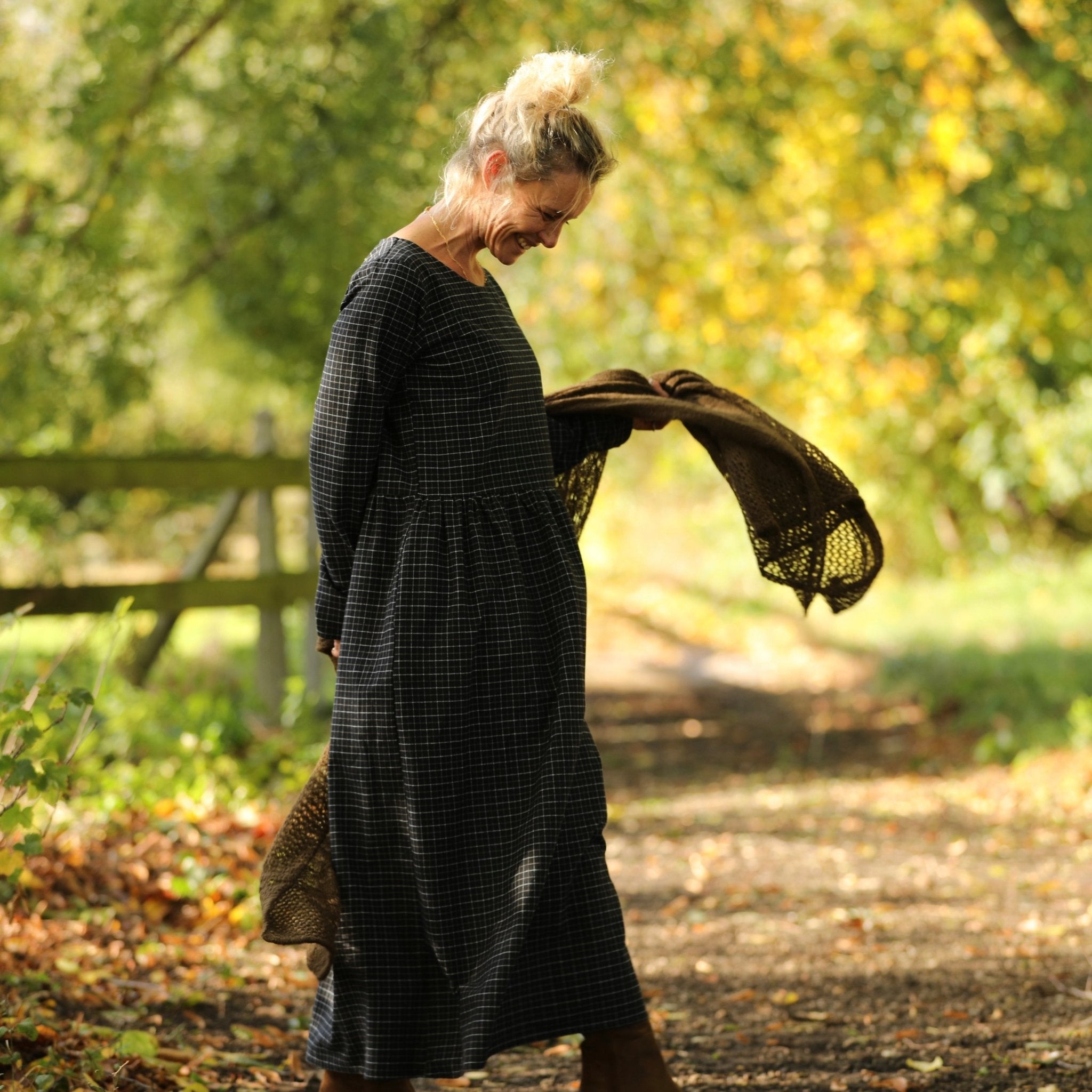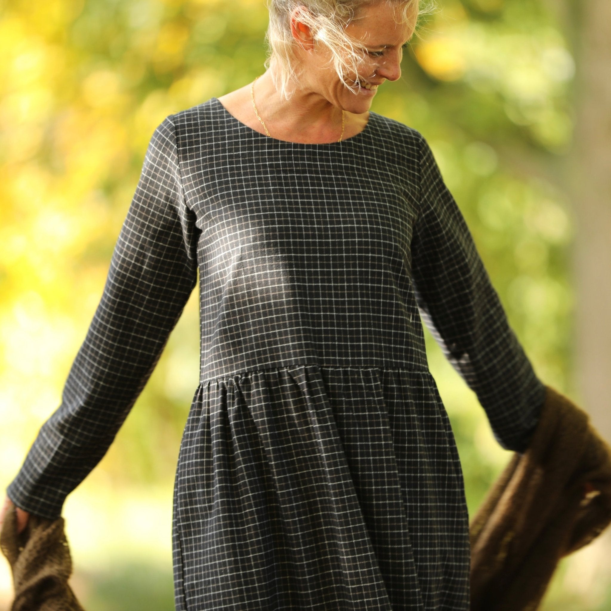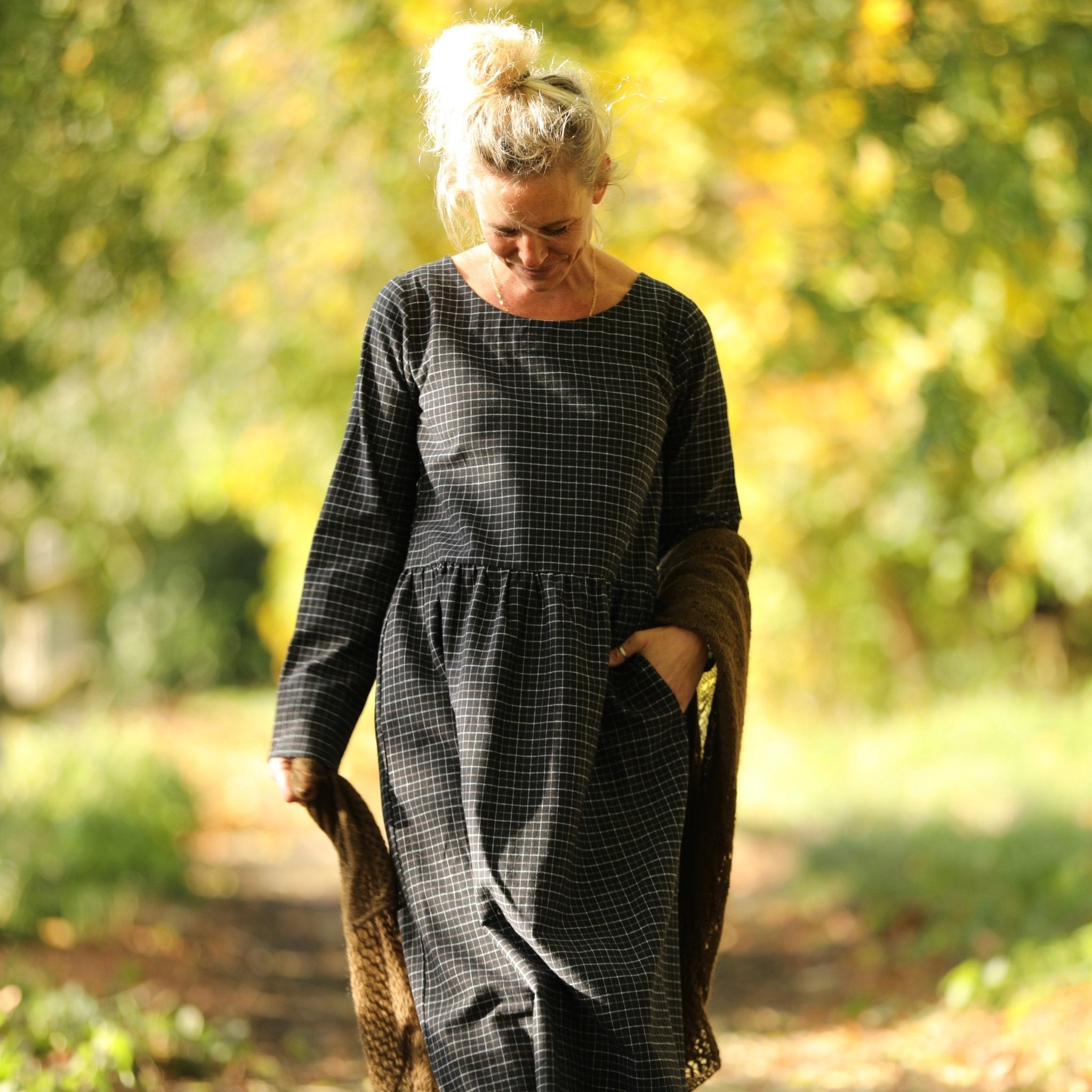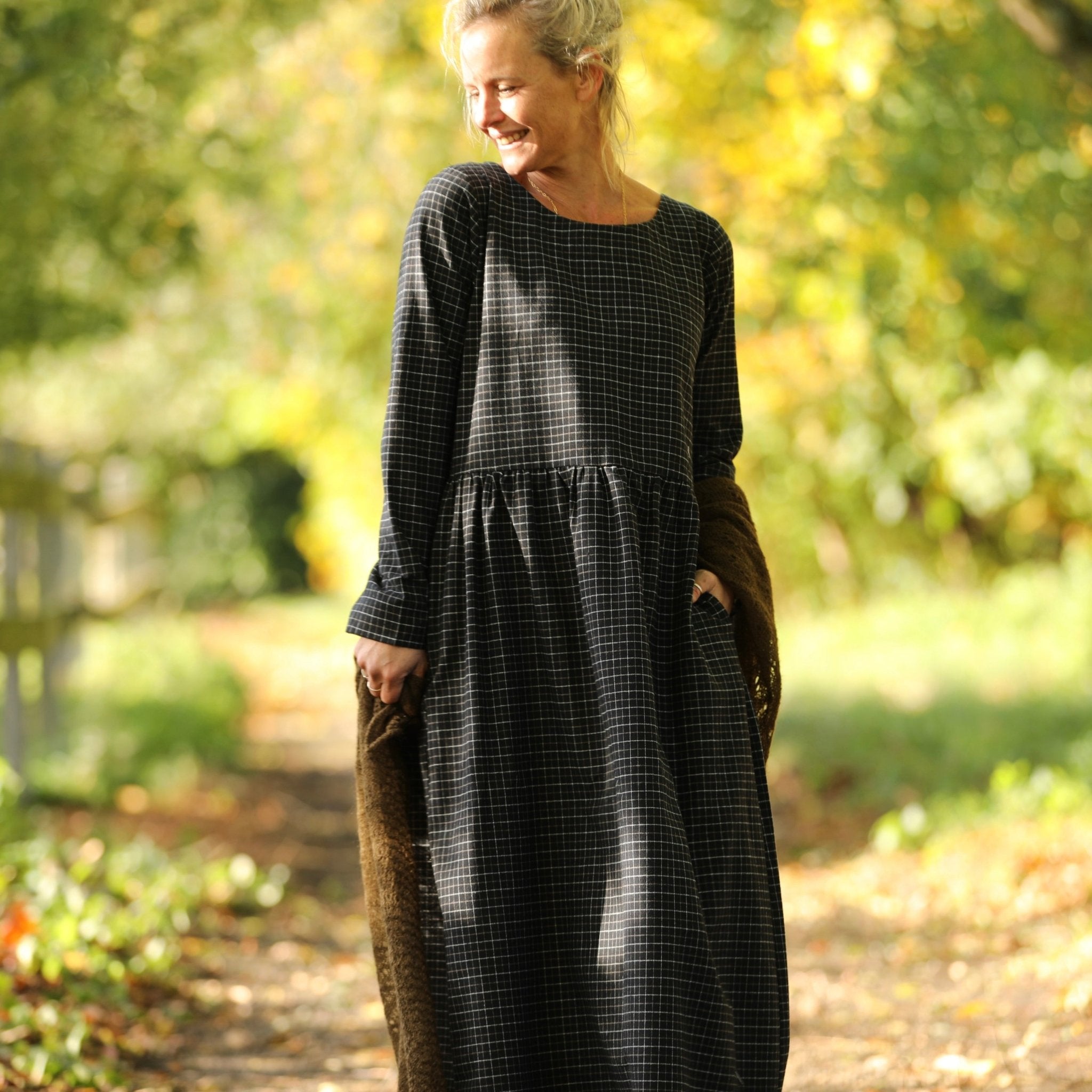 Robe Anaëlle - Flanelle tartan noir, ivoire et camel