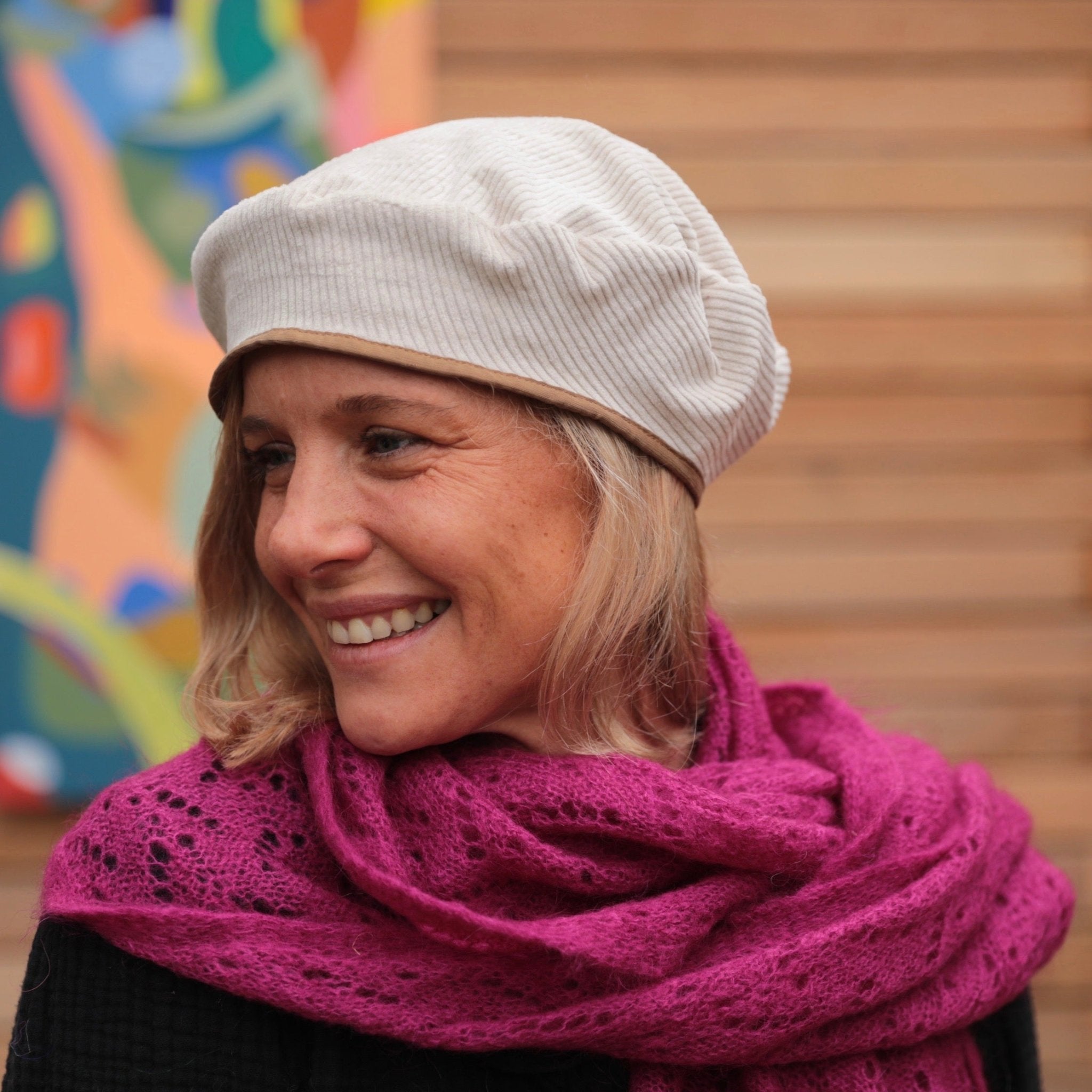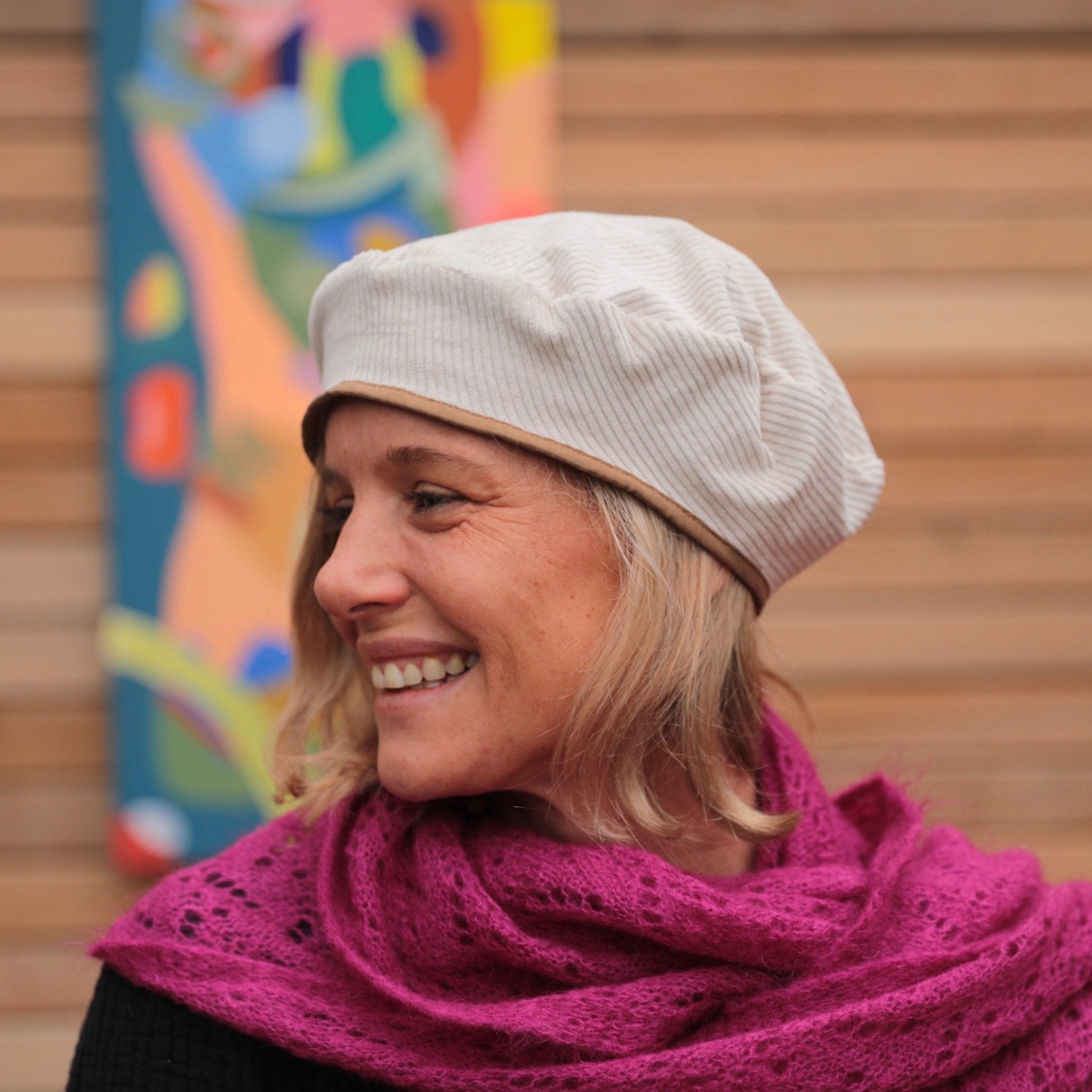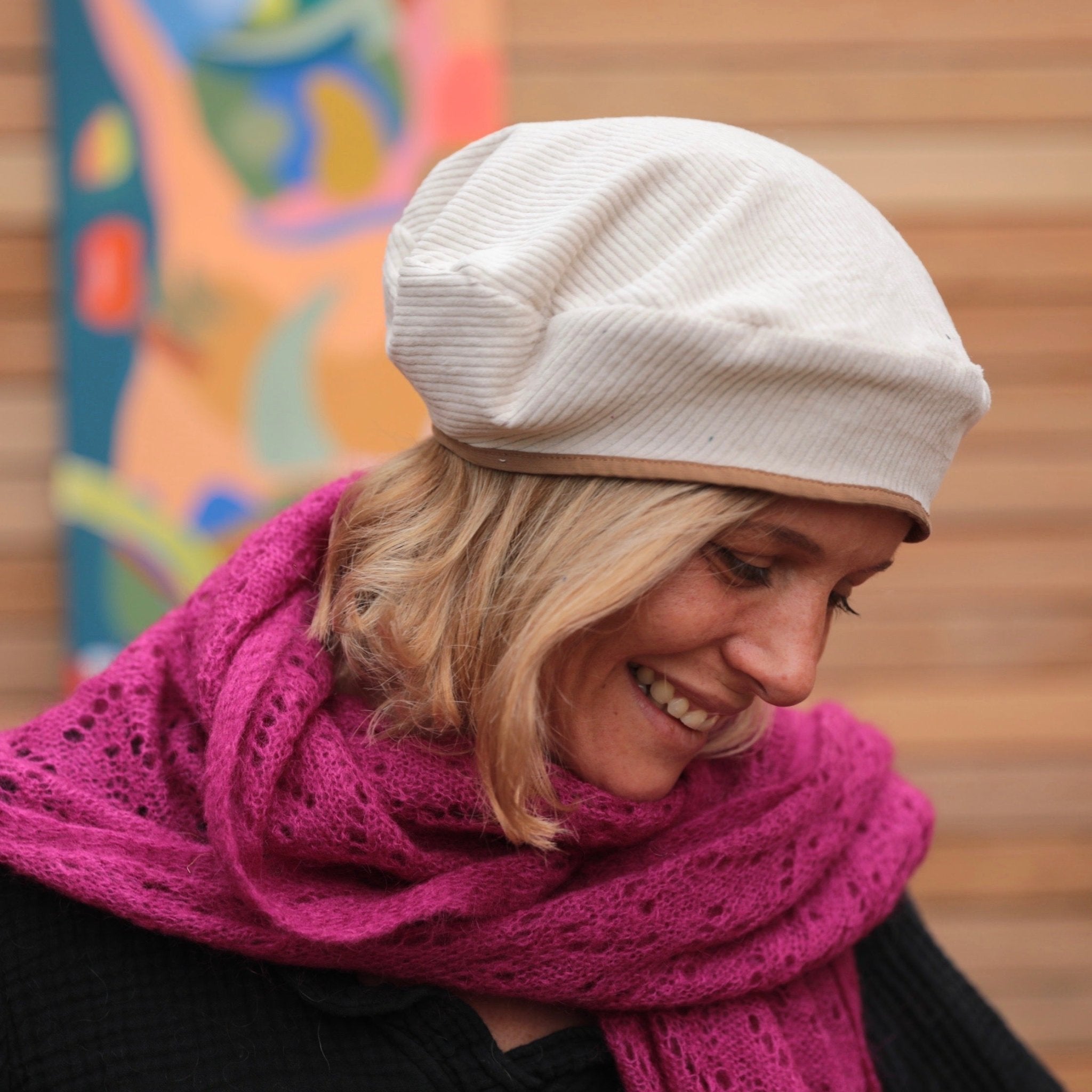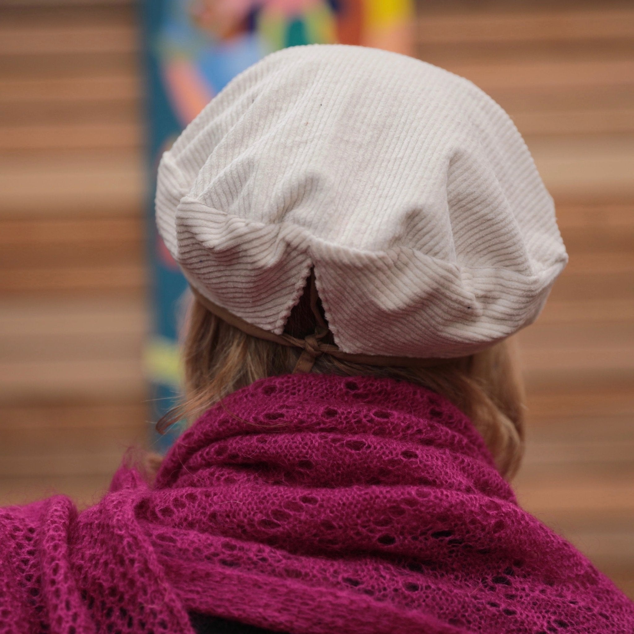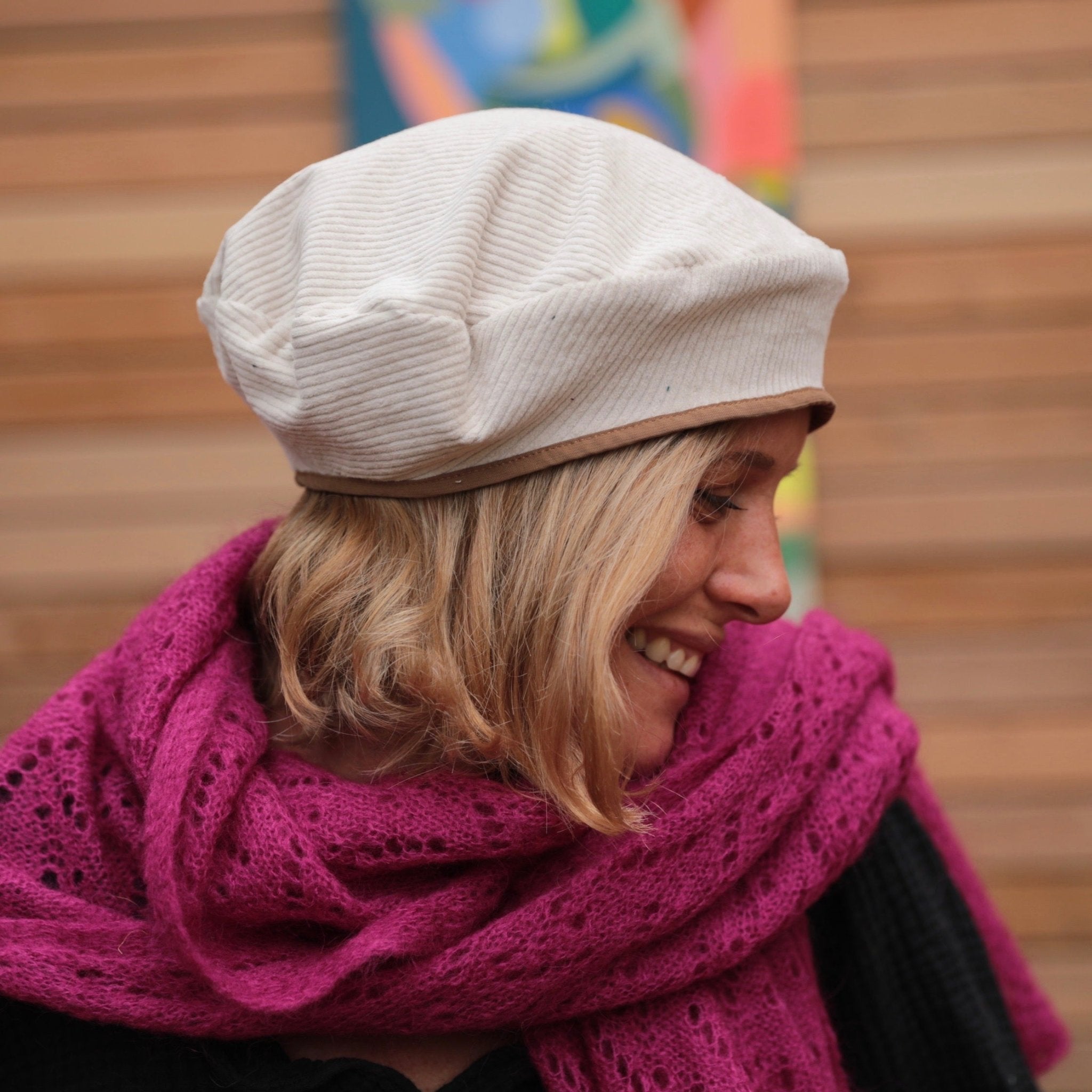 Béret Côme - velours côtelé blanc cassé