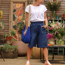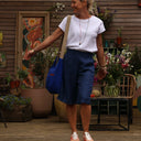 Tomi, le bermuda élégant, se distingue par ses jambes amples, ses pinces soigneusement cousues à la taille et son dos élastique, offrant ainsi un mariage parfait entre style et confort.