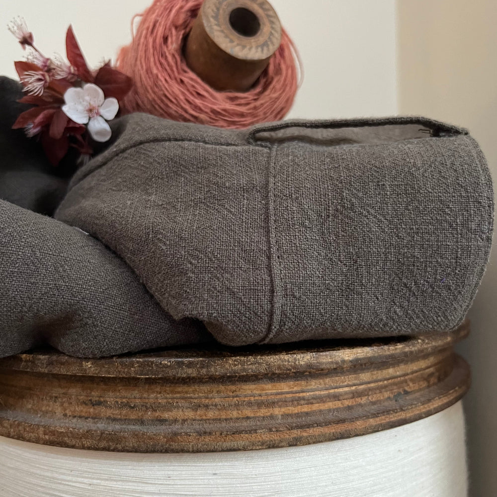 Le lin : lavage à basse température (30°) et un essorage à maximum 600 tours minutes. Sèche très vite à l’air libre.