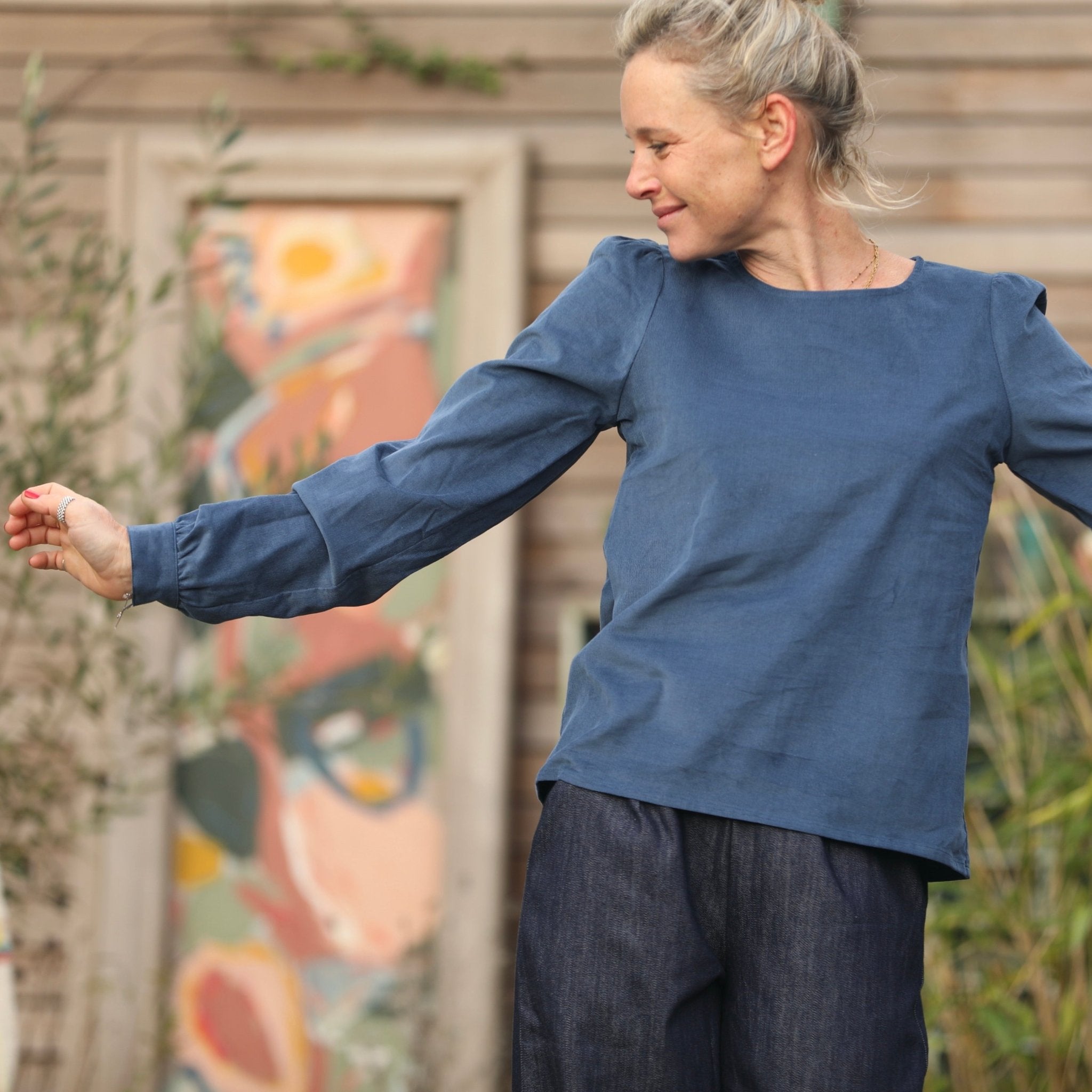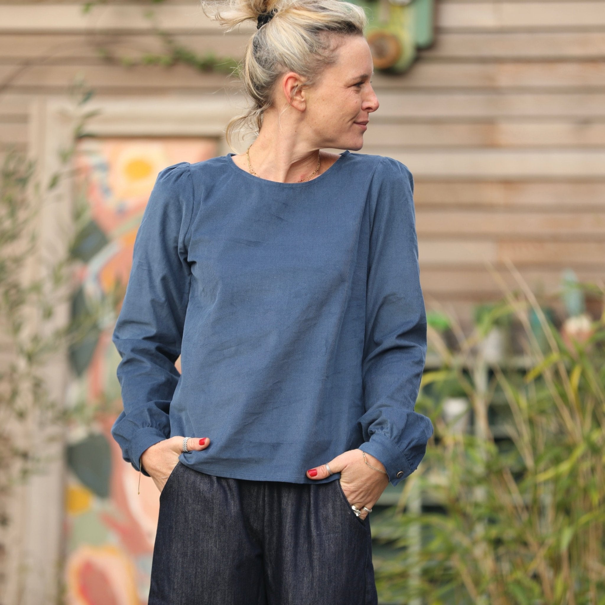 Blouse Amarante - velours milleraies bleu océan