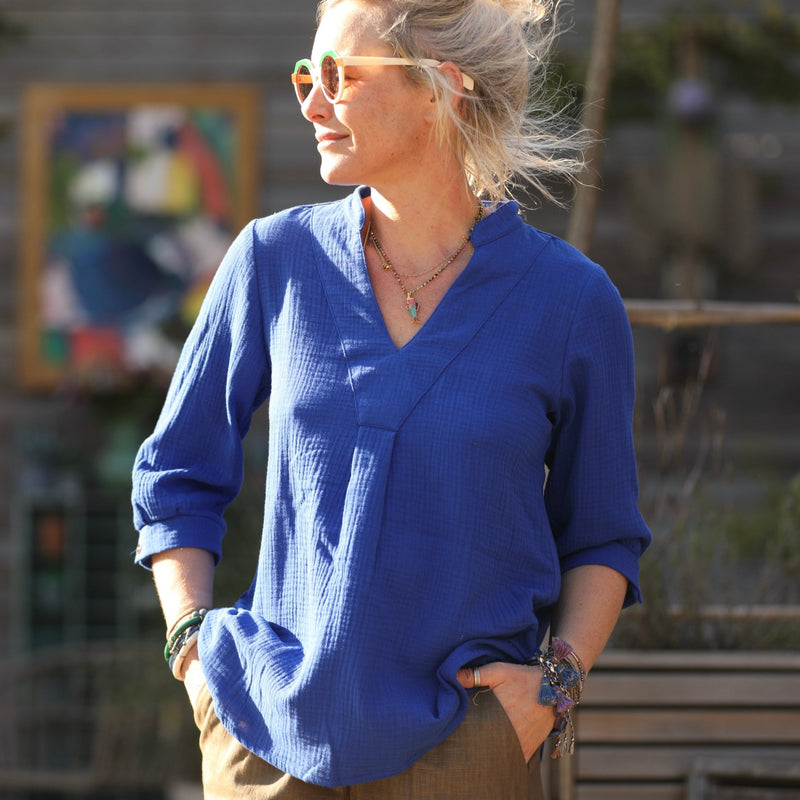 Blouse Isabeau - double gaze de coton bleu majorelle