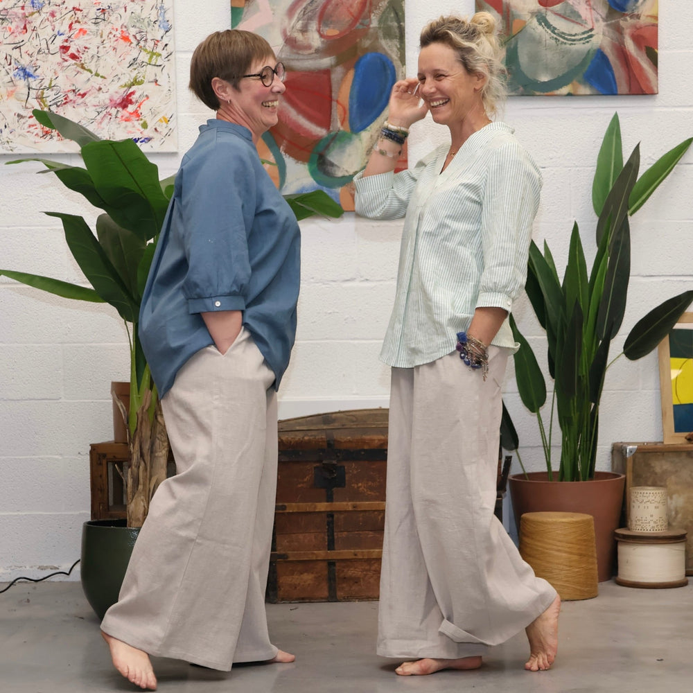Blouse Isabeau - coton/lin rayé bleu - Quintessence