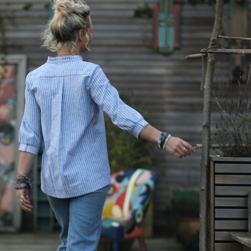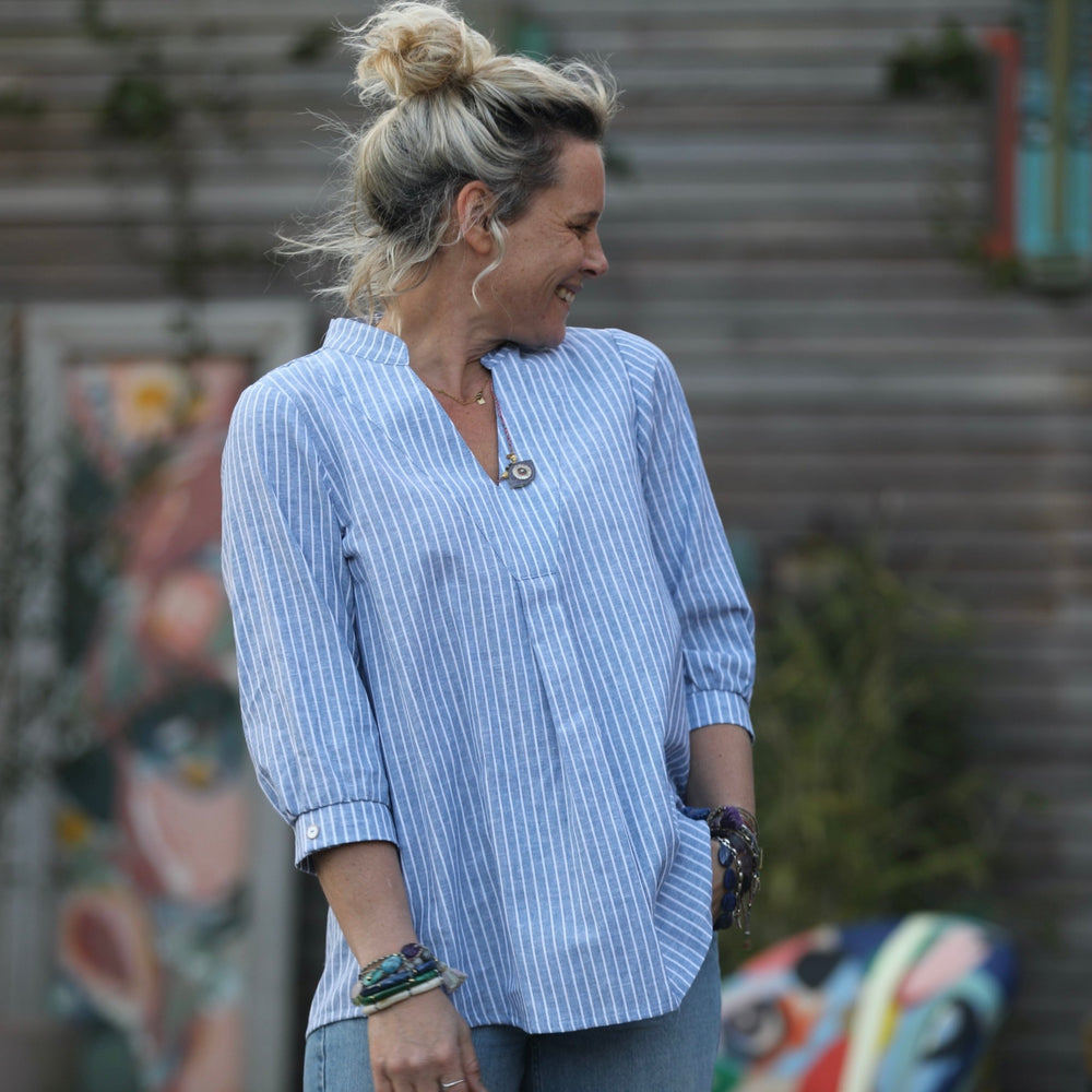 Blouse Isabeau - coton/lin rayé bleu