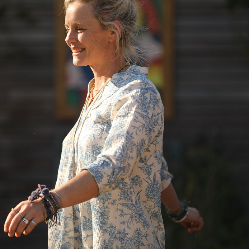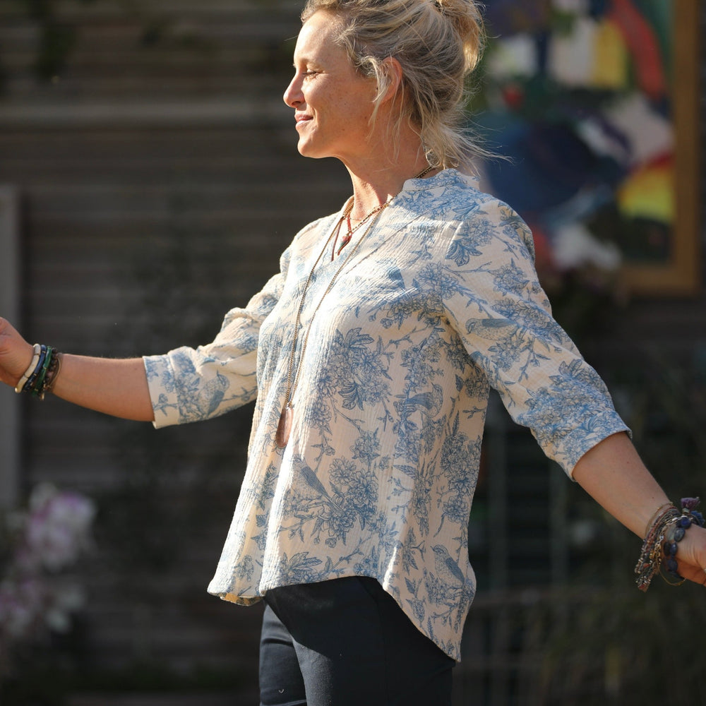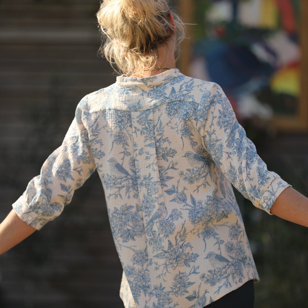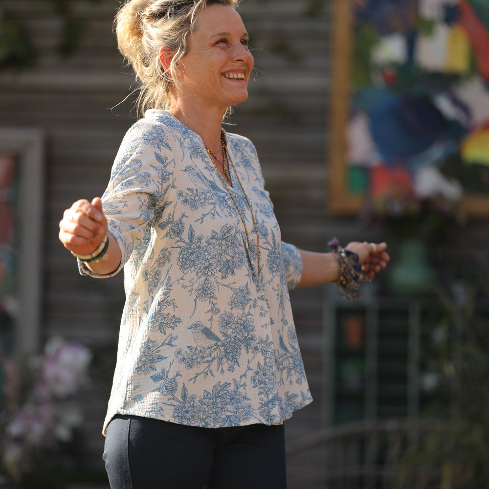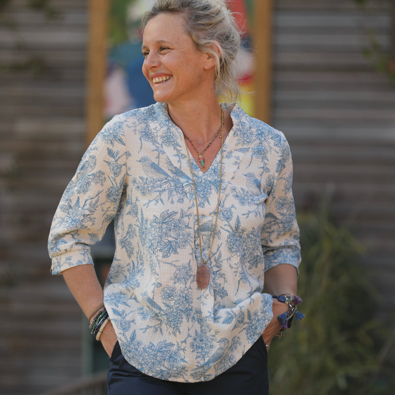 Blouse Isabeau - double gaze de coton Rouge gorge bleu