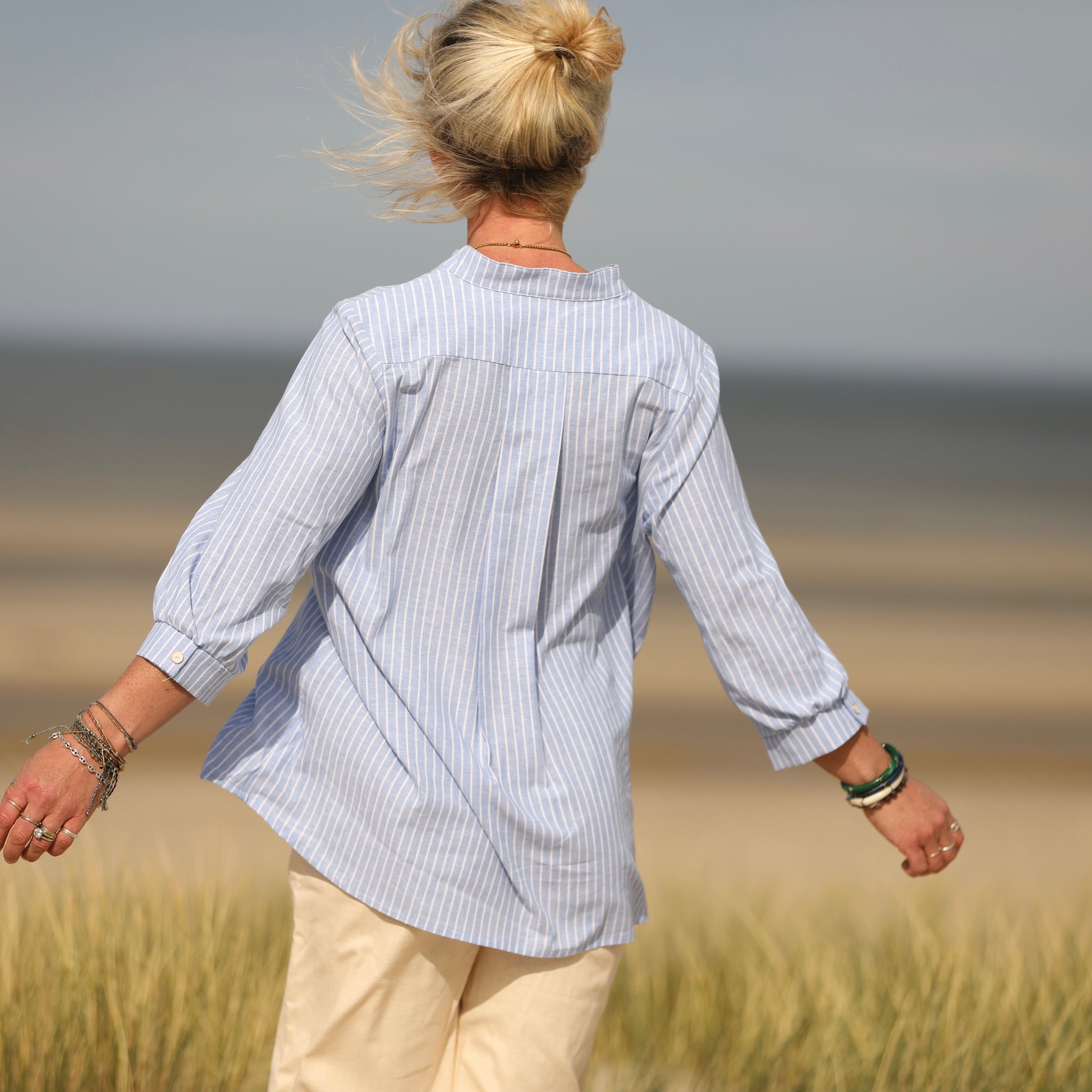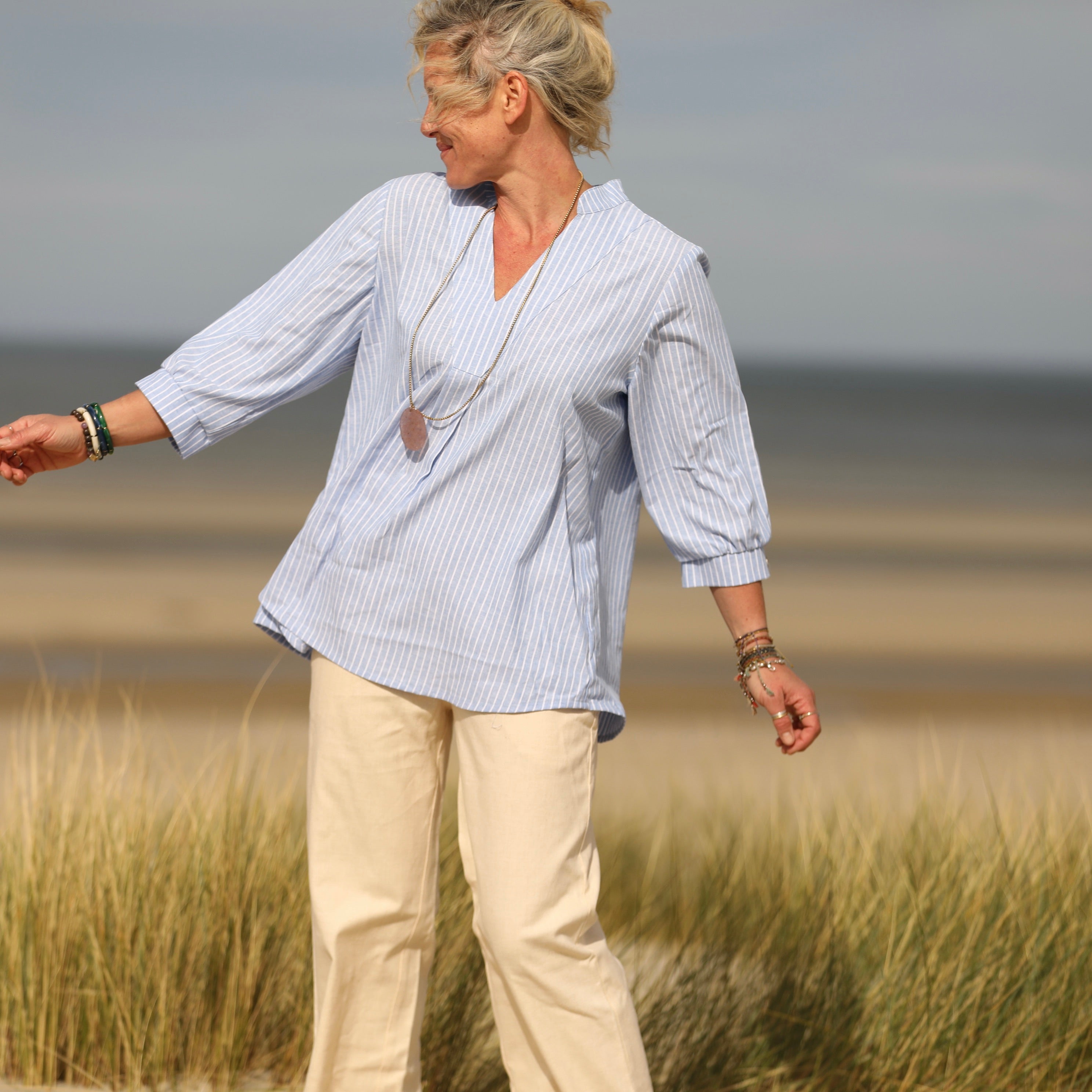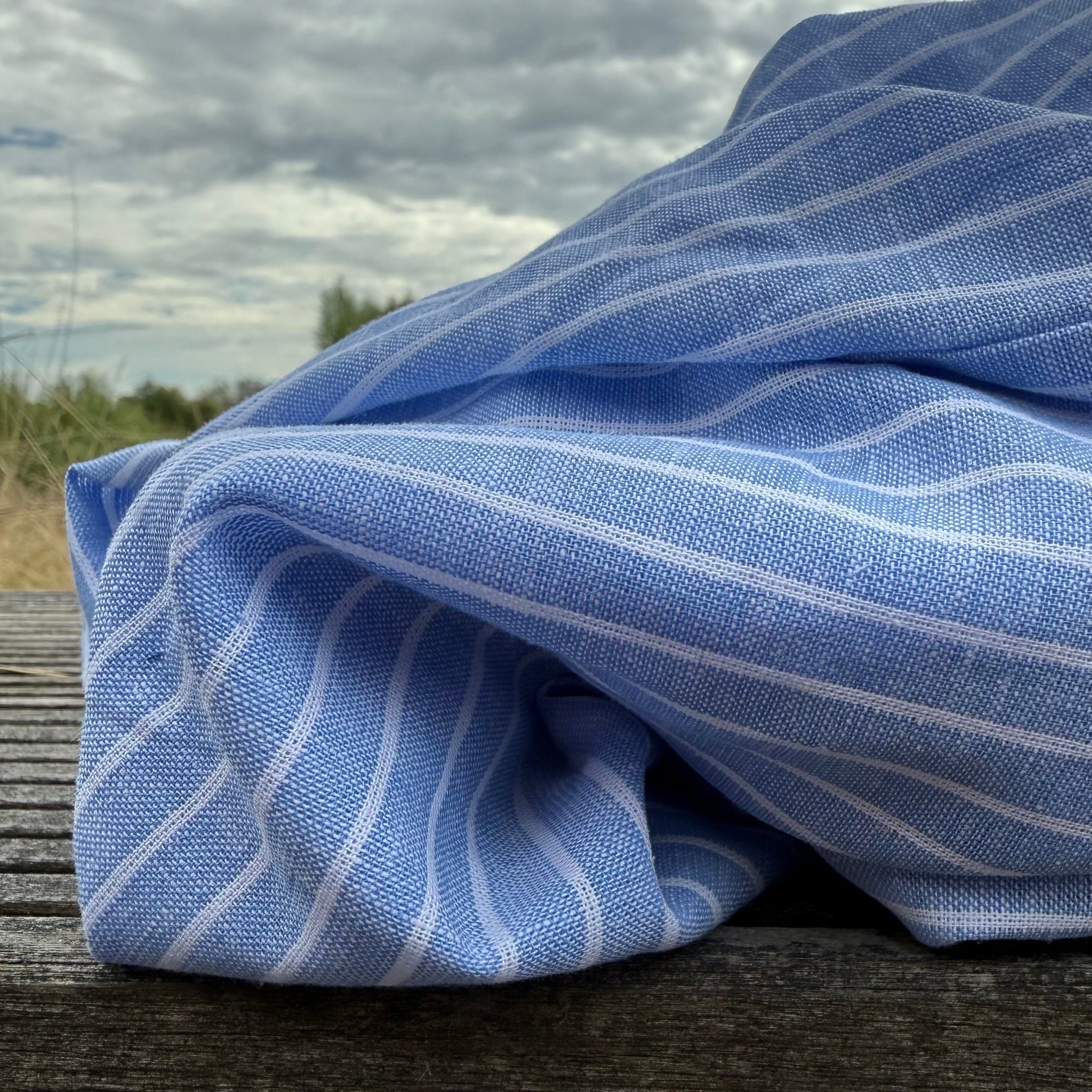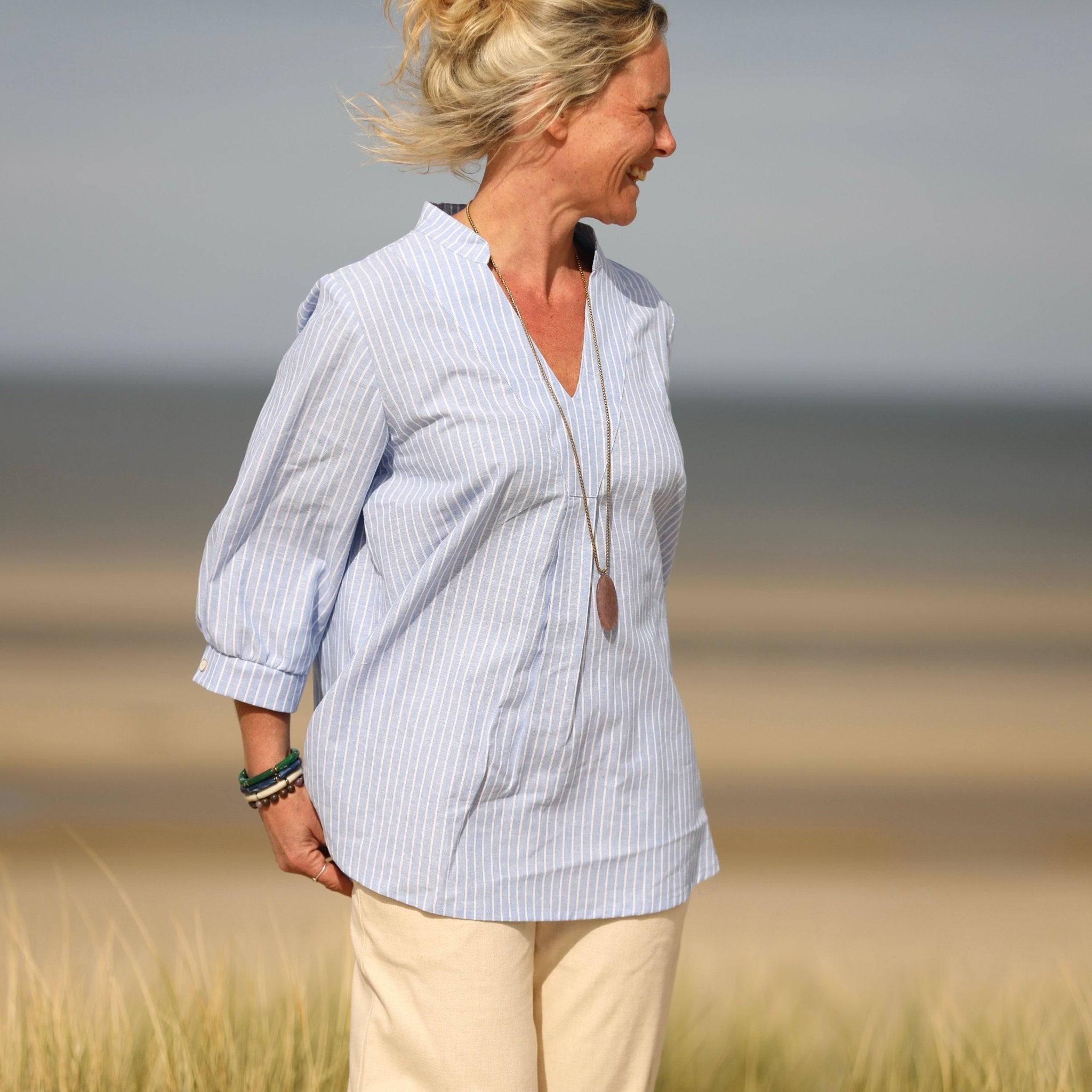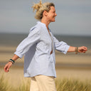 Blouse Isabeau - lin/coton rayé bleu lumineux