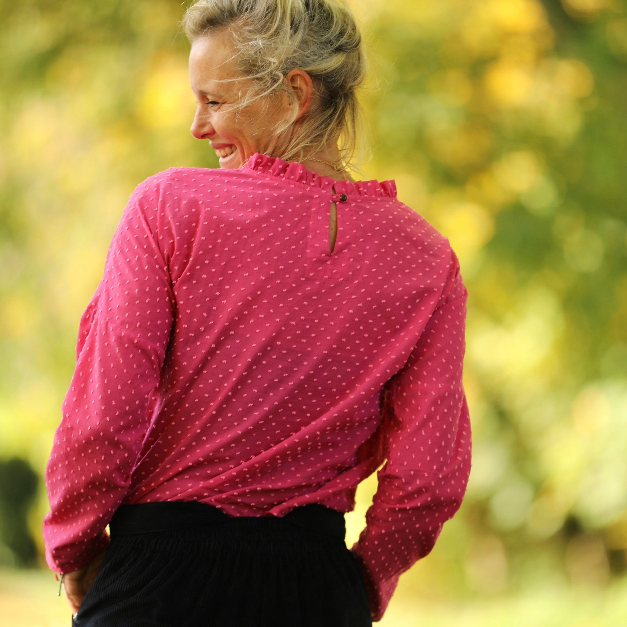 Blouse Janelle – Voile de coton fuchsia plumetis rose