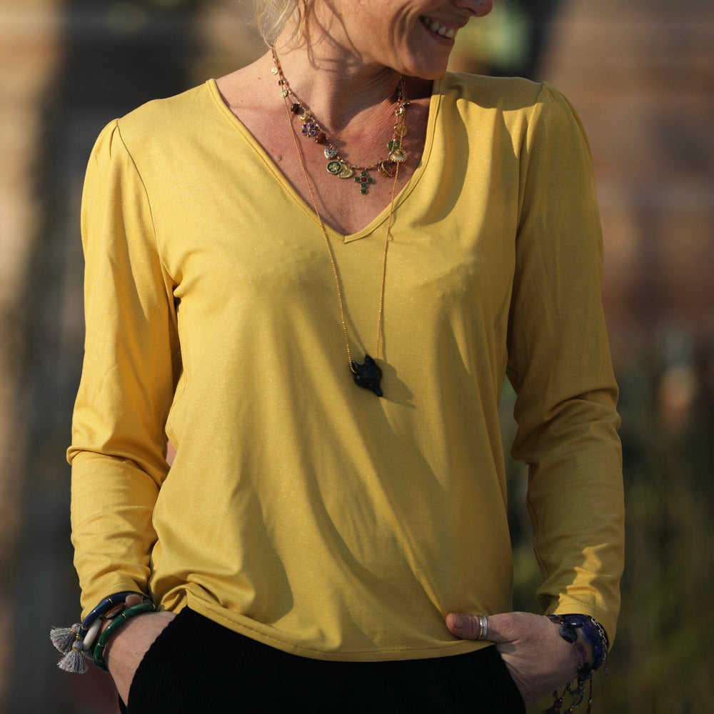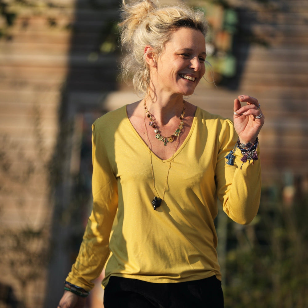 Blouse Lalou jersey de viscose jaune pailleté