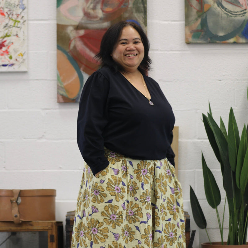 Lalou est un haut raffiné à manches longues, caractérisé par des manches légèrement bouffantes agrémentées de fronces, qui apportent une élégance subtile tout en offrant un confort optimal.