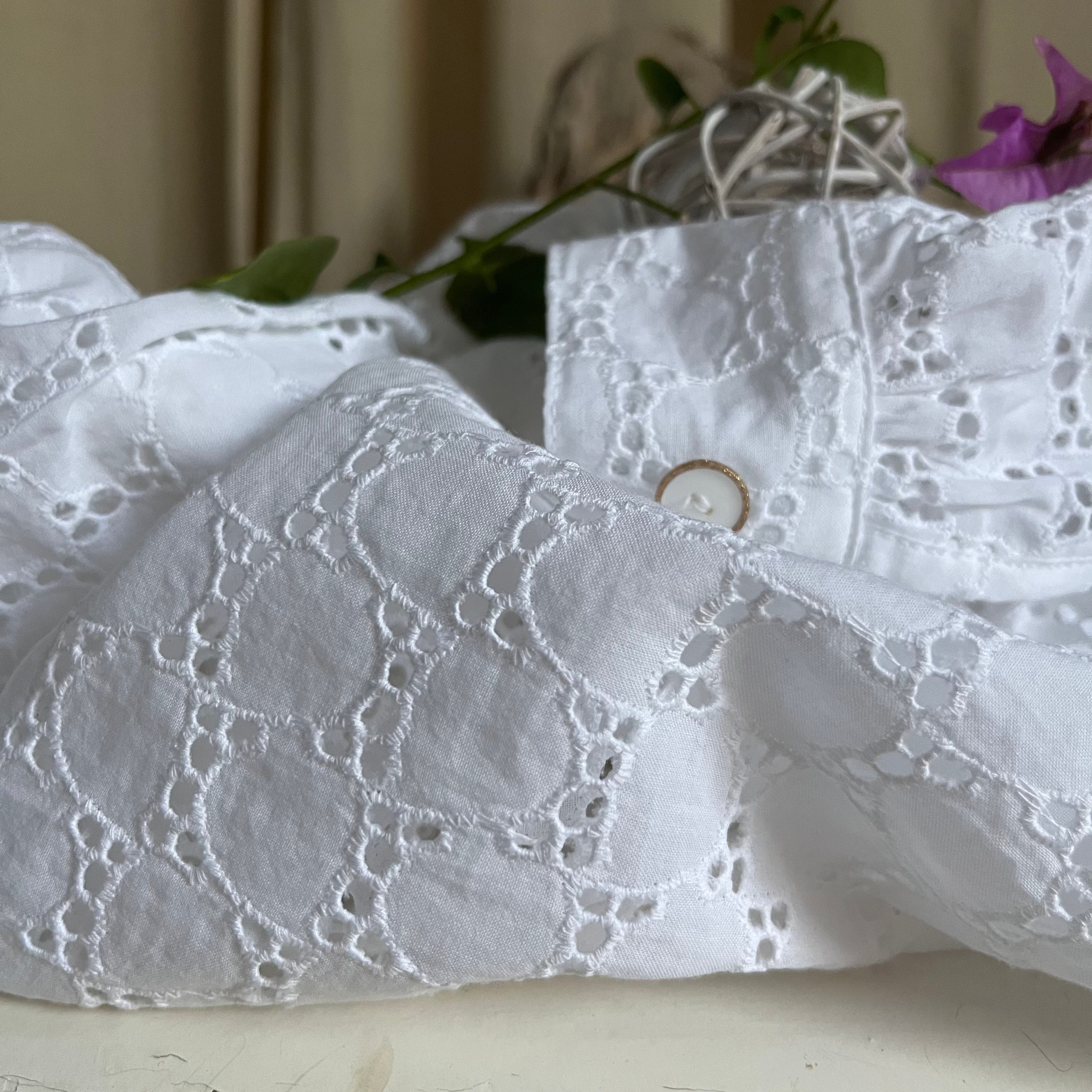 Blouse Léa - broderie de coton fleurie blanche