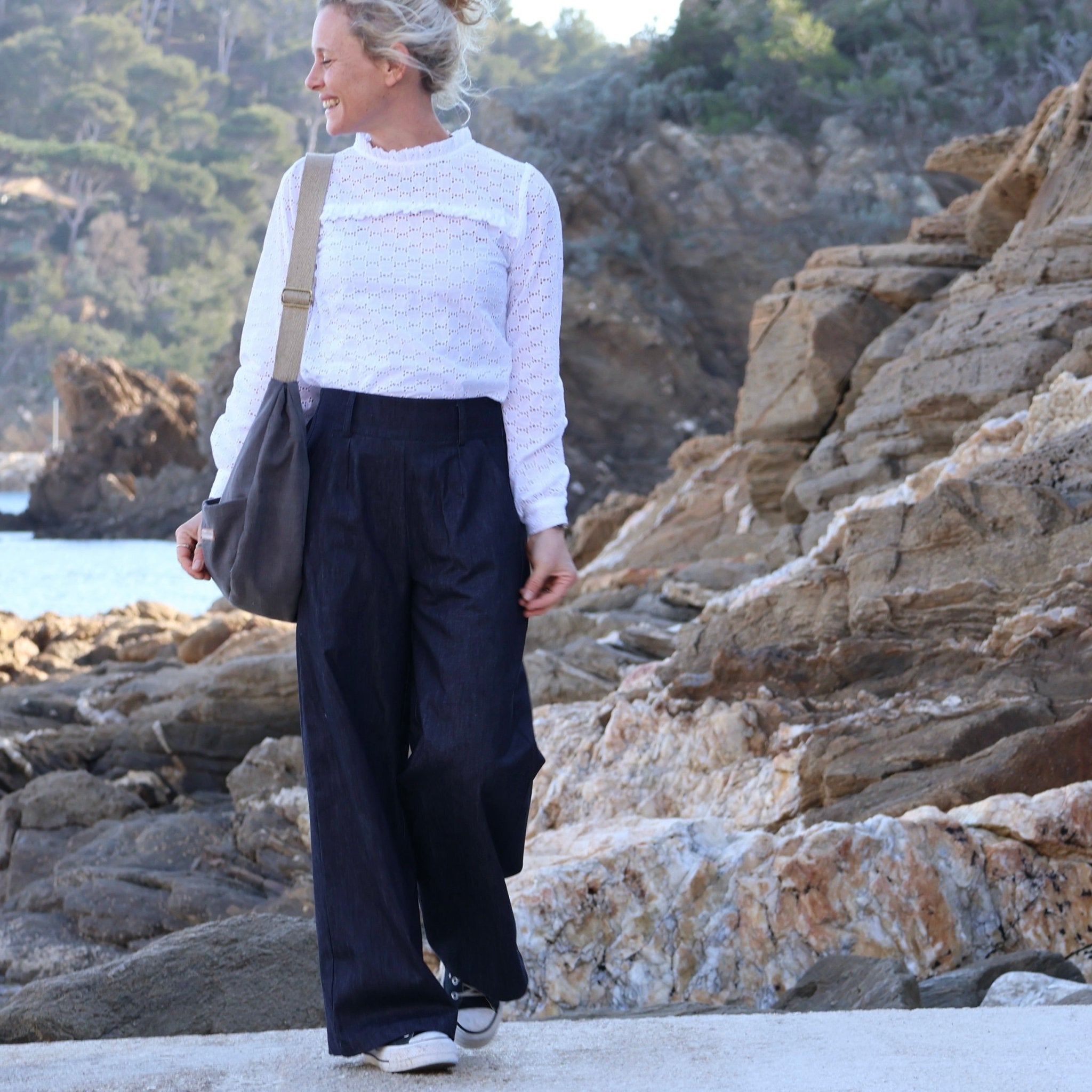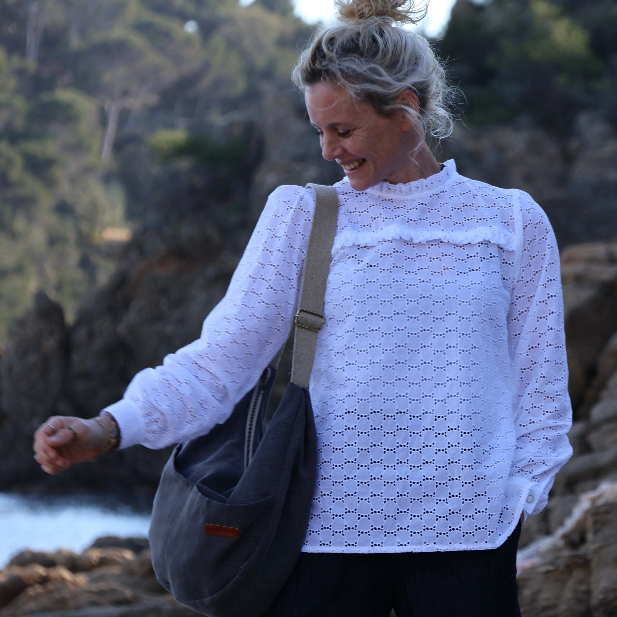 Léa est une blouse élégante, dans un voile brodée à côté de Cambrai dans le nord de la France, elle est agrémentée de délicats froufrous autour du col et ornée d'une bande juste au-dessus de la poitrine, ajoutant une dimension de féminité et d'élégance.