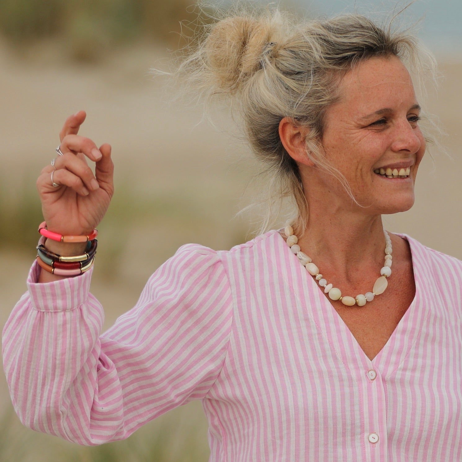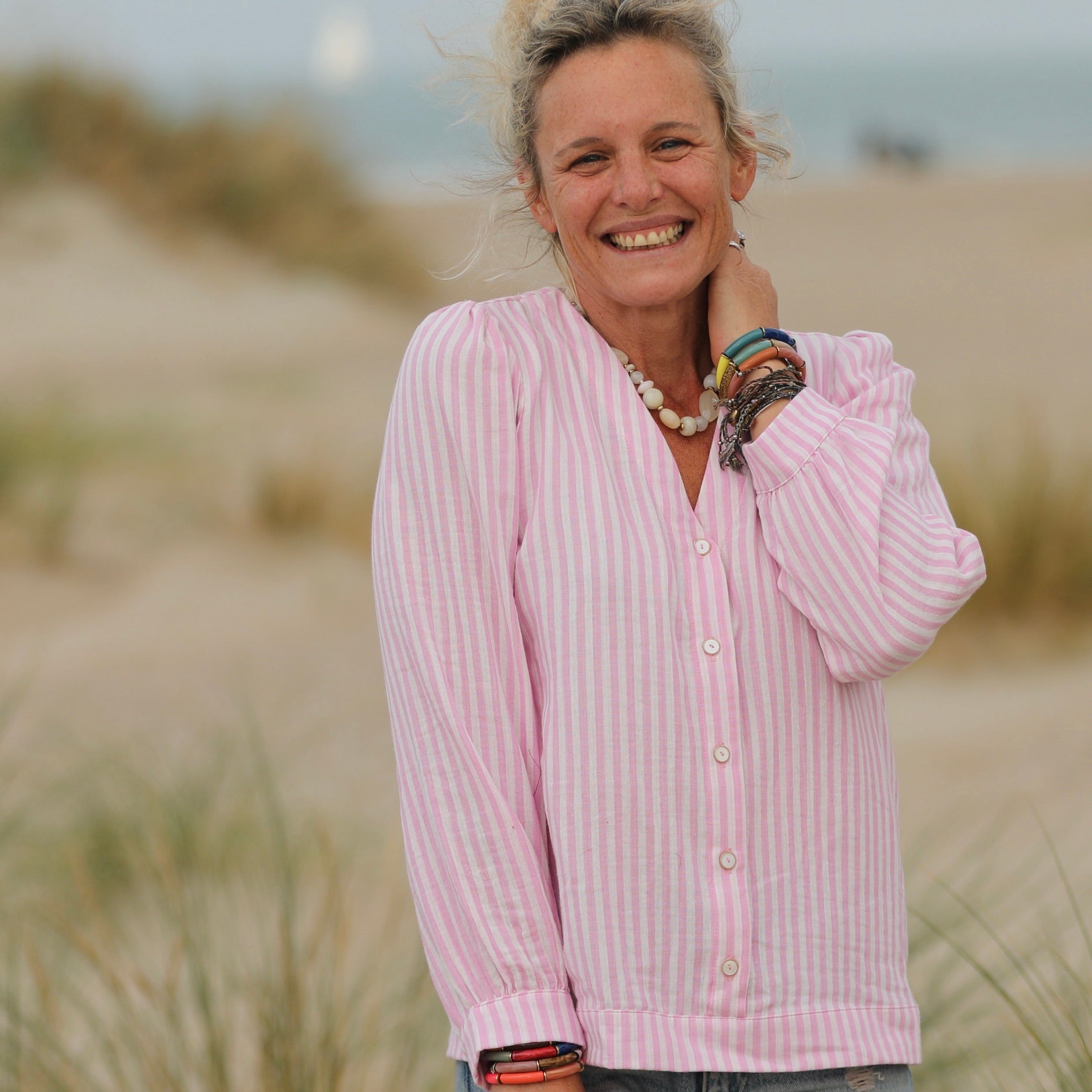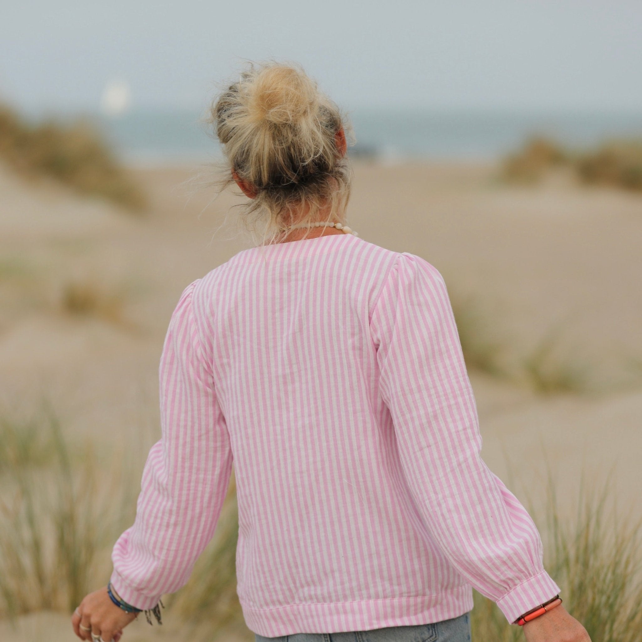 Blouse Léocadie - double gaze de coton rayée rose/blanc