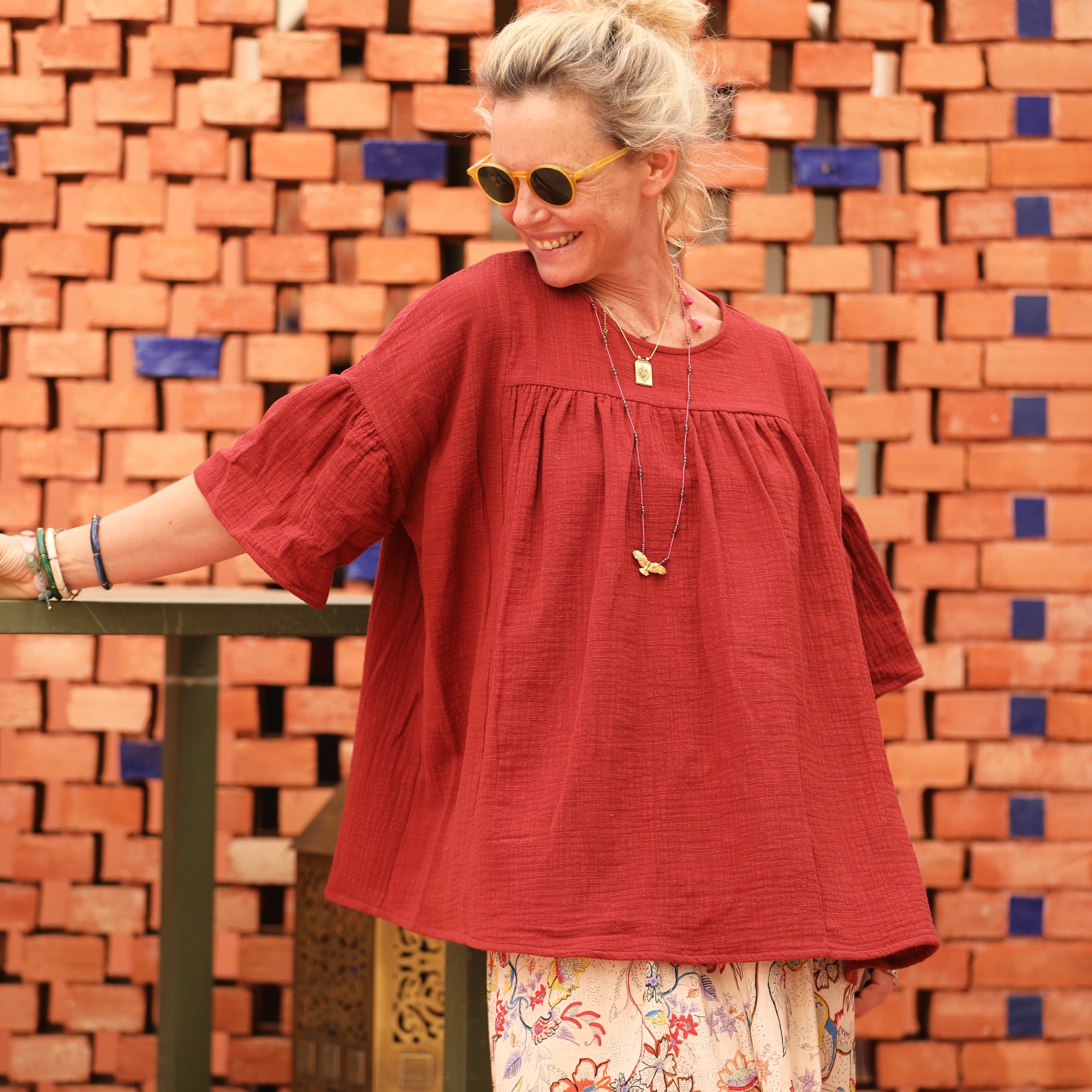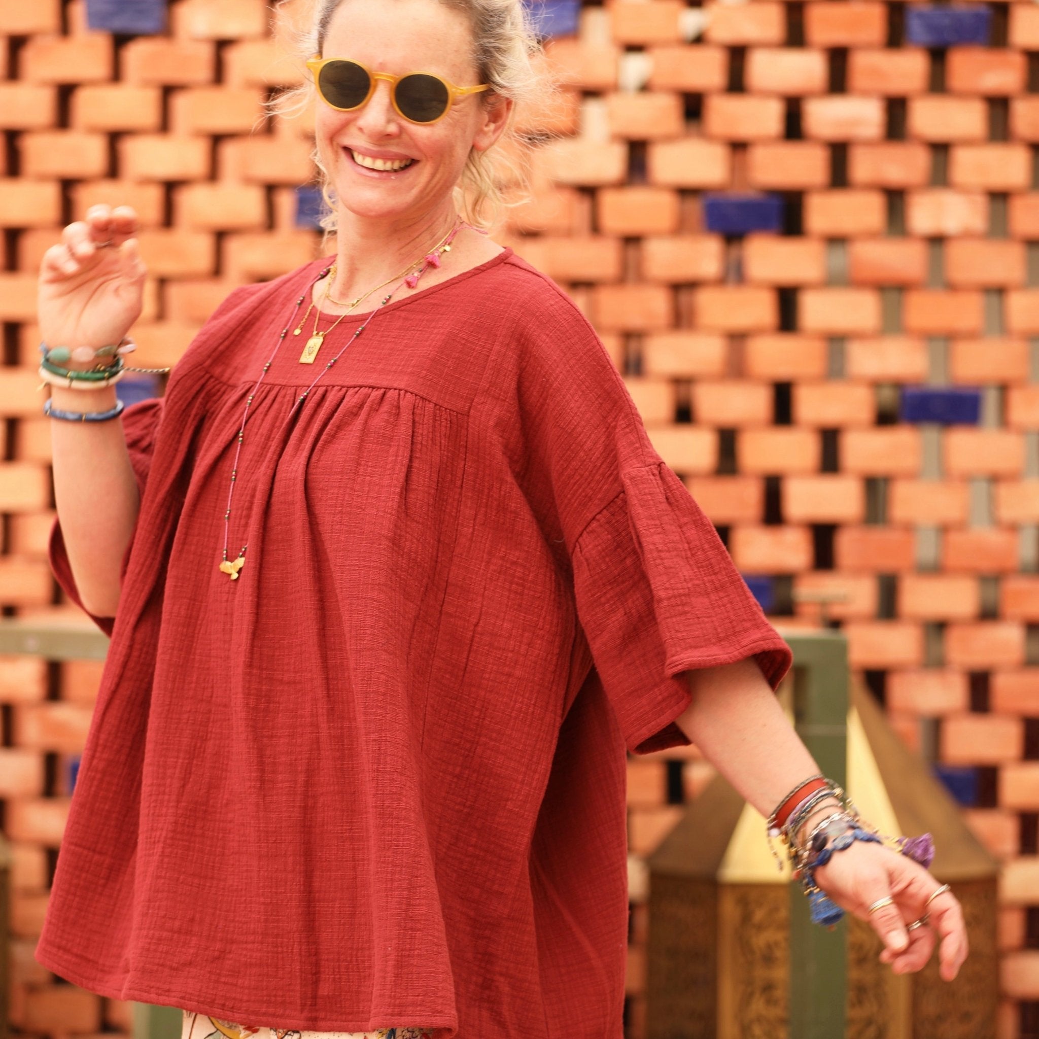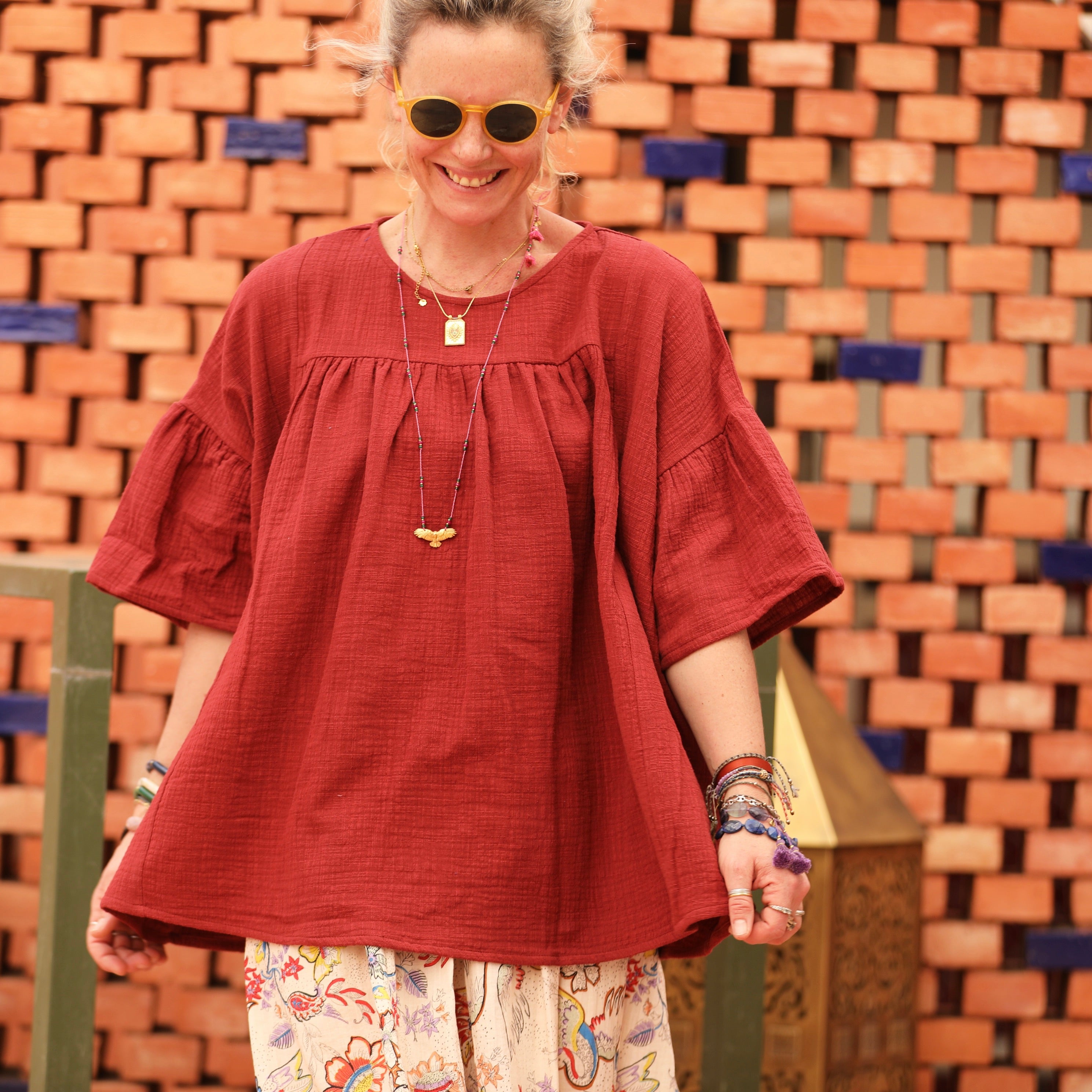 Blouse Léopoldine - armuré/double gaze de coton terre de sienne