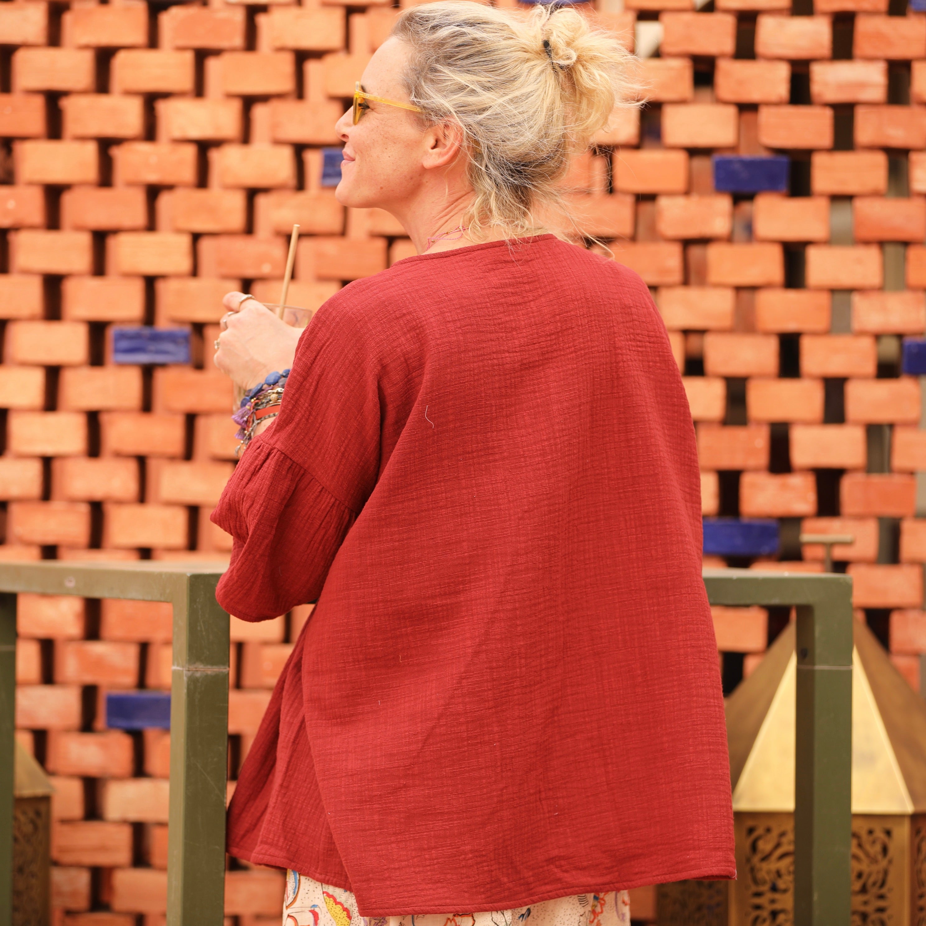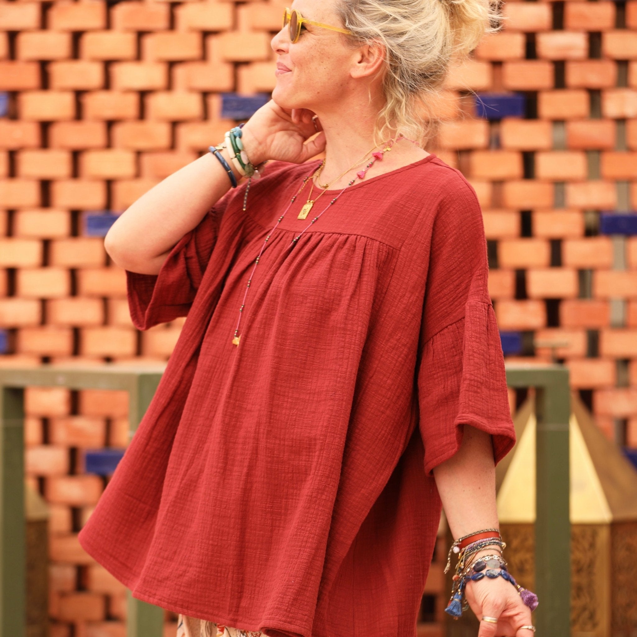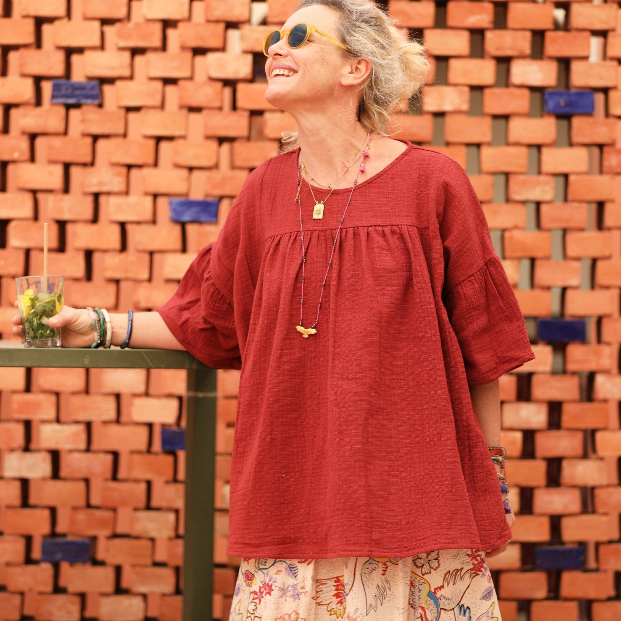 Blouse Léopoldine - armuré/double gaze de coton terre de sienne