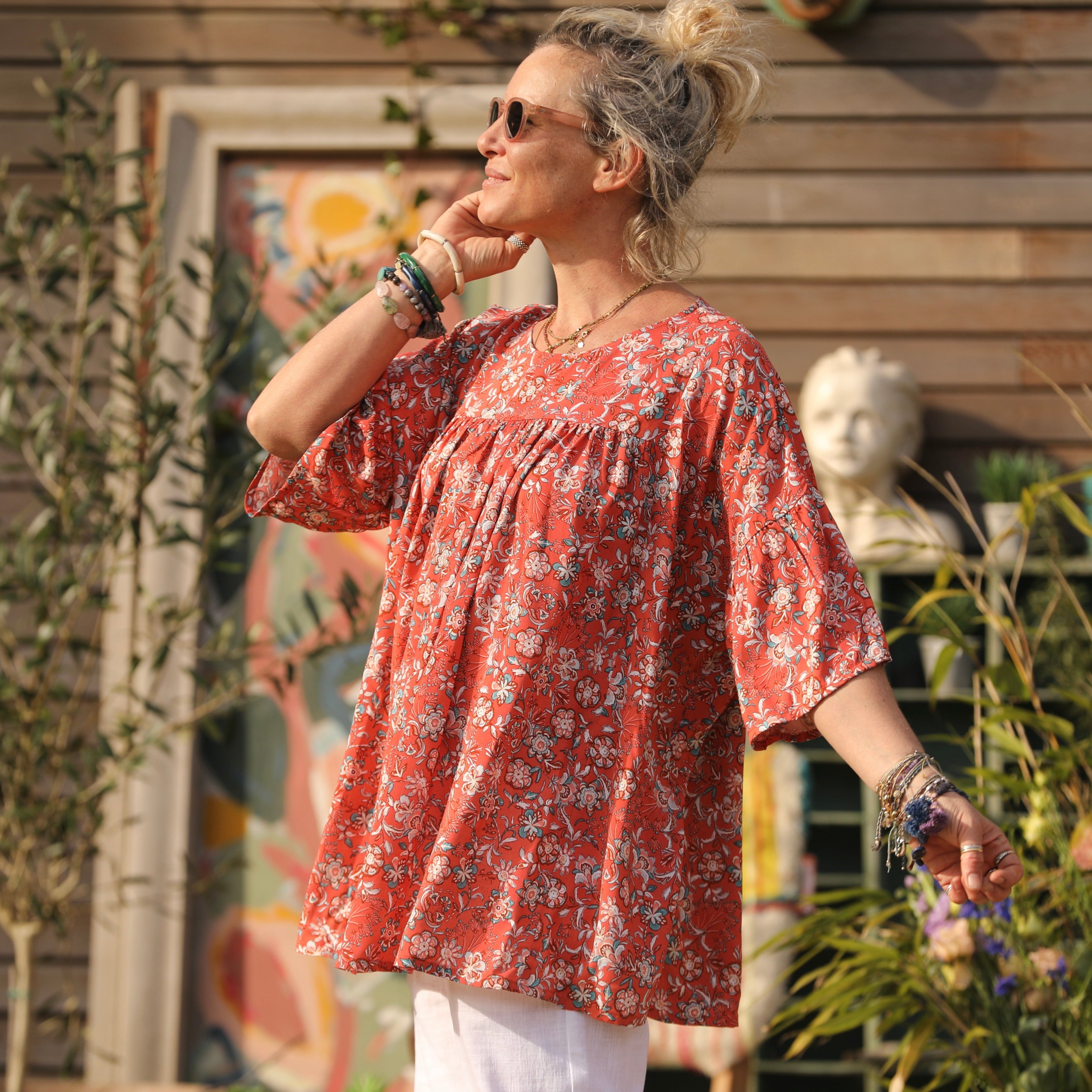 Blouse Léopoldine - viscose bouquet grenadine - Quintessence