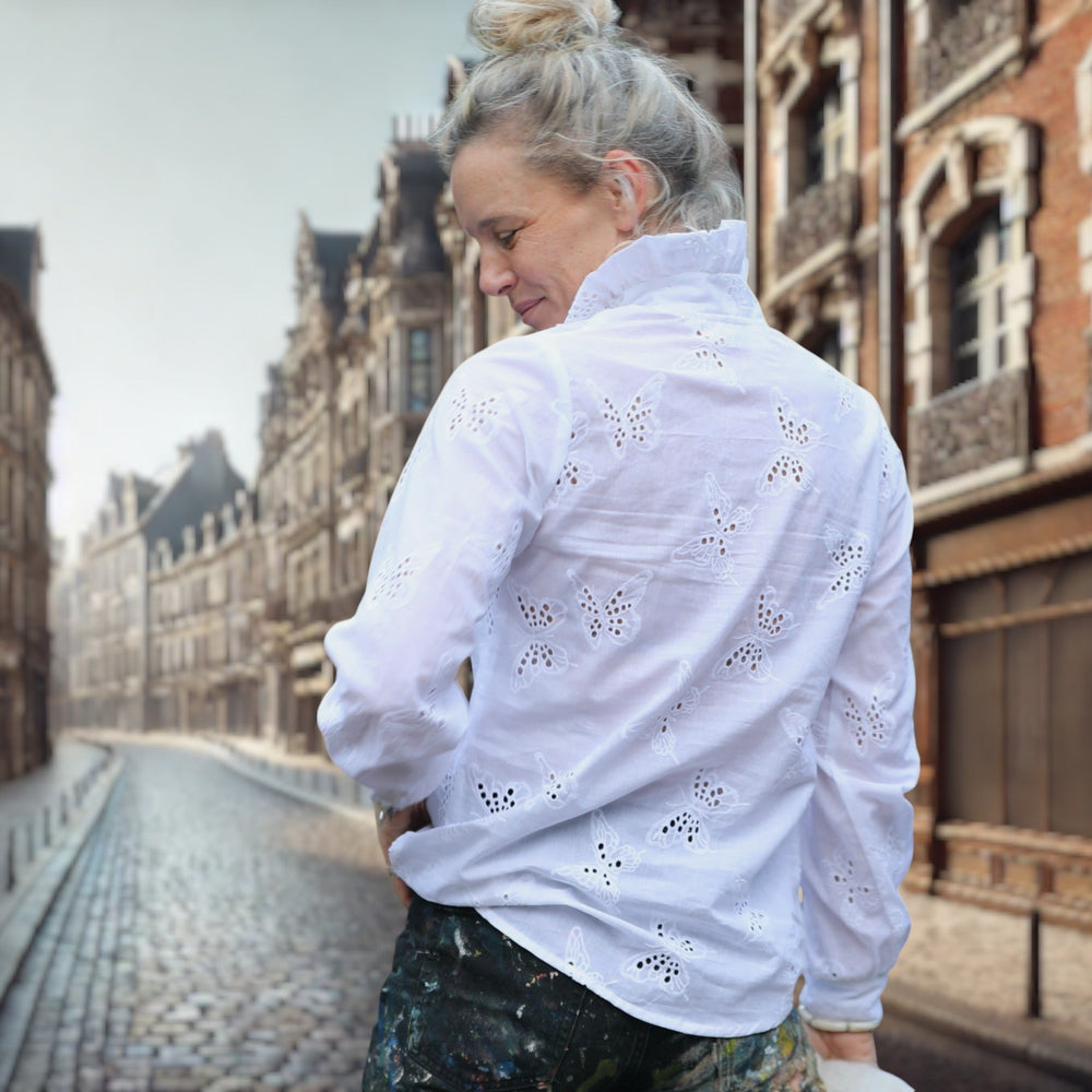 Voici la ravissante Marthe petite soeur de Myrtille, pleine d'élégance avec son col à froufrous, rehaussé d'un centimètre cette année, et son décolleté modulable.