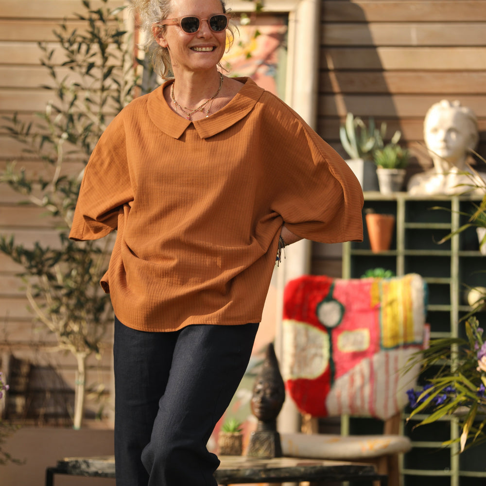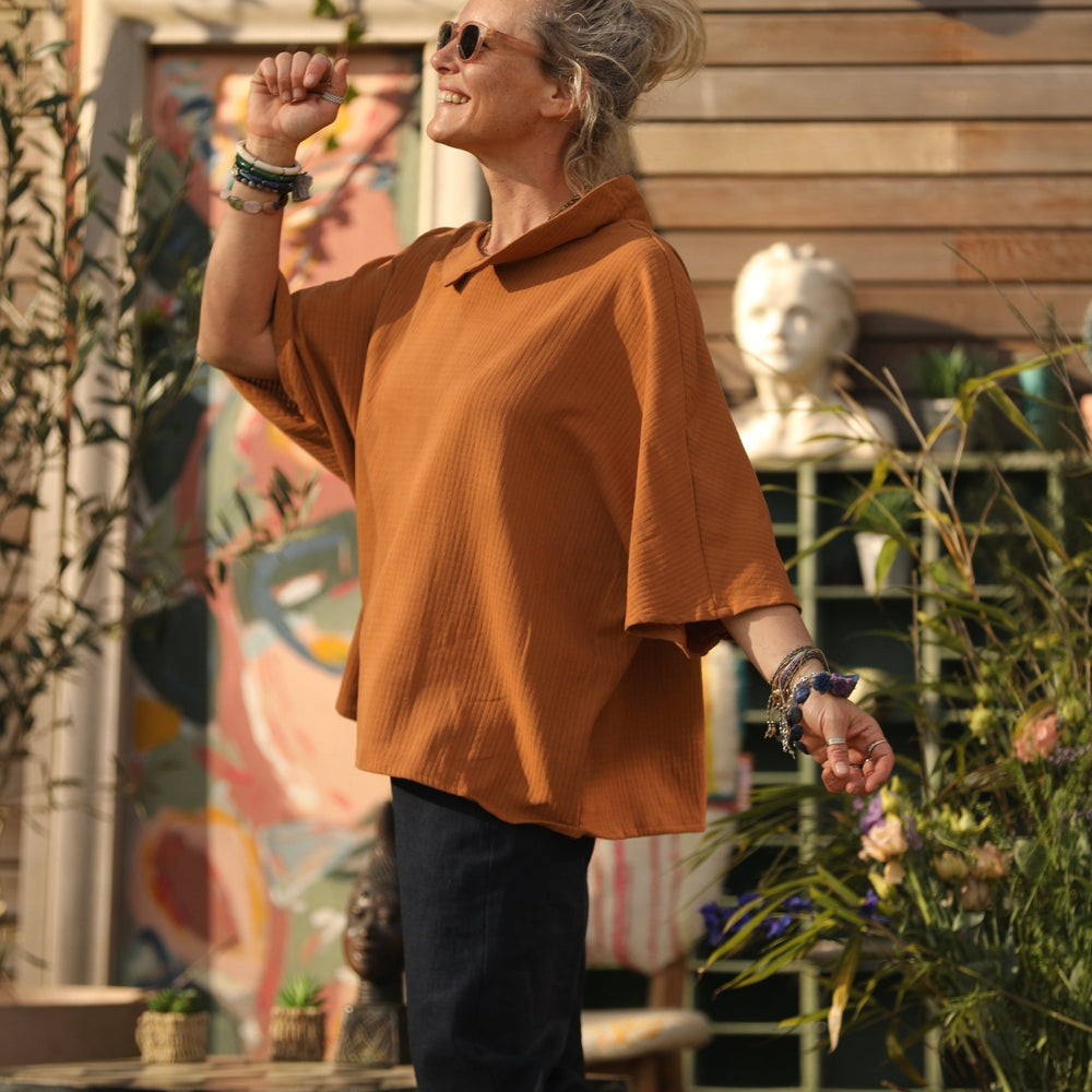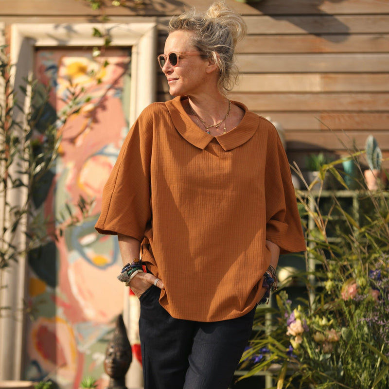 Blouse Myriem - armuré de coton camel