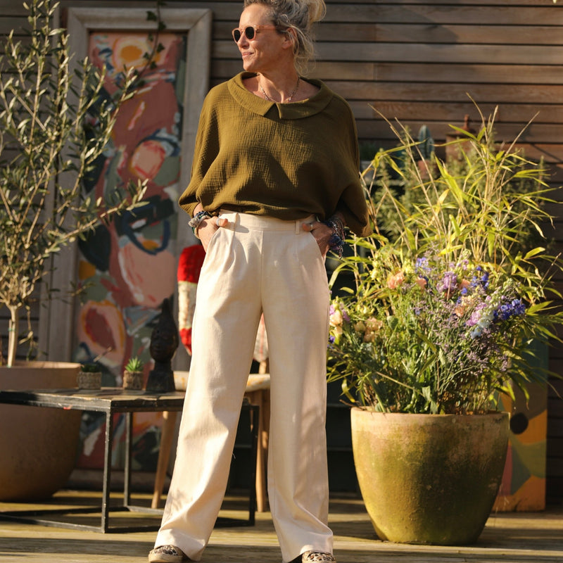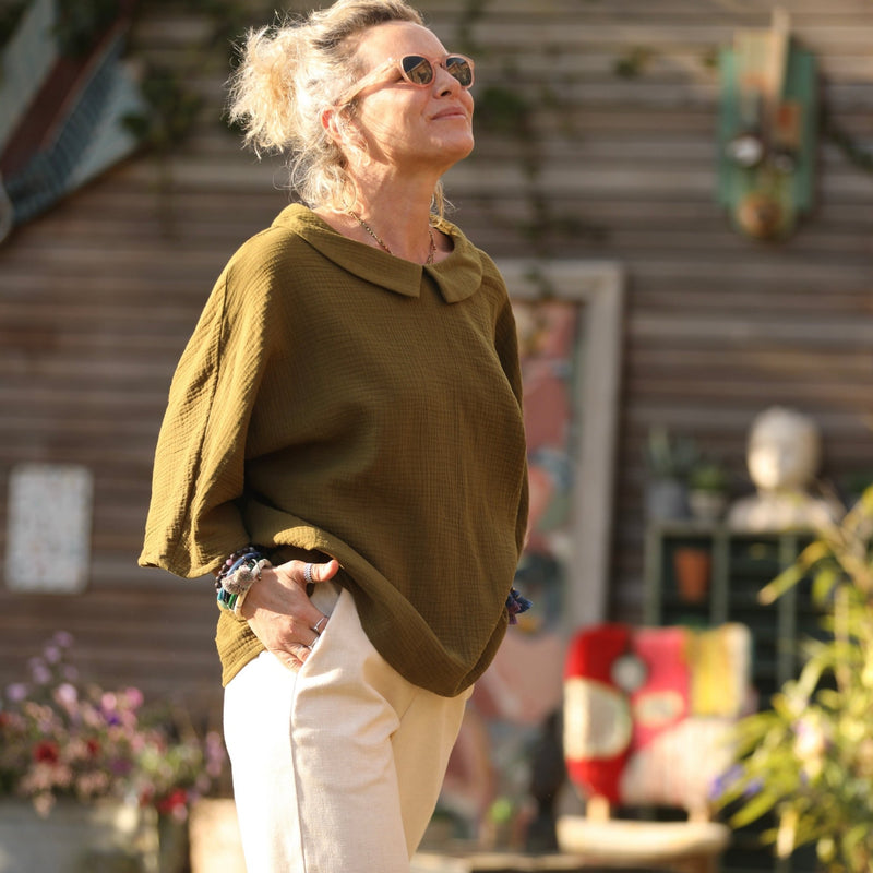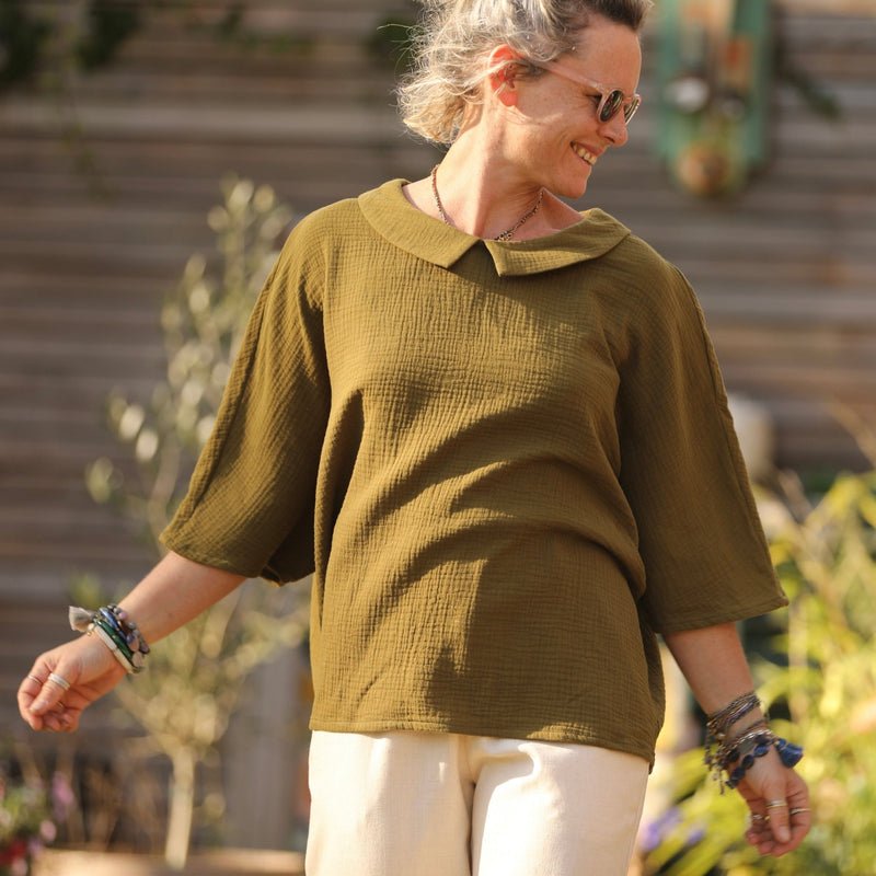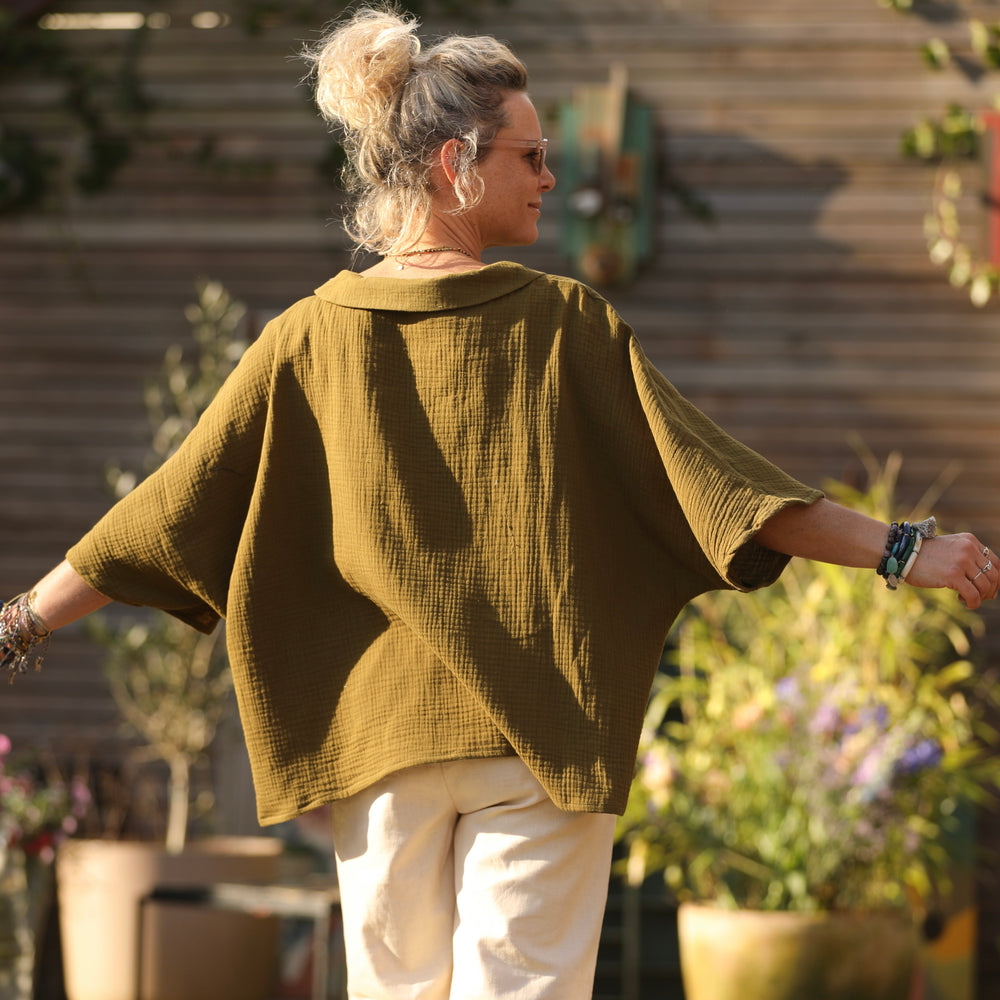Blouse Myriem - double gaze de coton kaki - Quintessence