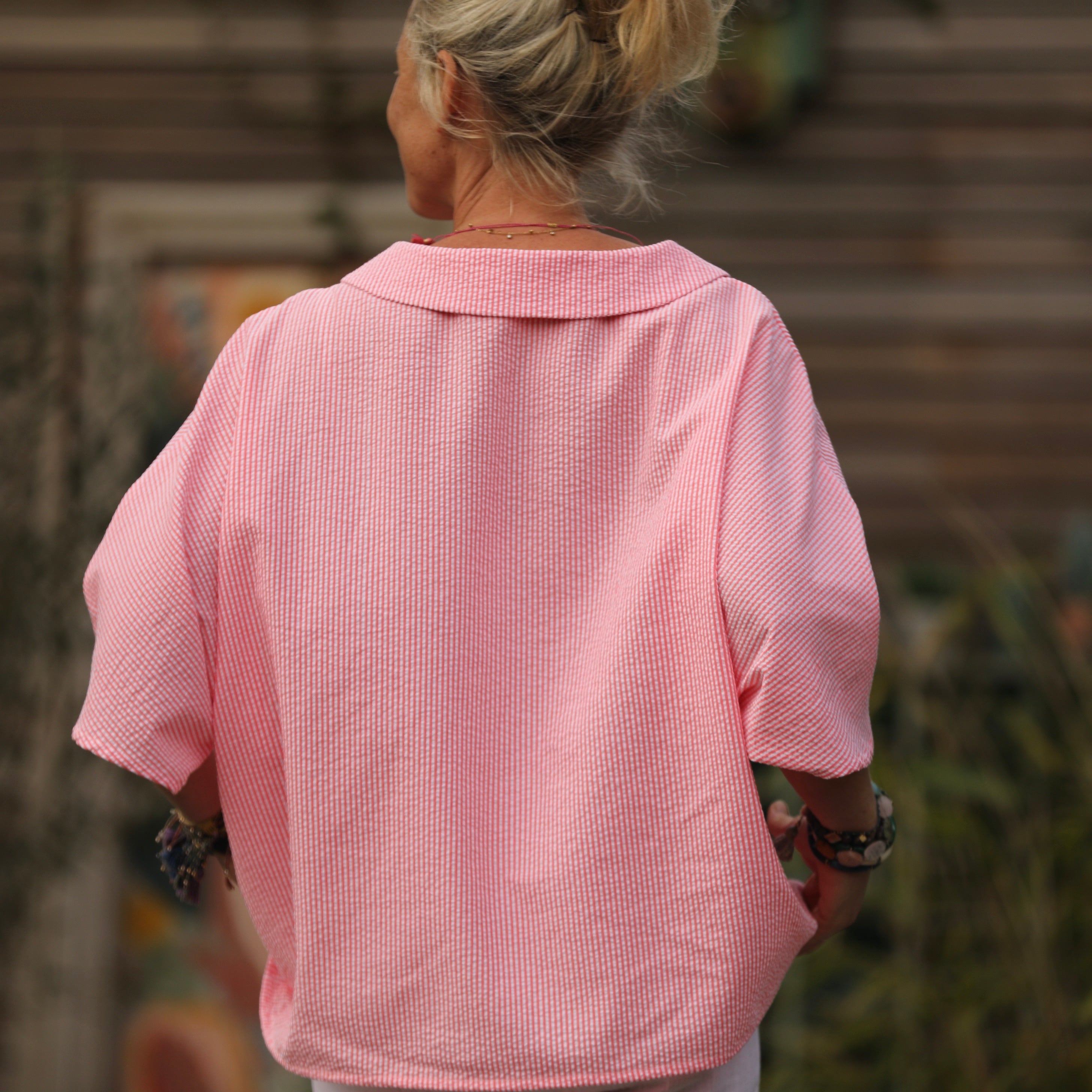 Blouse Myriem - seersucker rayé orange/blanc