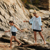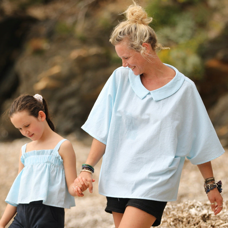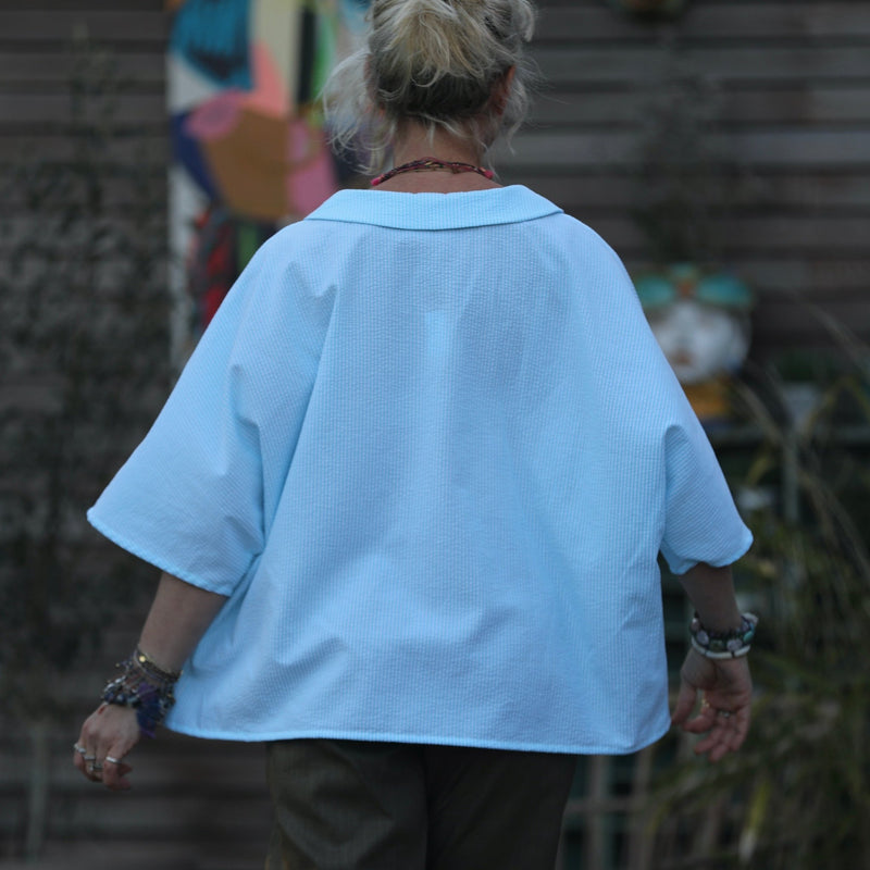 Blouse Myriem - seersucker rayé turquoise/blanc