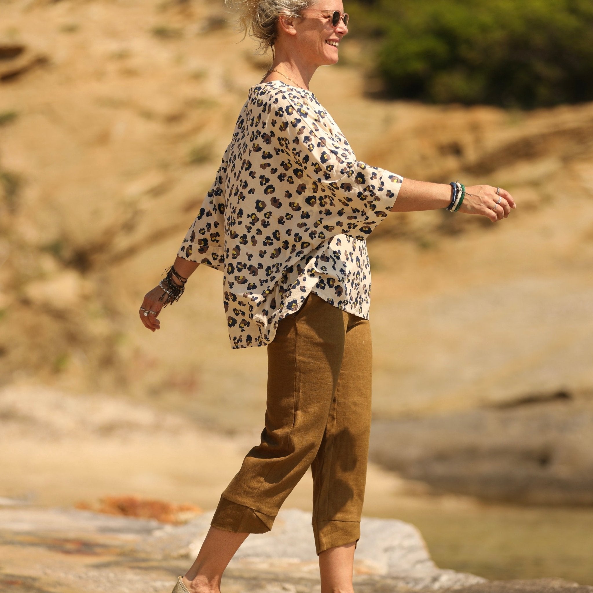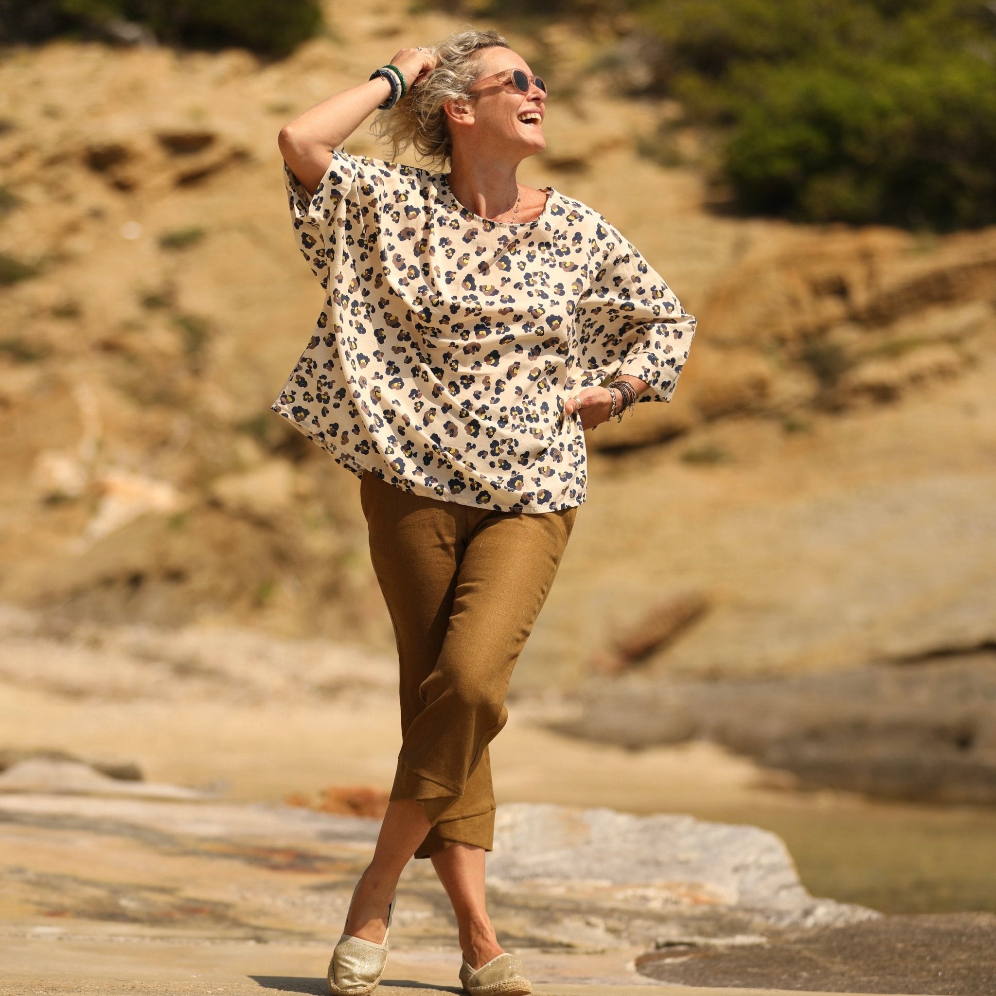 Nao est une élégante blouse au style japonisant, dotée d'une coupe inspirée du kimono.