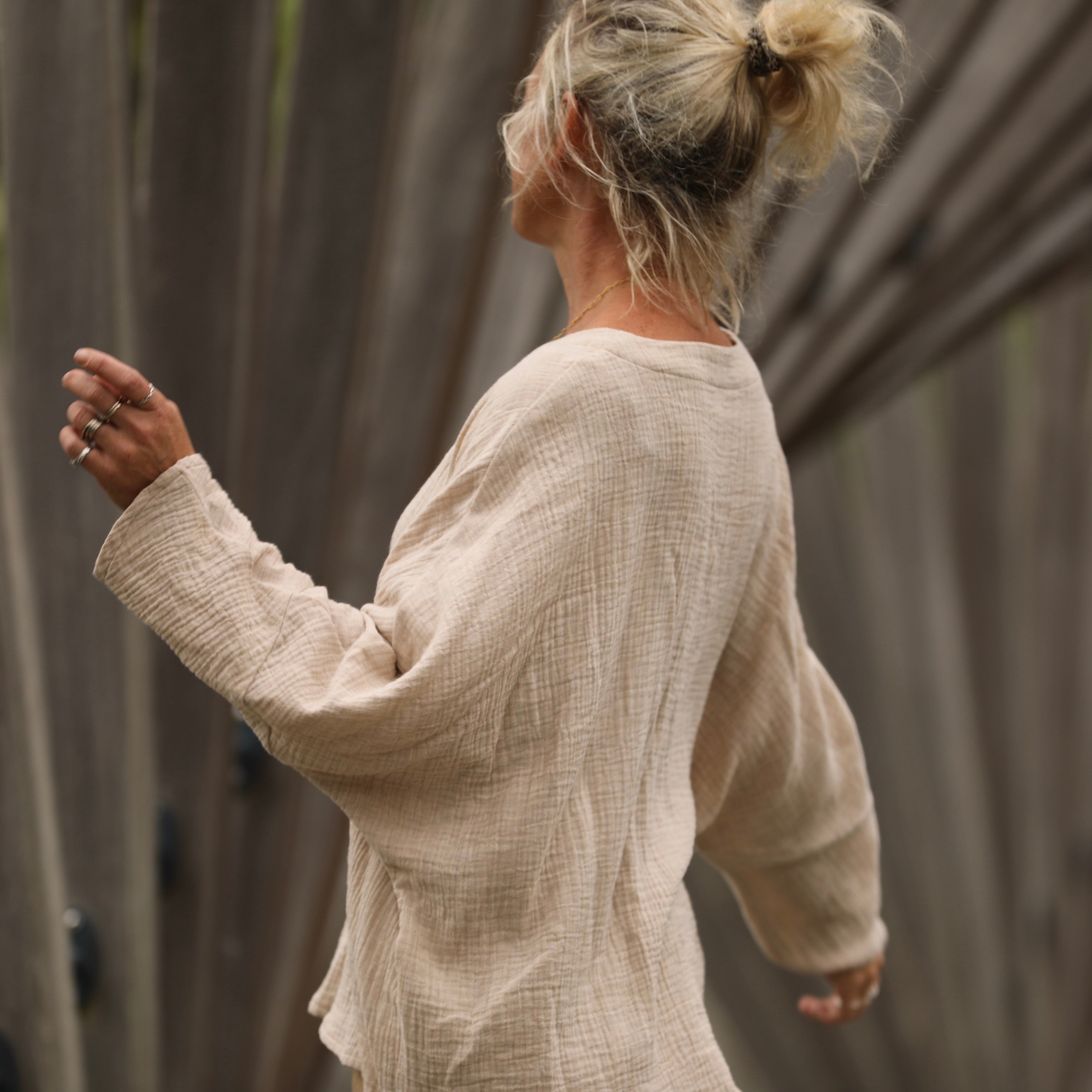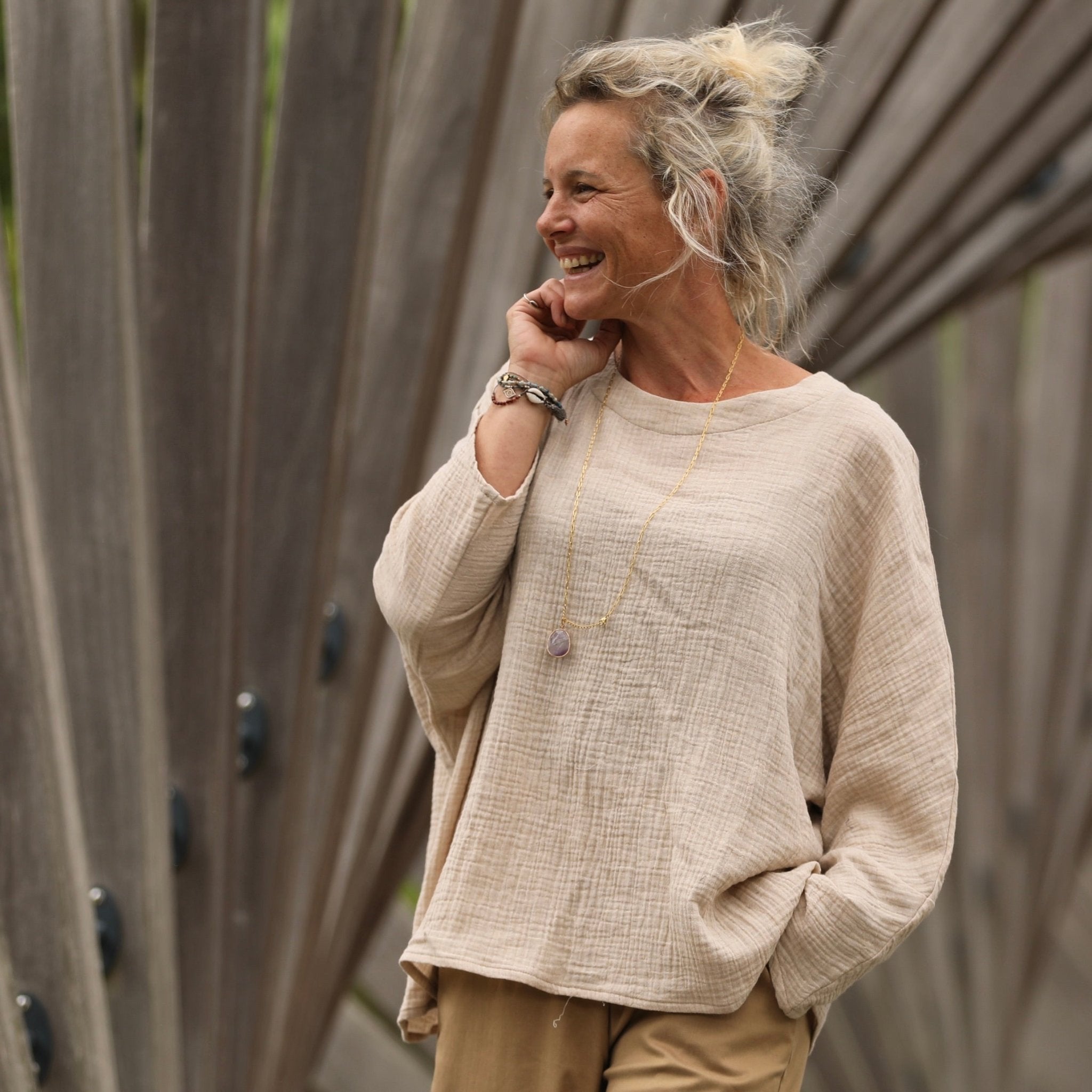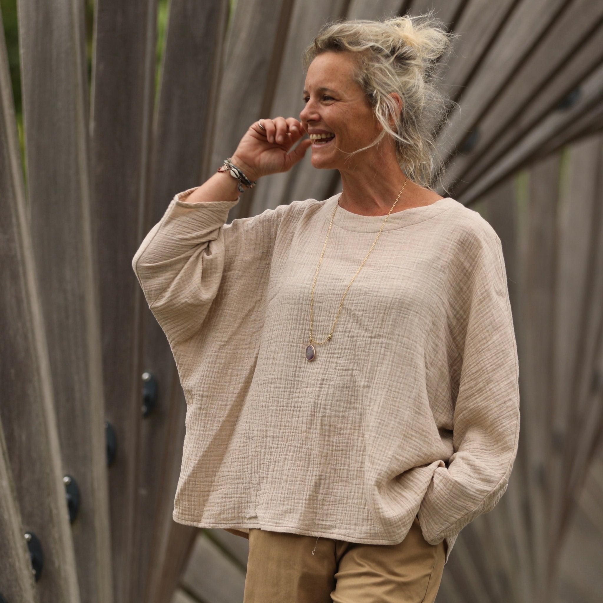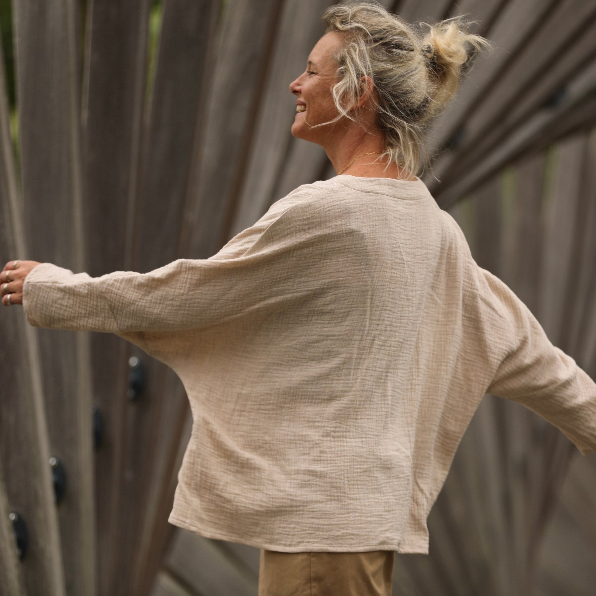 Naomie est une blouse raffinée au charme inspiré de l’esthétique japonaise.