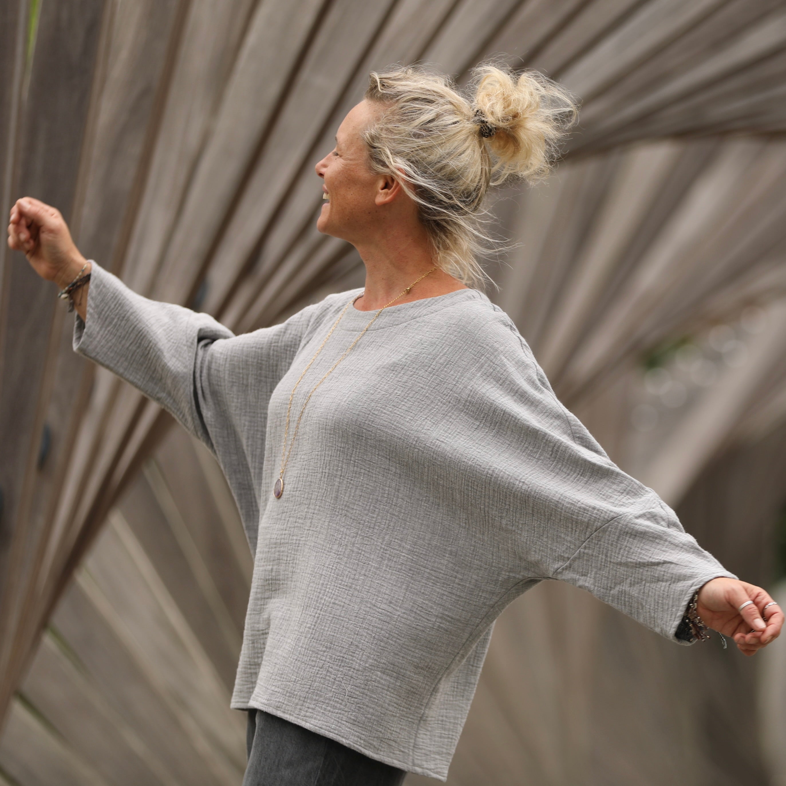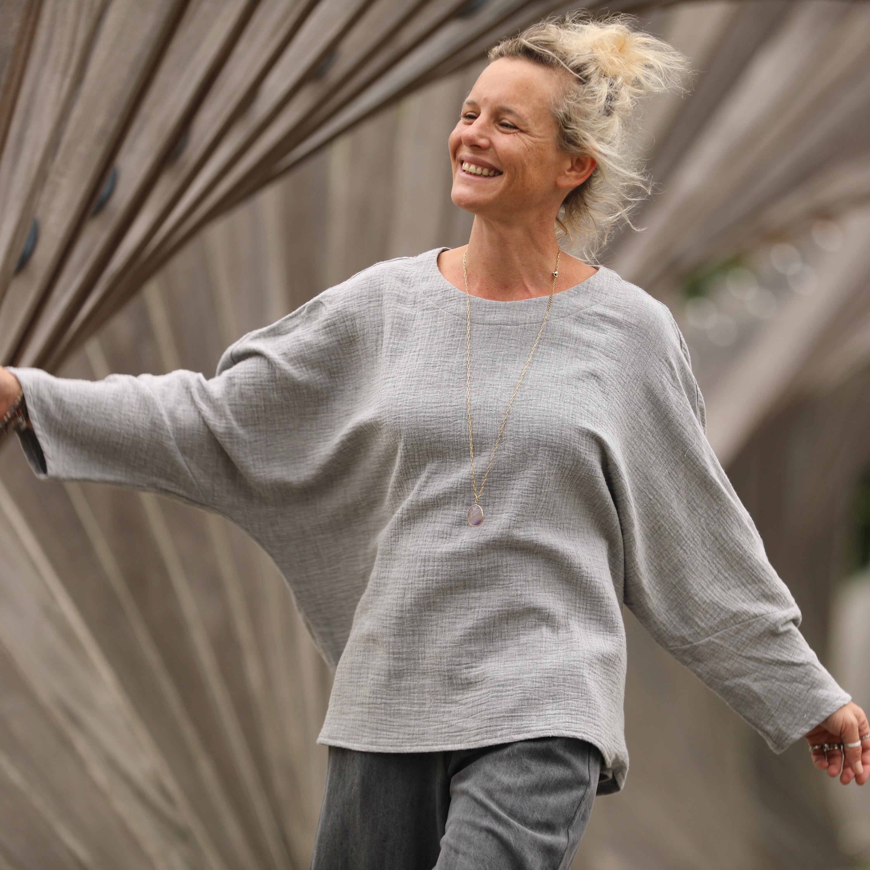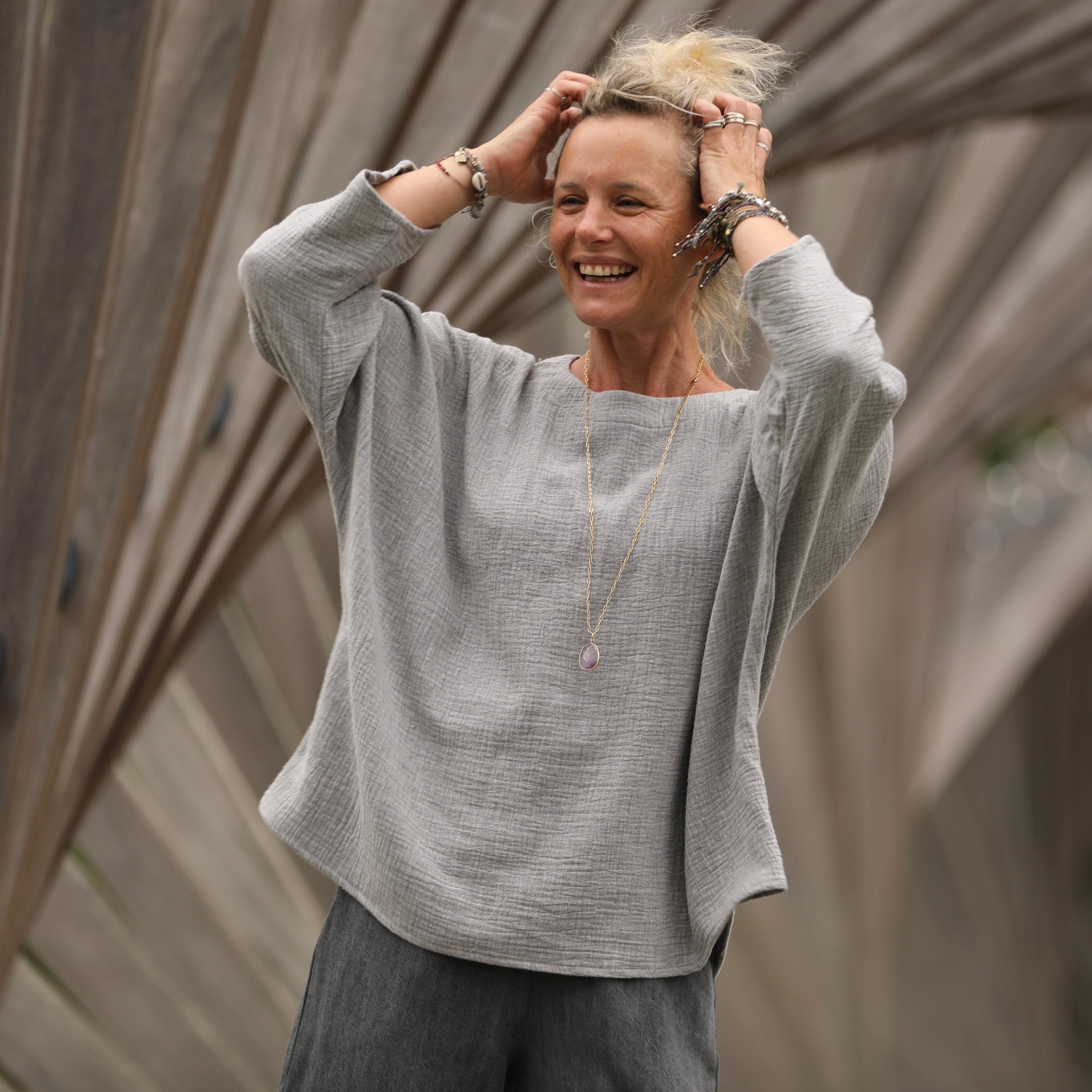 Naomie est une blouse raffinée au charme inspiré de l’esthétique japonaise.