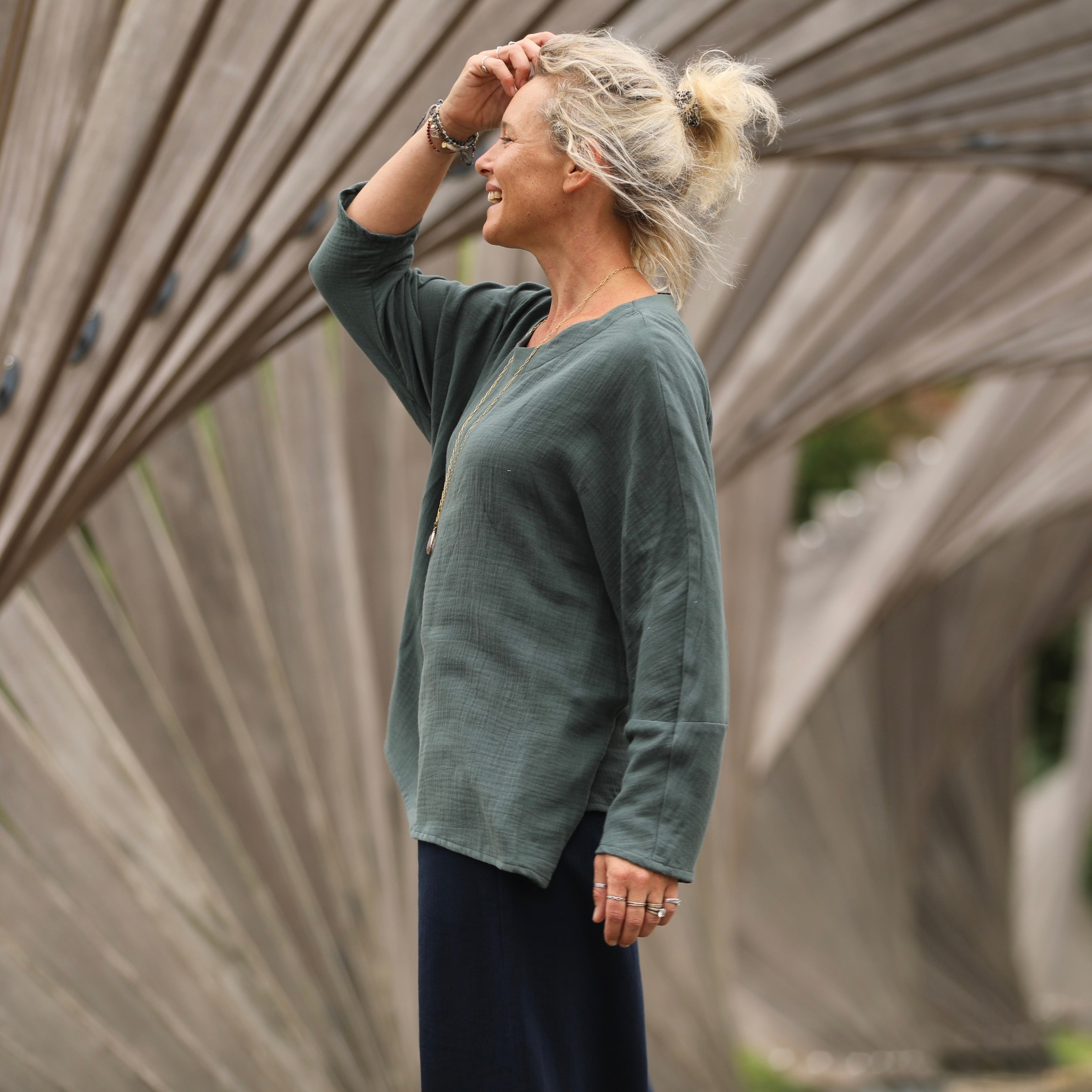 Blouse Naomie - double gaze de coton vert cactus