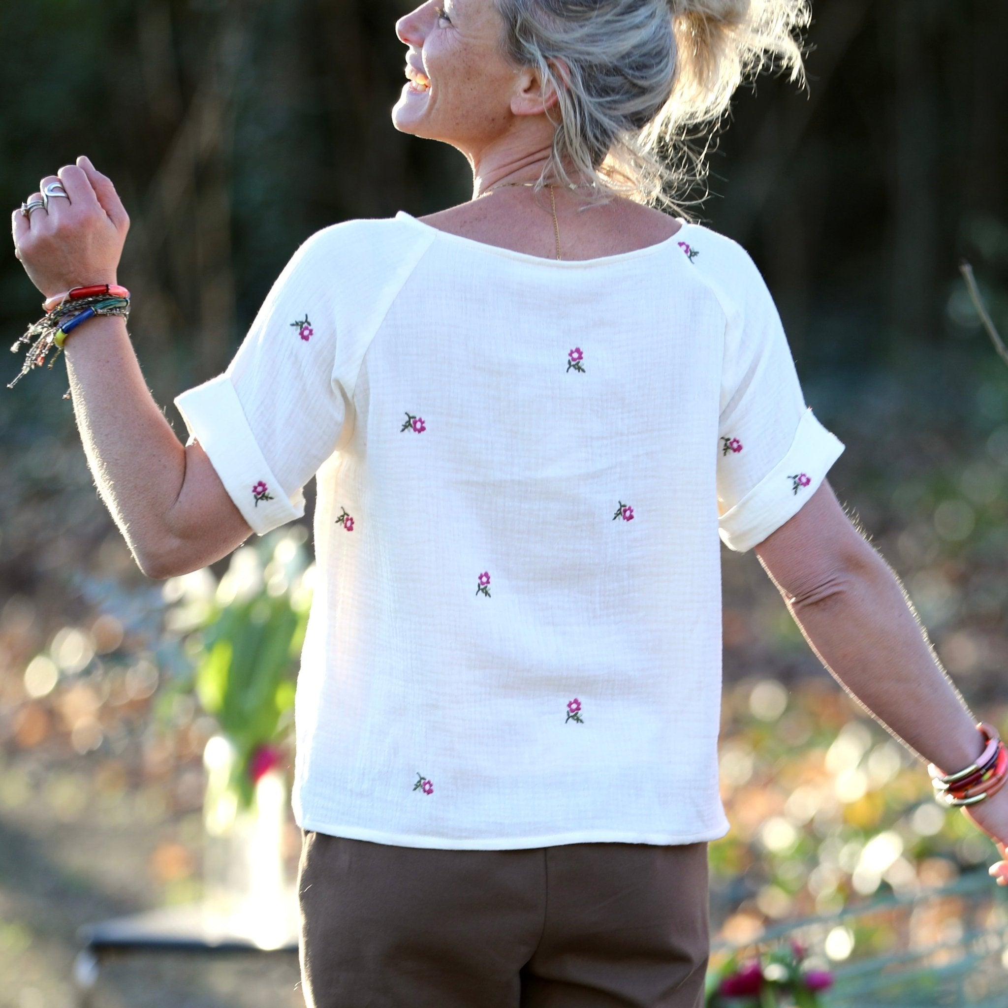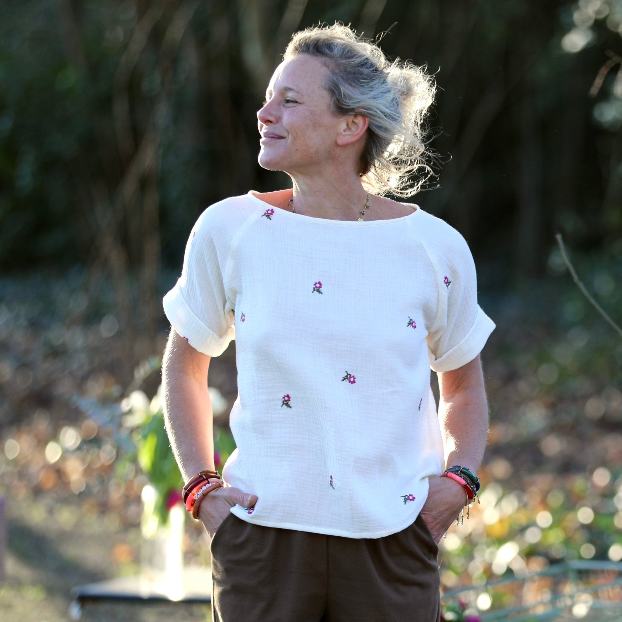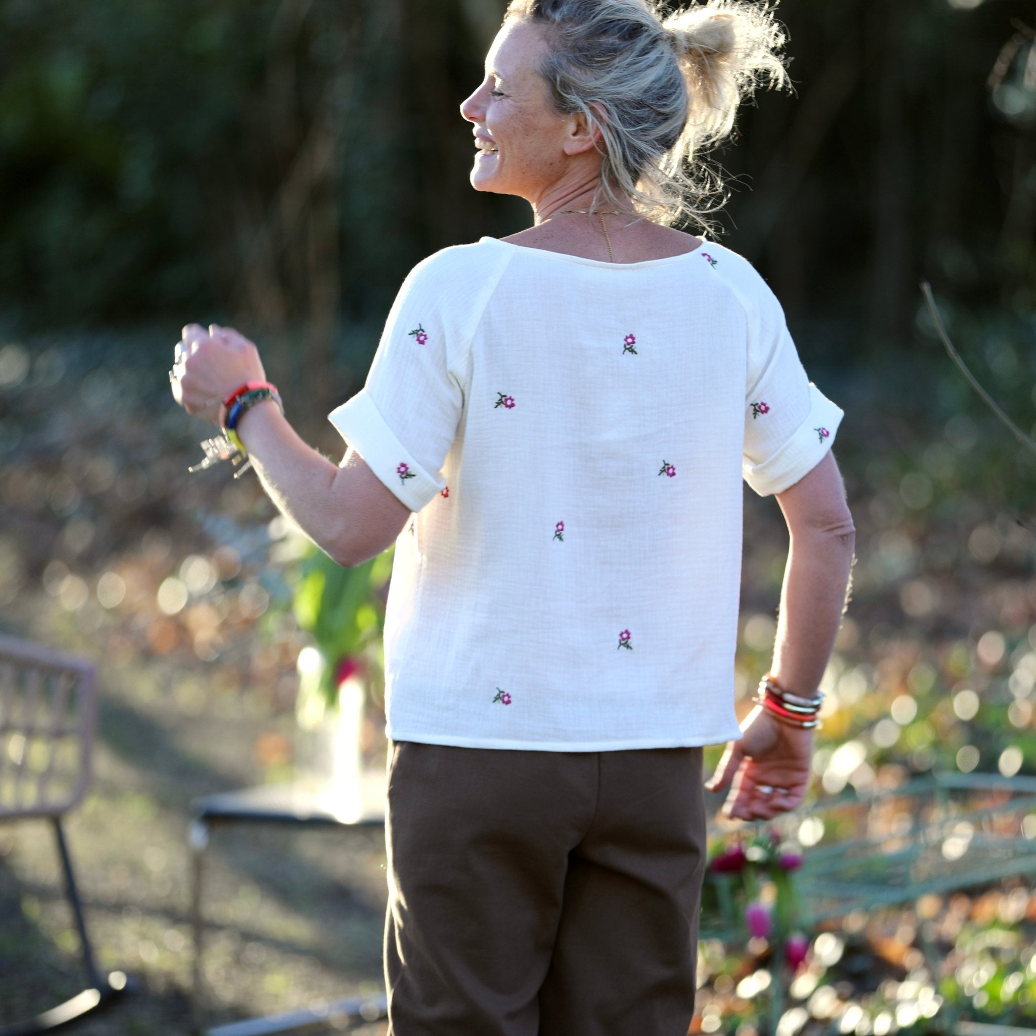 Blouse Romy – Double gaze de coton blanc cassé églantine