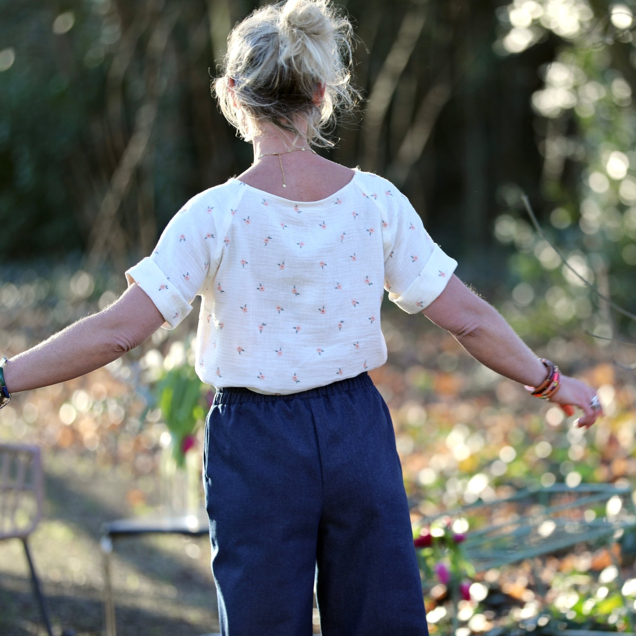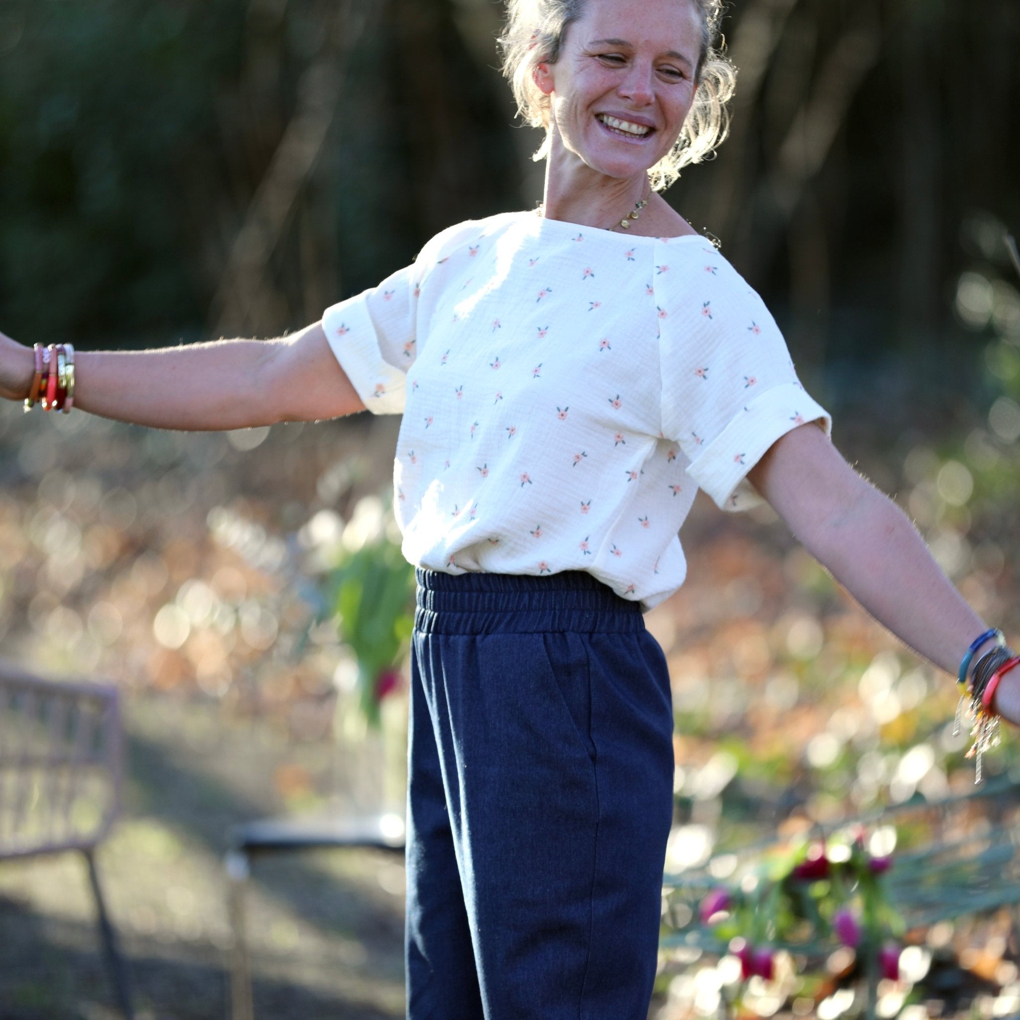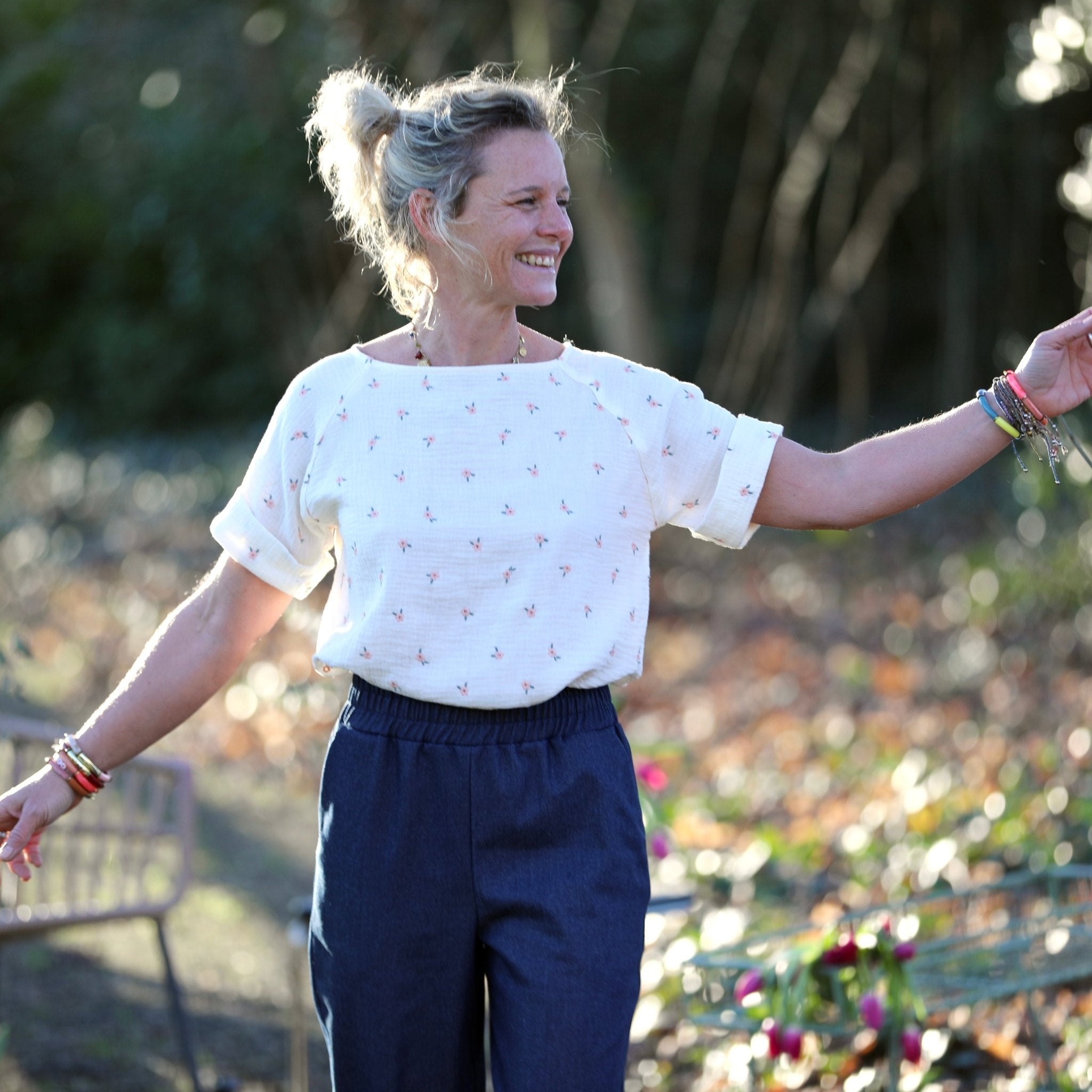 La Blouse Romy se porte aussi bien avec un jean, un pantalon fluide ou une jupe midi. Portée lâche pour un esprit naturel et romantique, ou rentrée partiellement pour structurer la silhouette, elle s’adapte à toutes les envies du quotidien.