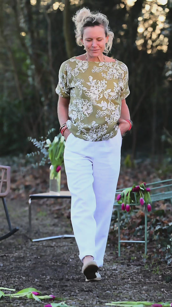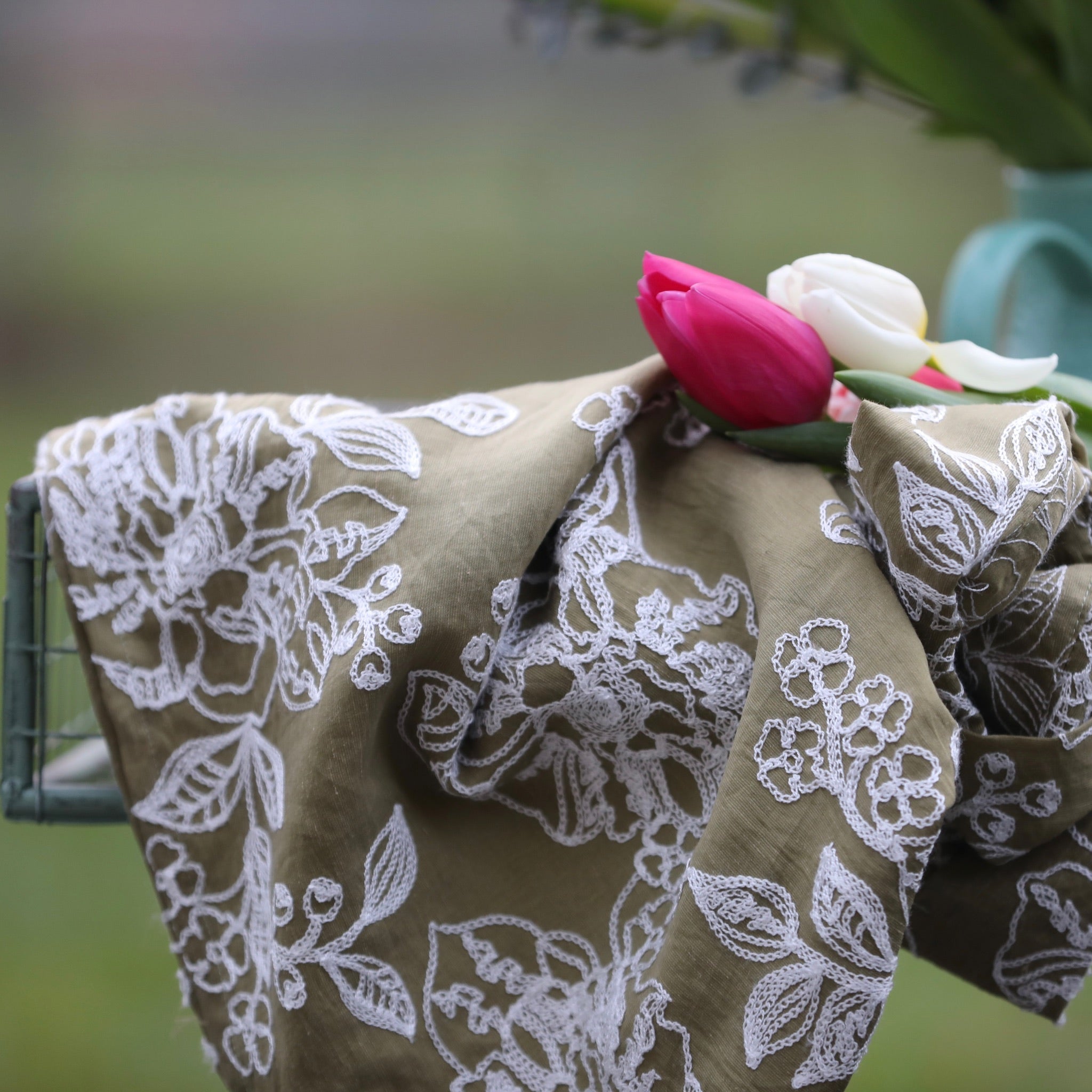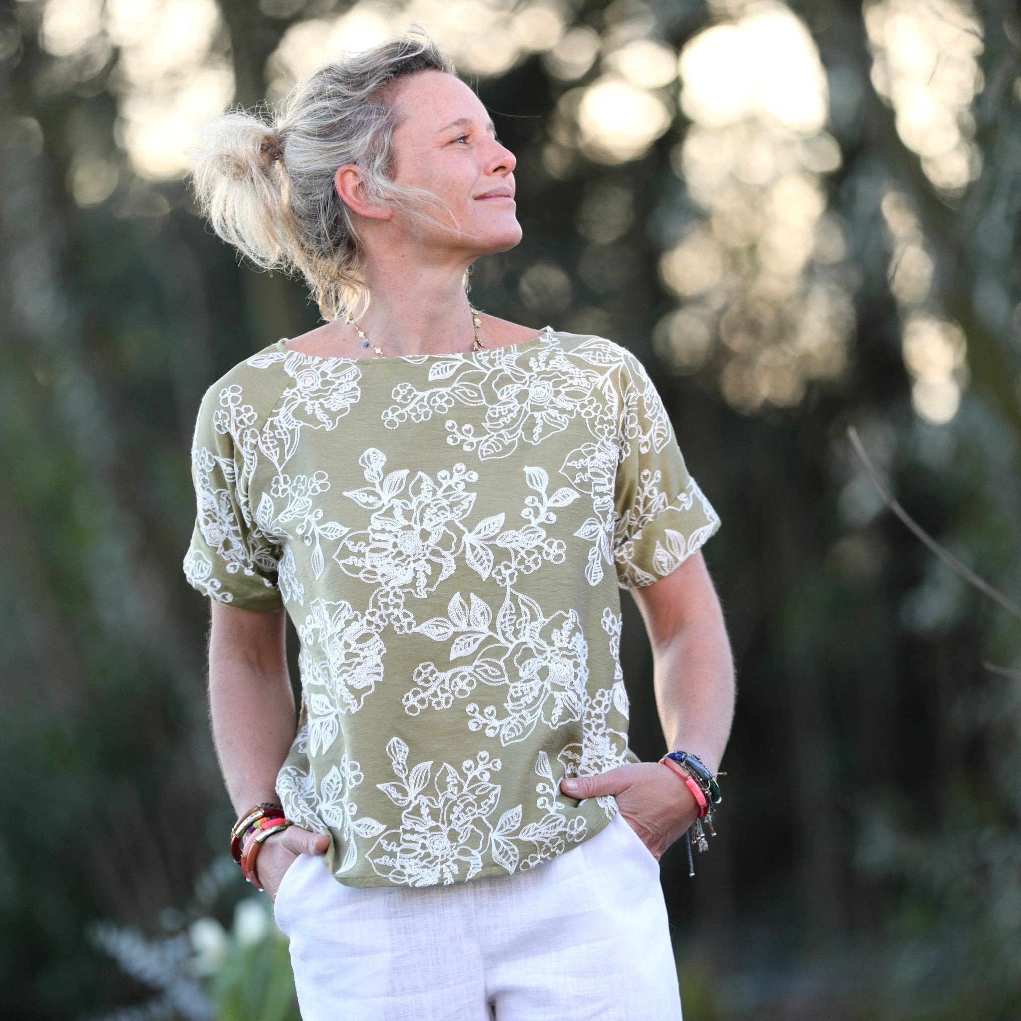Confectionnée dans un lyocell brodé doux, souple et respirant, cette matière offre un tombé fluide et un confort immédiat. Le coloris Olivier est relevé par une broderie discrète qui apporte du relief et une élégance naturelle, facile à porter au quotidien.