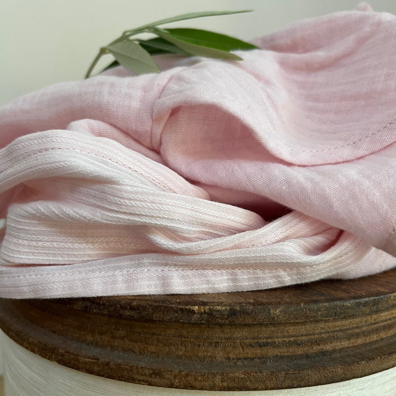 La gaze de coton : lavage à basse température (30°) et un séchage à l’air libre. Elle ne nécessite pas de repassage.