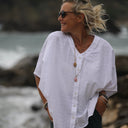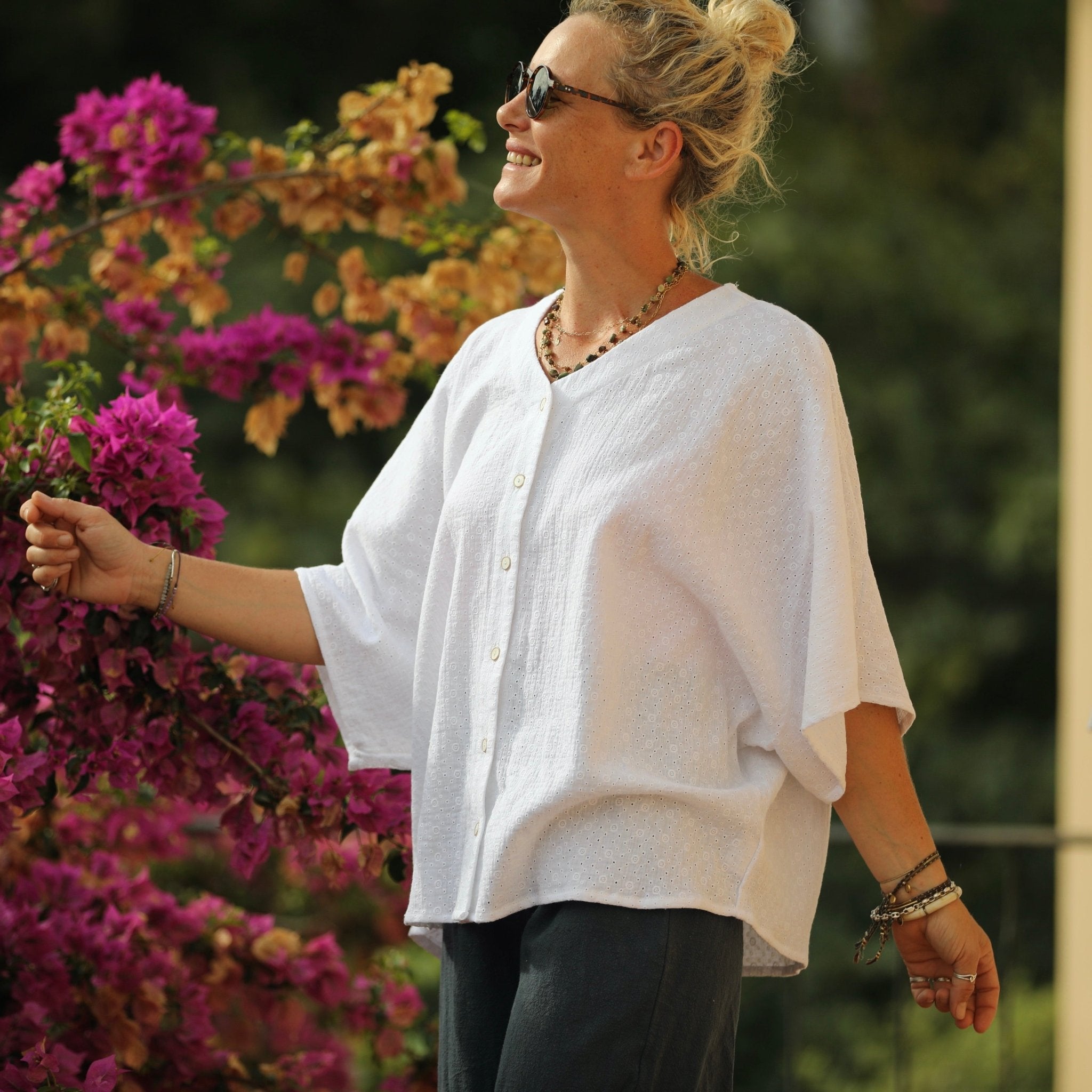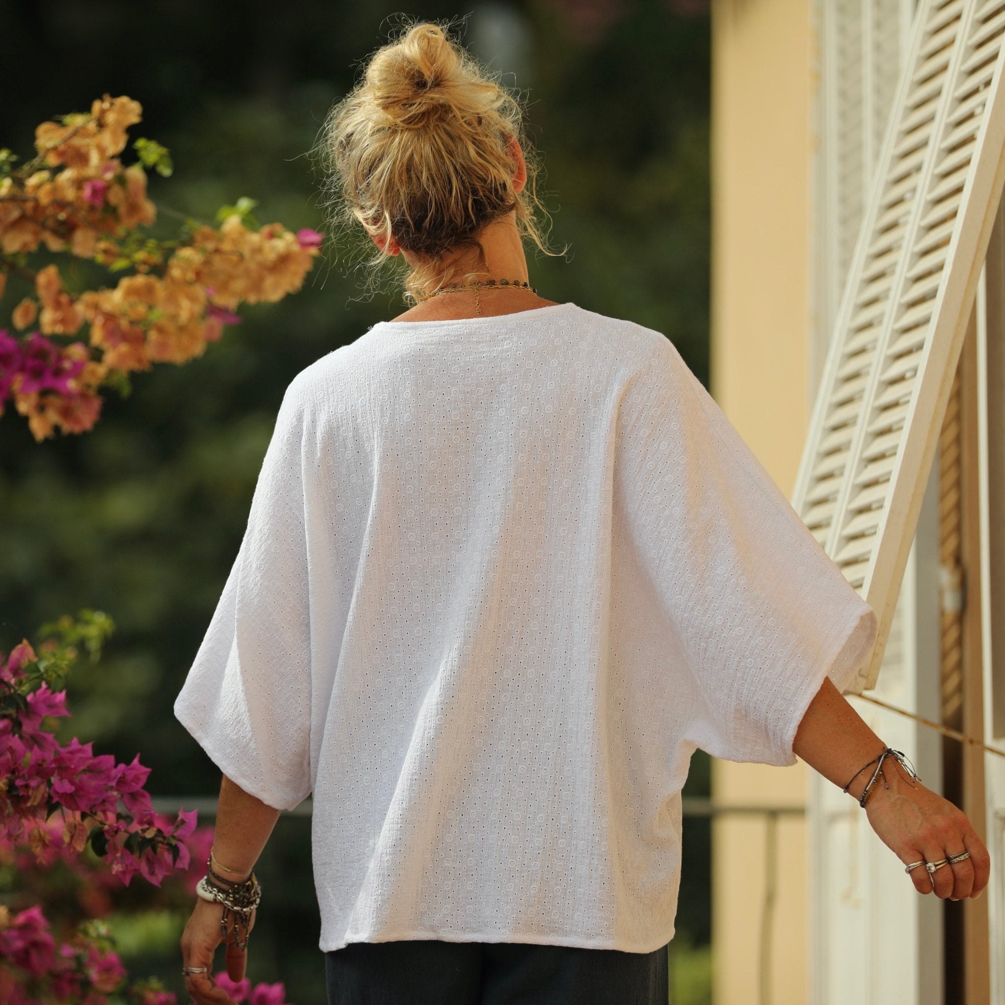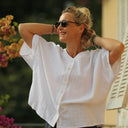 Blouse Yoko - double gaze de coton fleurie blanche