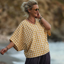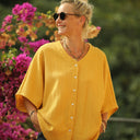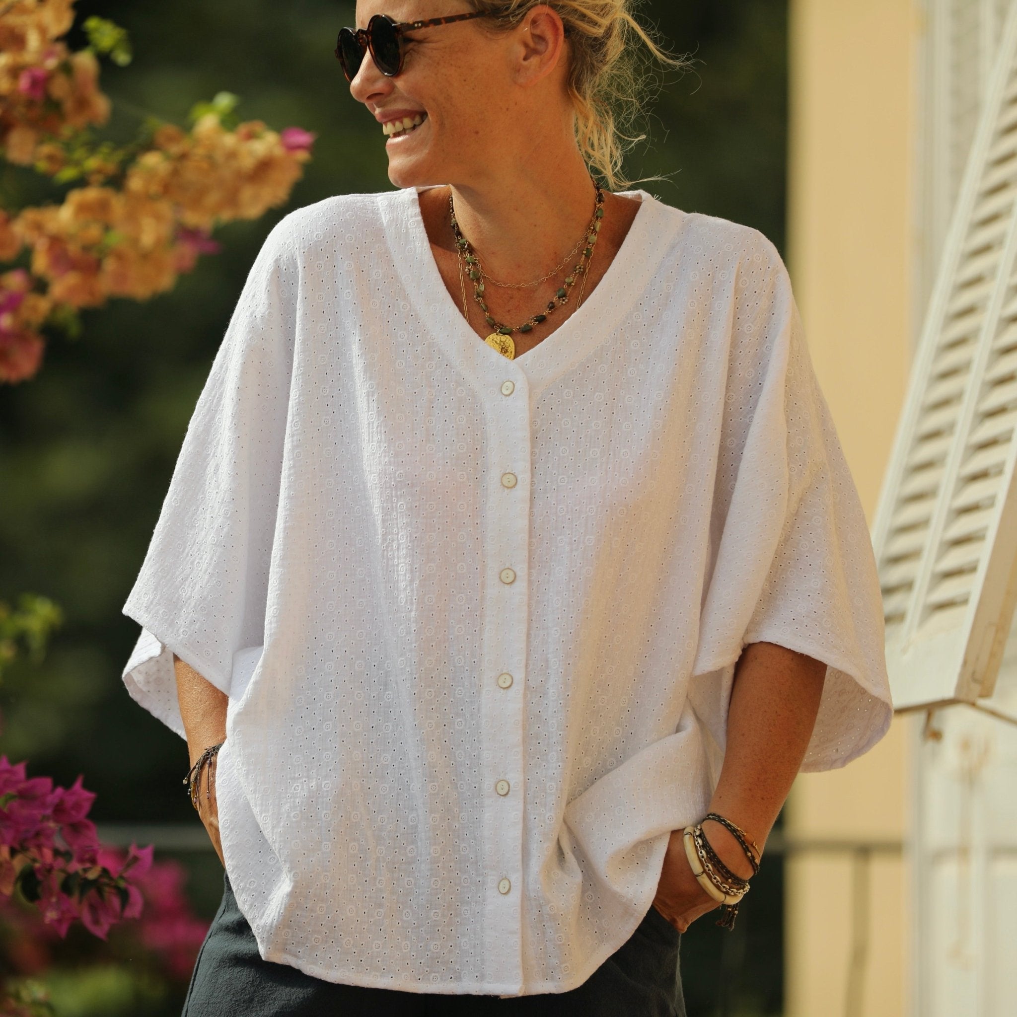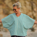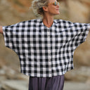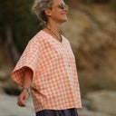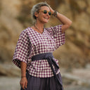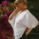 Yoko est une élégante blouse au style japonisant, inspirée de la coupe kimono.