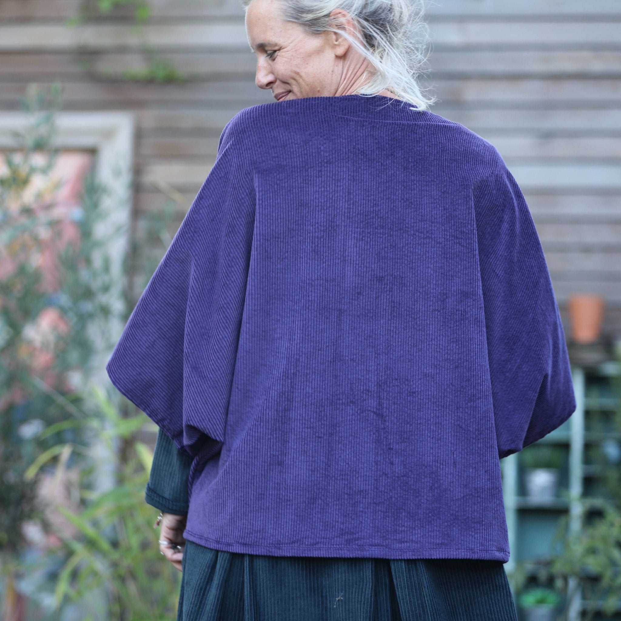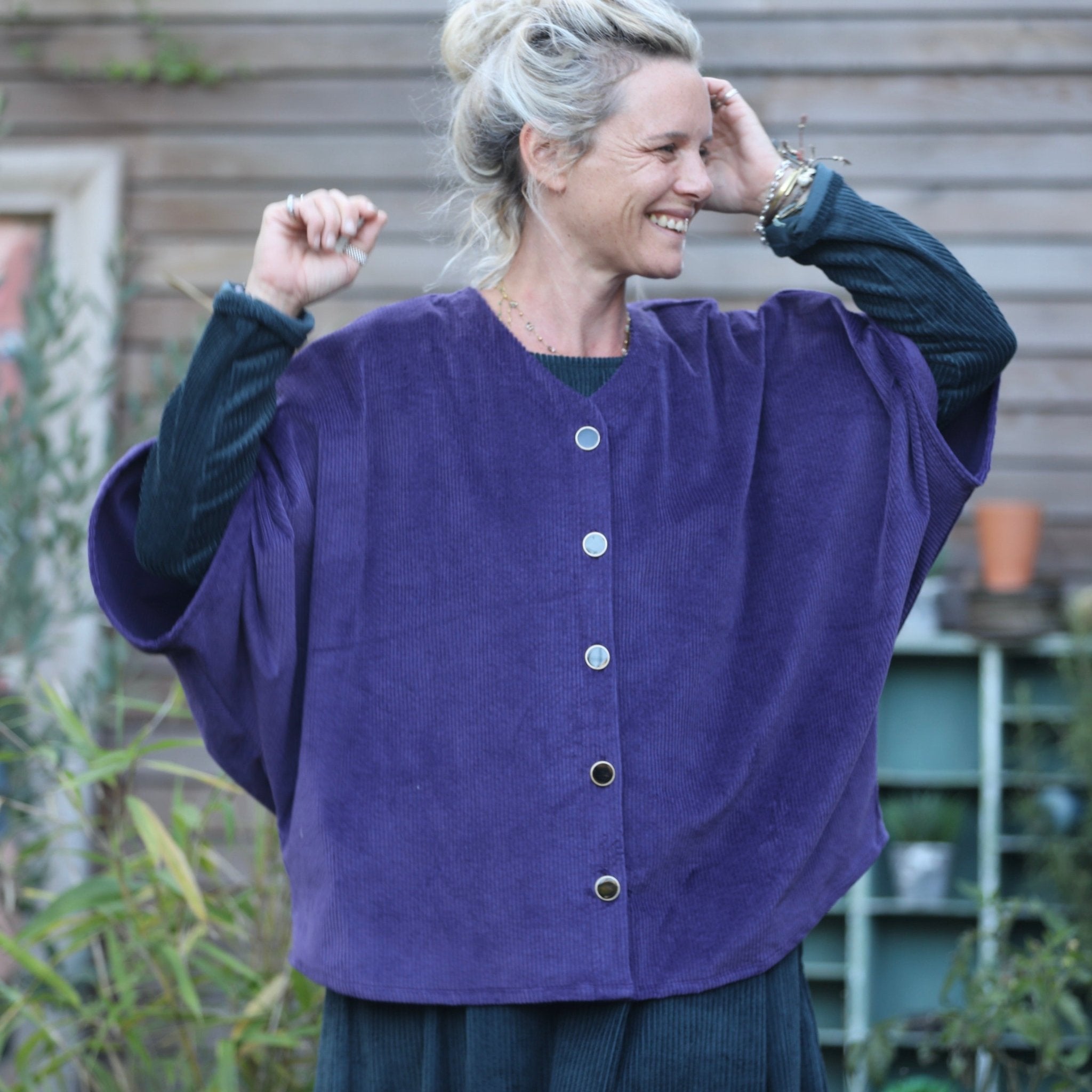 Veste kimono Yoko - velours côtelé prune - boutons émaillés noirs