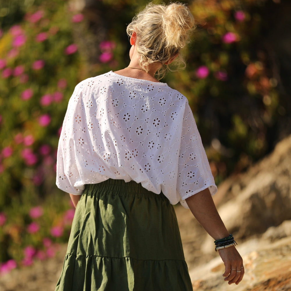 Blouse Yoko - voile de coton brodé blanc cassé pâquerettes