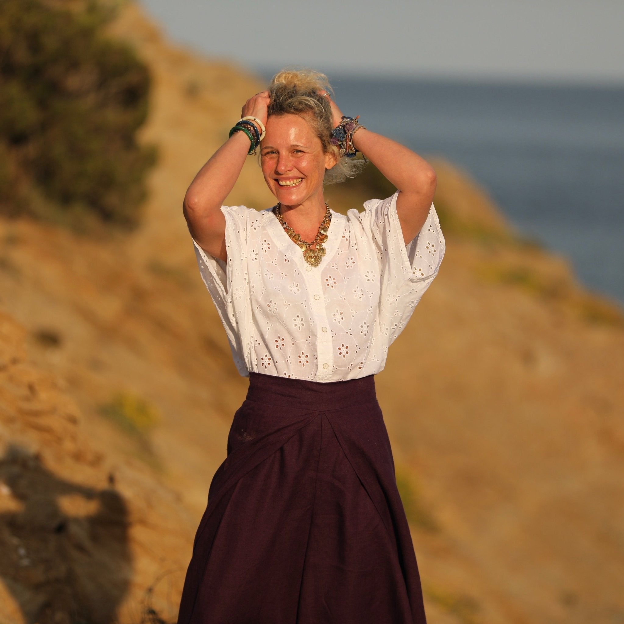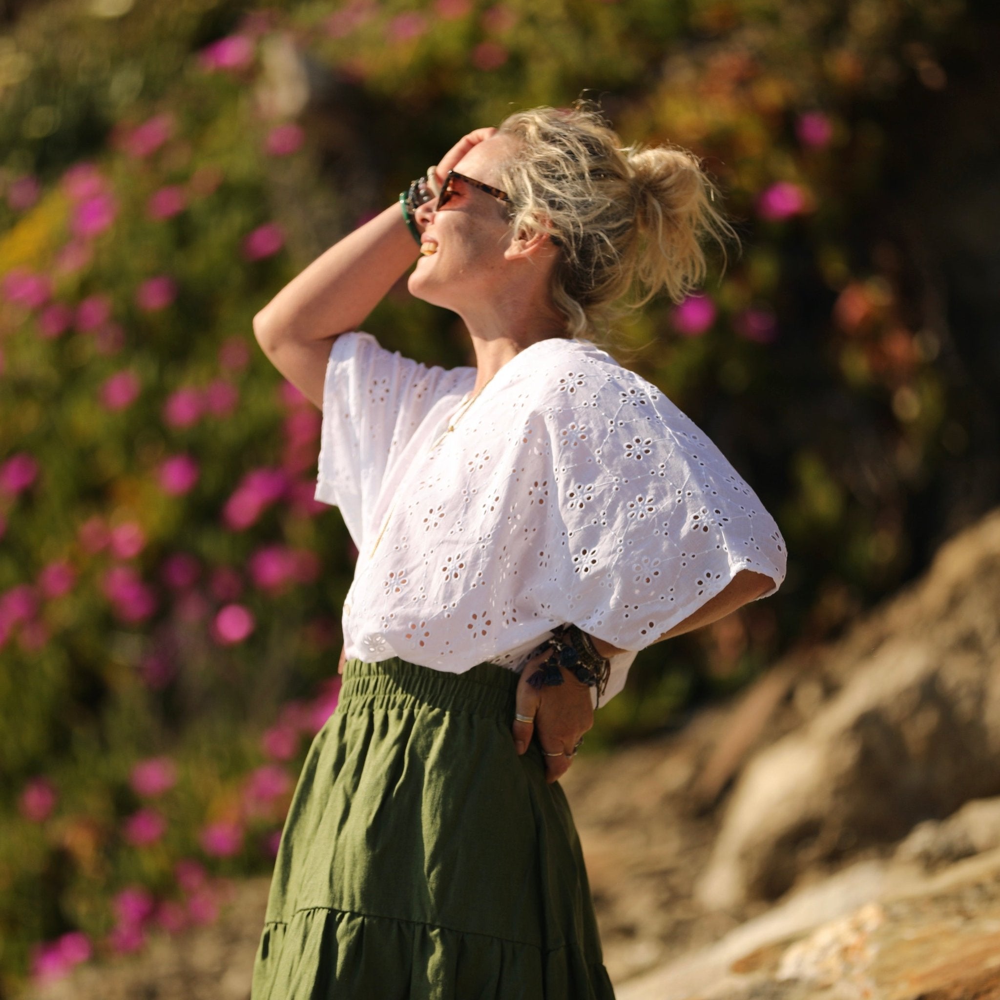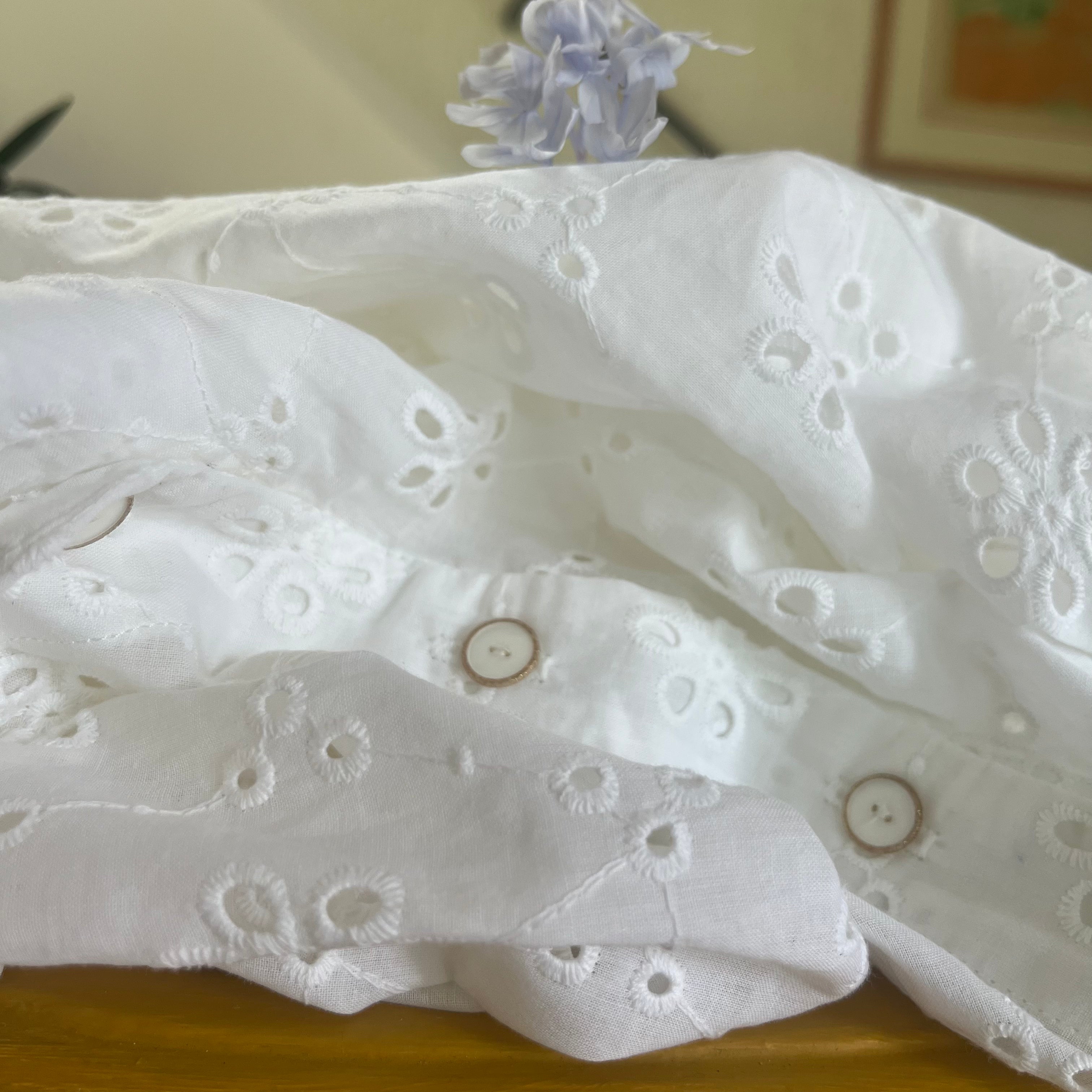 Blouse Yoko - voile de coton brodé blanc cassé pâquerettes