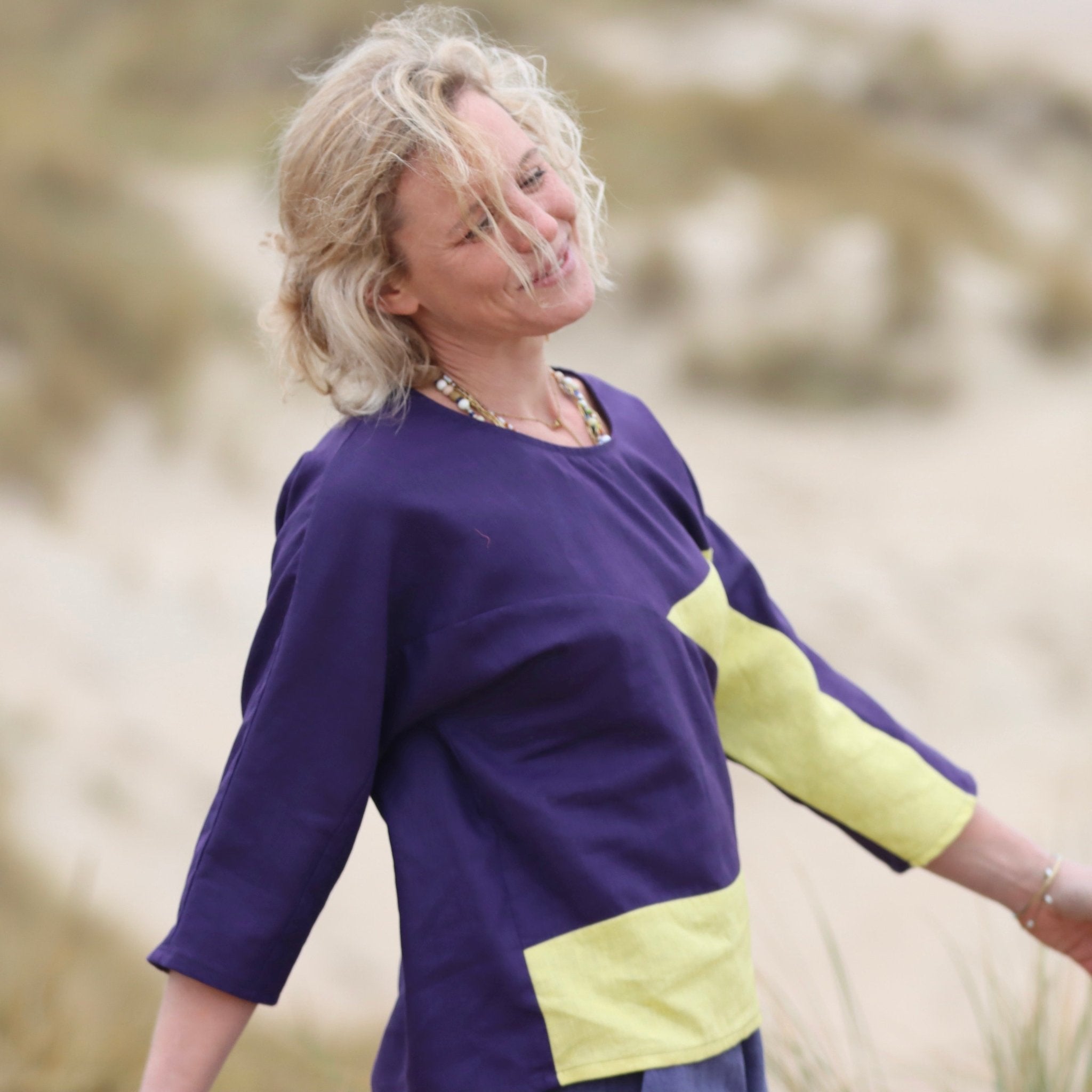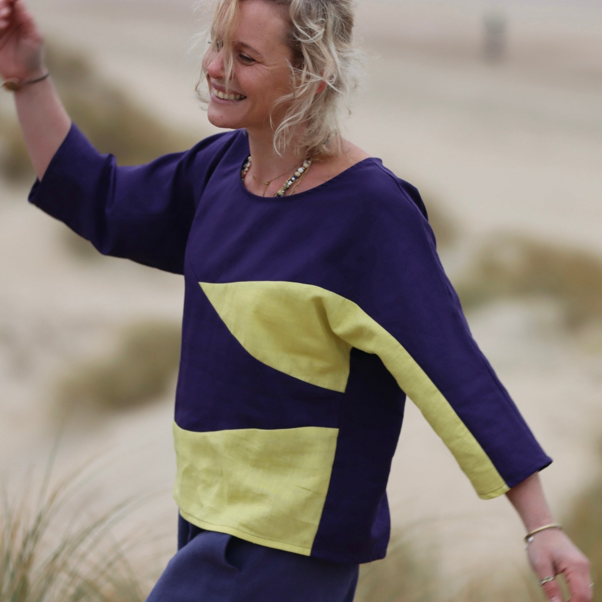 Blouse Yumi patchwork "Cabourg" en lin - Quintessence