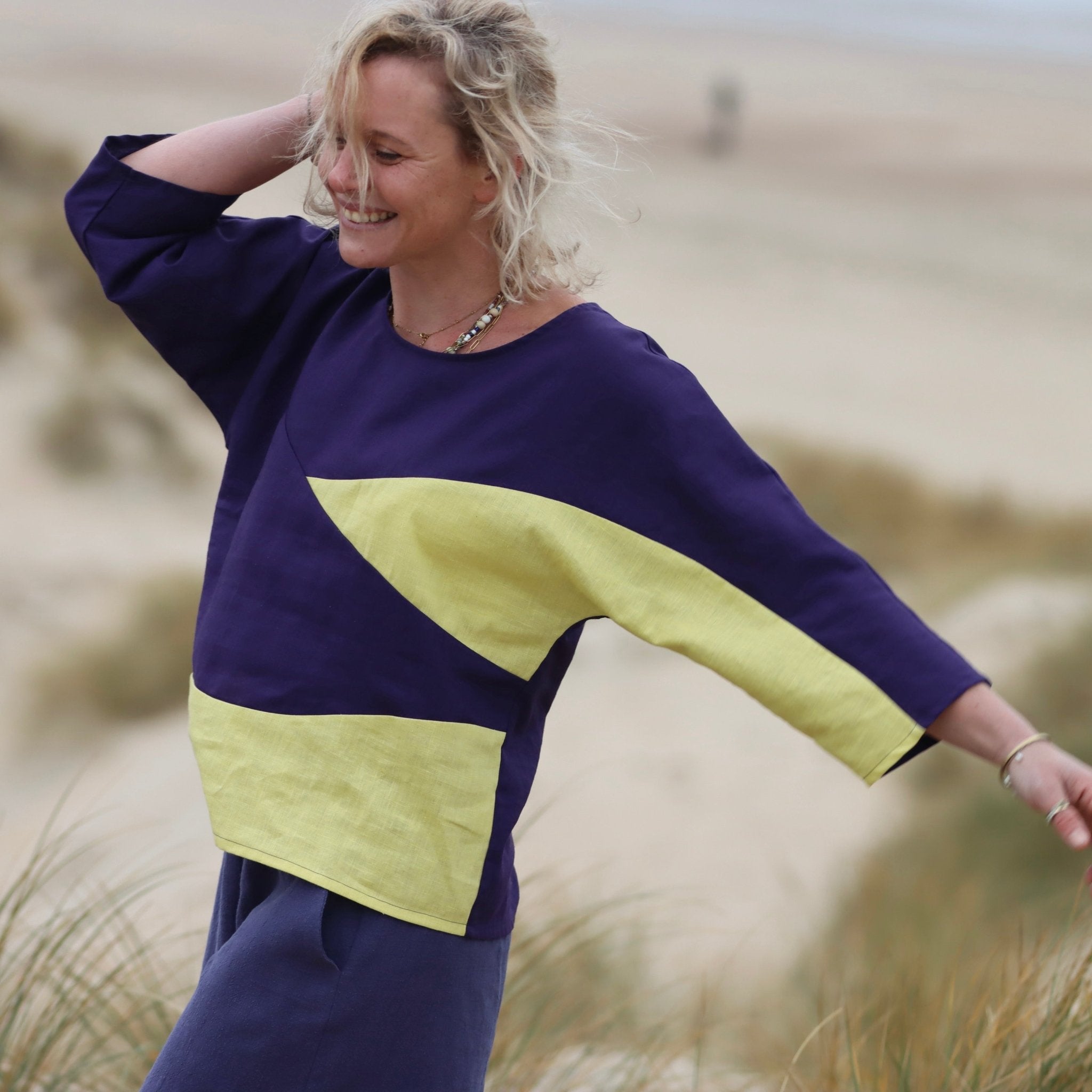 Yumi est une blouse simple, originale avec son patckwork; elle est intemporelle, casual et élégante, aux épaules amples sans découpe pour un look décontracté.
