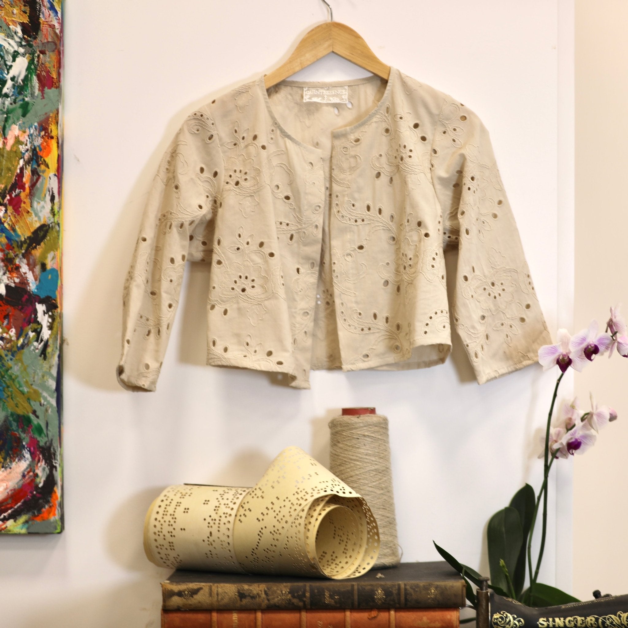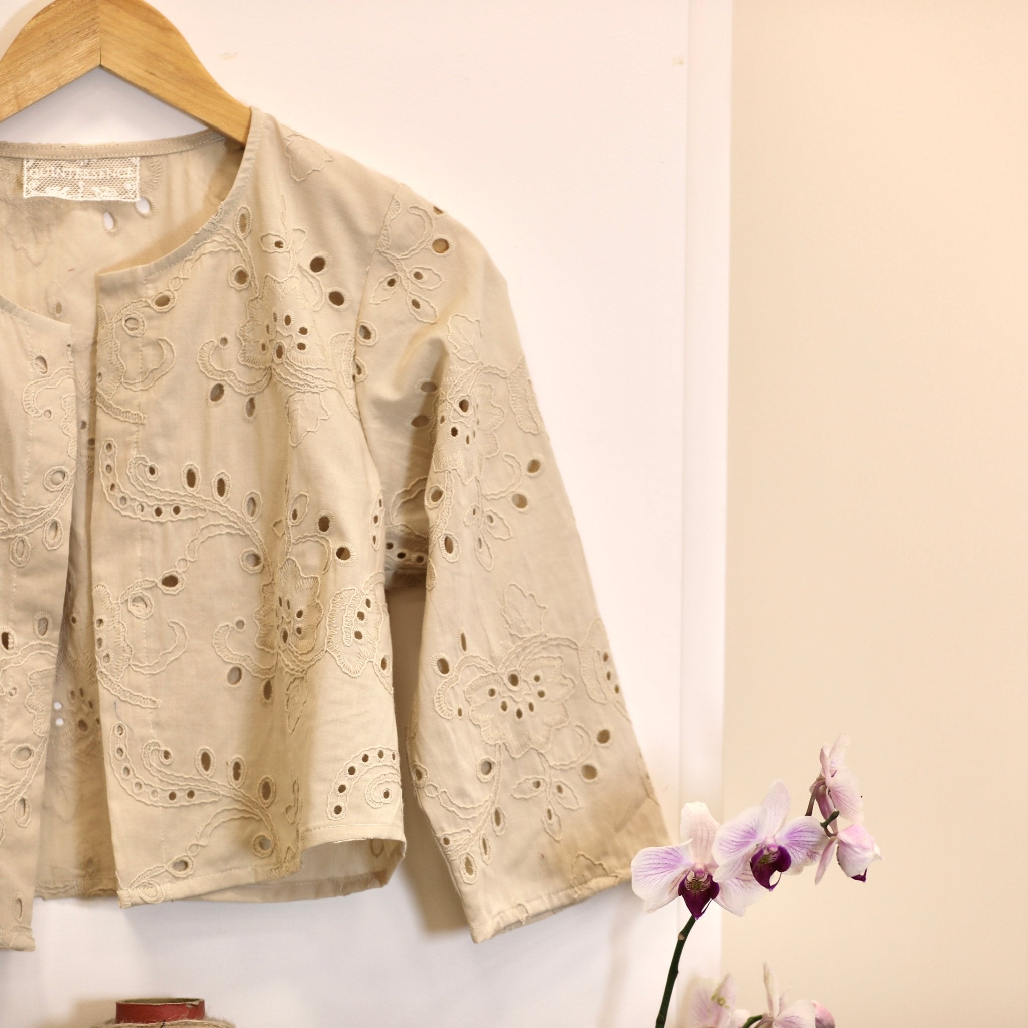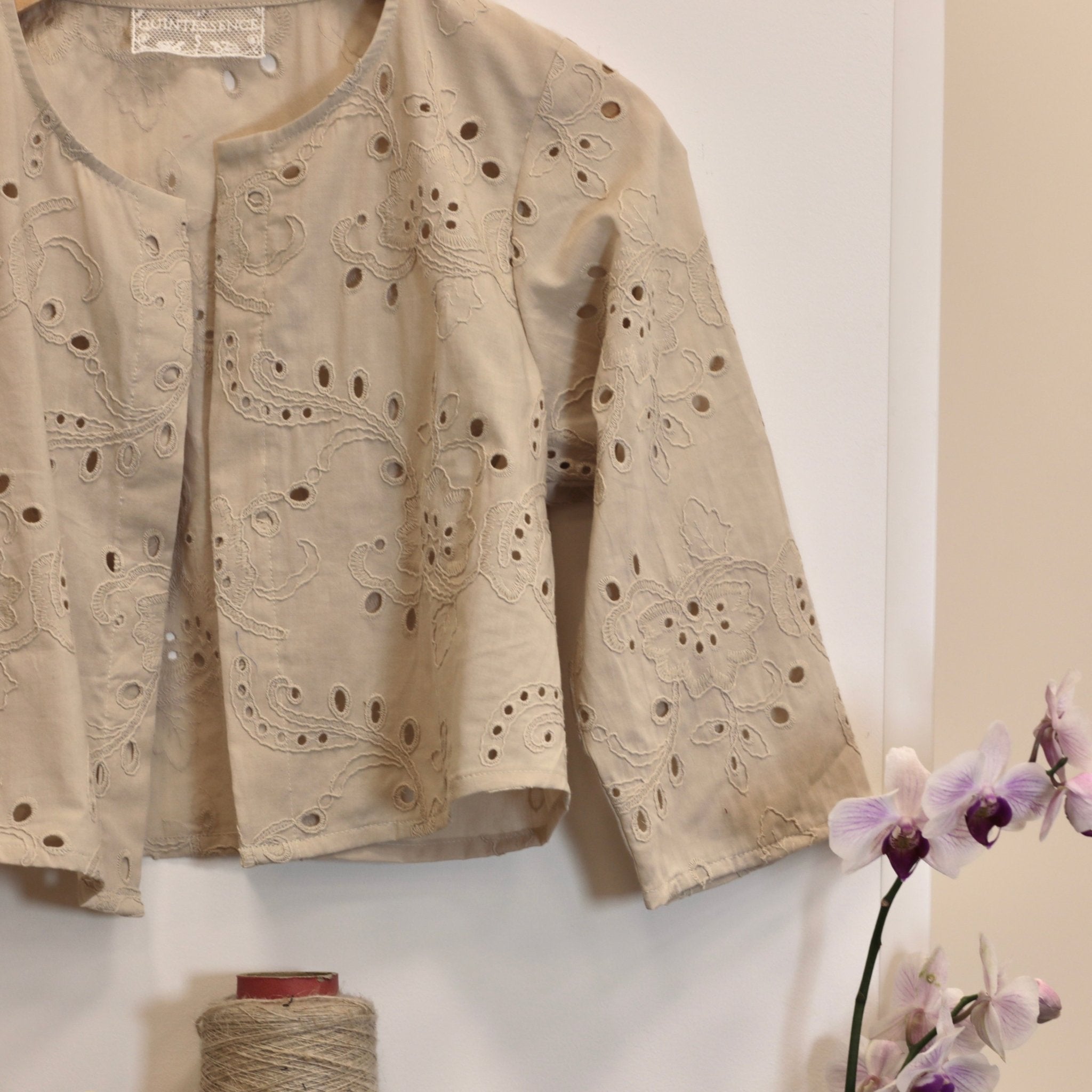 Boléro Ange - coton brodé ajouré ficelle - Quintessence