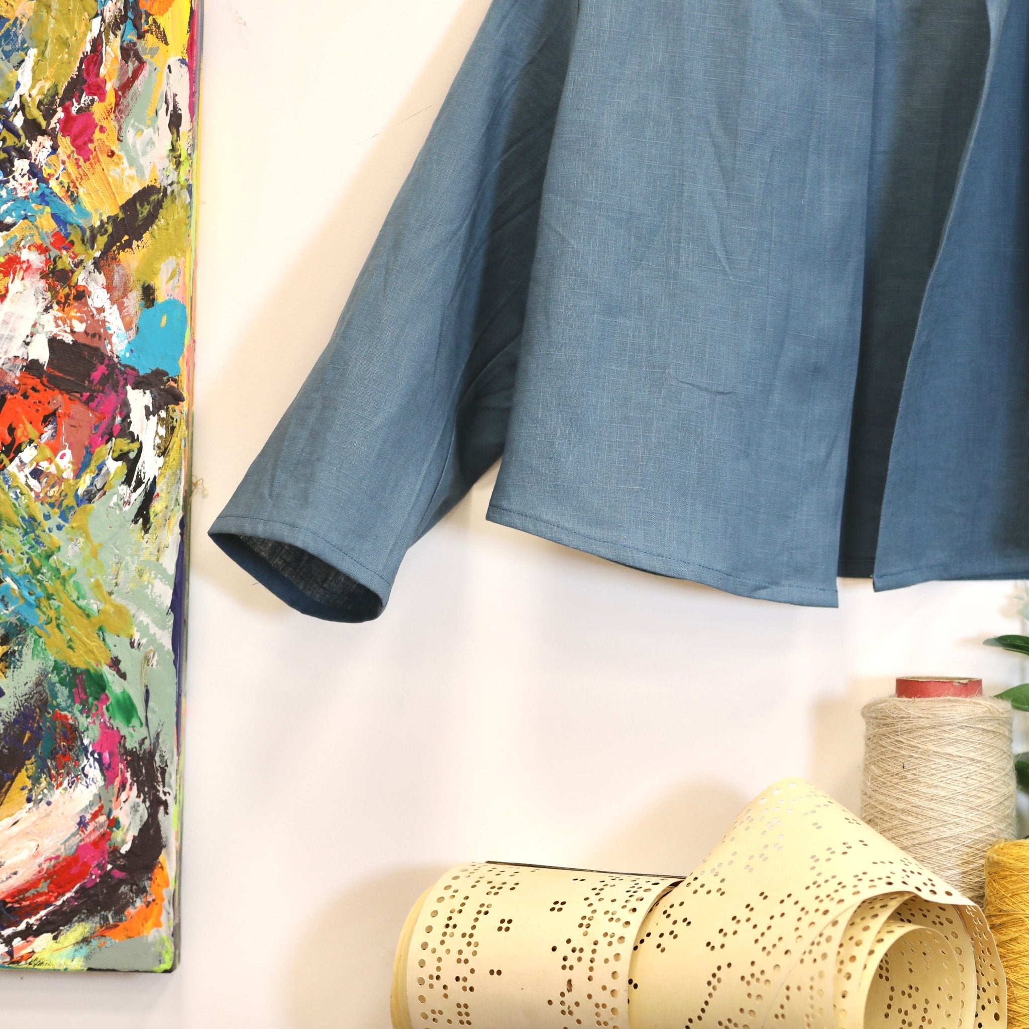 Confectionné dans un lin bleu navy 100 % lin, léger et fluide, ce boléro offre un tombé naturel et agréable à porter. Le lin apporte fraîcheur et authenticité, tandis que le bleu navy, profond et intemporel, confère une élégance sobre et facile à associer.
