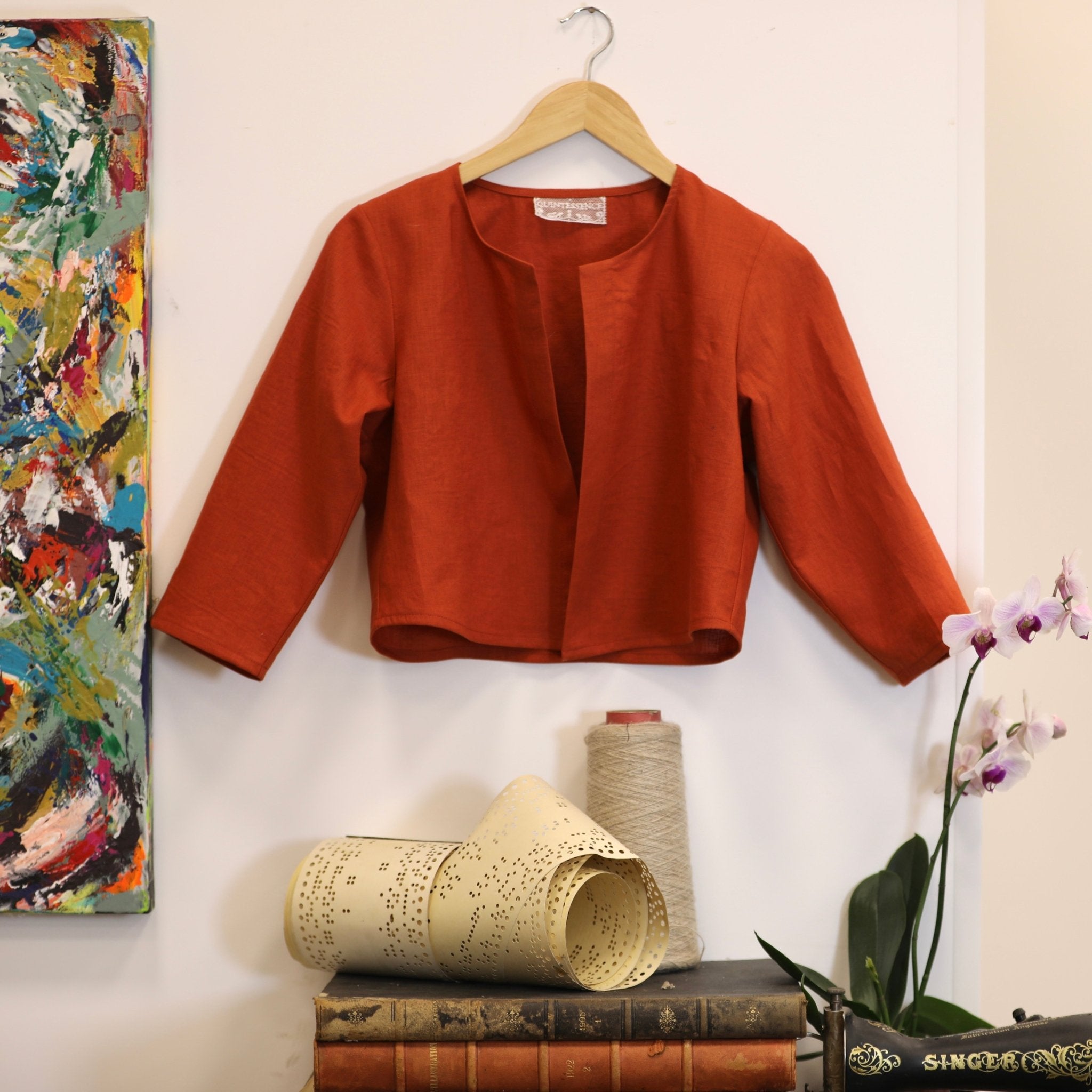 Fabriqué avec soin dans notre atelier Quintessence à Roubaix, ce boléro incarne le savoir-faire local, la qualité artisanale et l’authenticité de notre maison française.